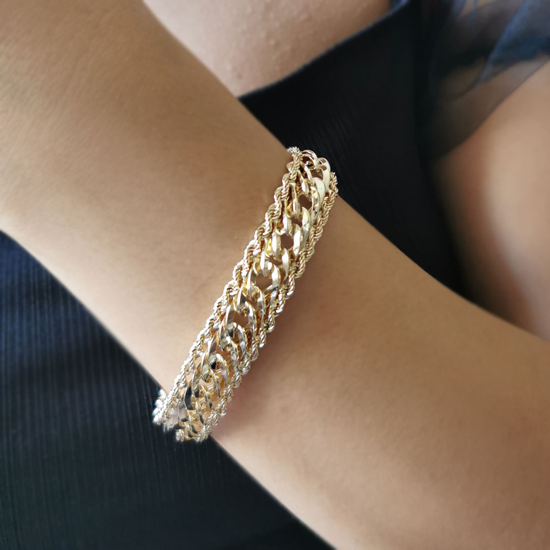 21 Cm boyunda taşsız tasarımı ile günlük olarak da kullanabileceğiniz, özel günlerinde sevdiklerinize şık bir hediye seçeneği olacak 11.65 gr ağırlığında 14 ayar altın yeni sezon halat zincirli halow bileklik.
