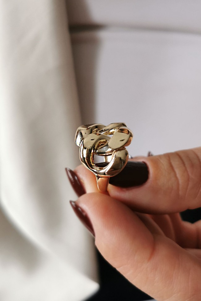 14 Ayar fantazi ve spor tasarımı bir arada barındıran günlük kullanıma uygun taşsız model 6.80 gram ağırlığında altın gurmet kadın yüzük.