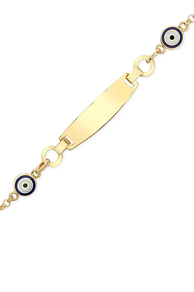 15 Cm boyunda günlük olarak da kullanıma uygun halka zincirli 14 ayar 3.20 gr ağırlığında altın nazar boncuğu detaylı çocuk künyesi.
