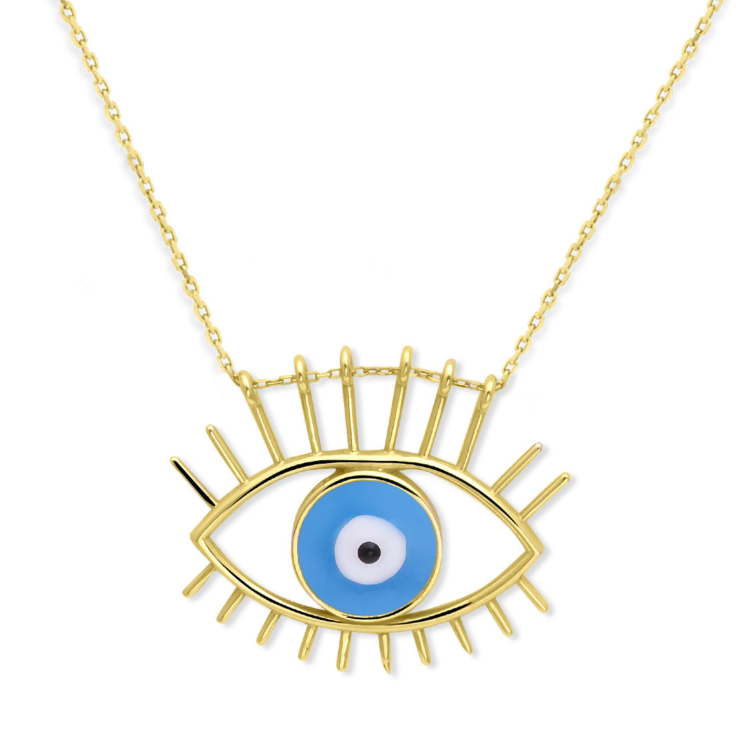 45 Cm zincirli 3.25 gr. 2.5 cm boyutunda zirkon taşlı model 14 ayar altın mineli nazar göz kolye. Farklı zincirlerinizle bir arada kombine olarak kullanabileceğiniz harika bir model. *Ürünlerimiz faturalıdır güvenle satın alabilirsiniz, özel hediye kutusunda ücretsiz kargo ile gönderilecektir.
