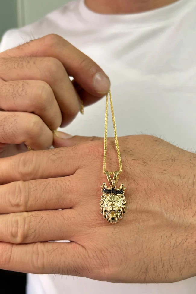 Modern Şehirli Tarz 60 Cm Boyunda Spiga Zinciri İle Oldukça Şık Bir Modele Sahip 7.00 Gr. Ağırlığında 14 Ayar Altın Aslan Erkek Kolye.