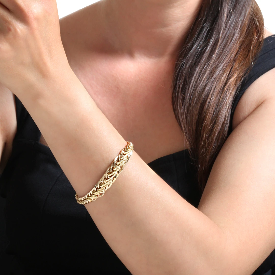 14 Ayar altın 8.60 gram ağırlığında 19,5 cm boyunda tasarımıyla severek kullanacağınız, modern ve her sezon moda olmayı başarmış ortası geniş tarzınıza muhteşem uyum sağlayacak taşsız altın kadın bileklik.