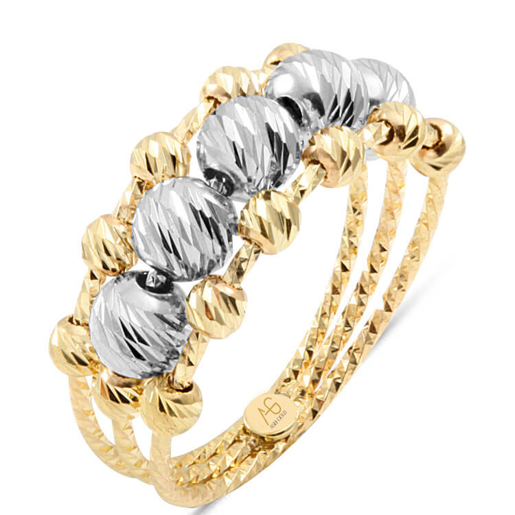 Ortası iri beyaz altın toplardan tasarlanmış ve şık kombinasyonuyla ışıl ışıl modern ve spor tasarıma sahip 3.50 gram ağırlığında dorika 14 ayar yüzük. İsterseniz orta parmak isterseniz yüzük parmağınızda kullananın, günlük şıklığınıza hava katın!