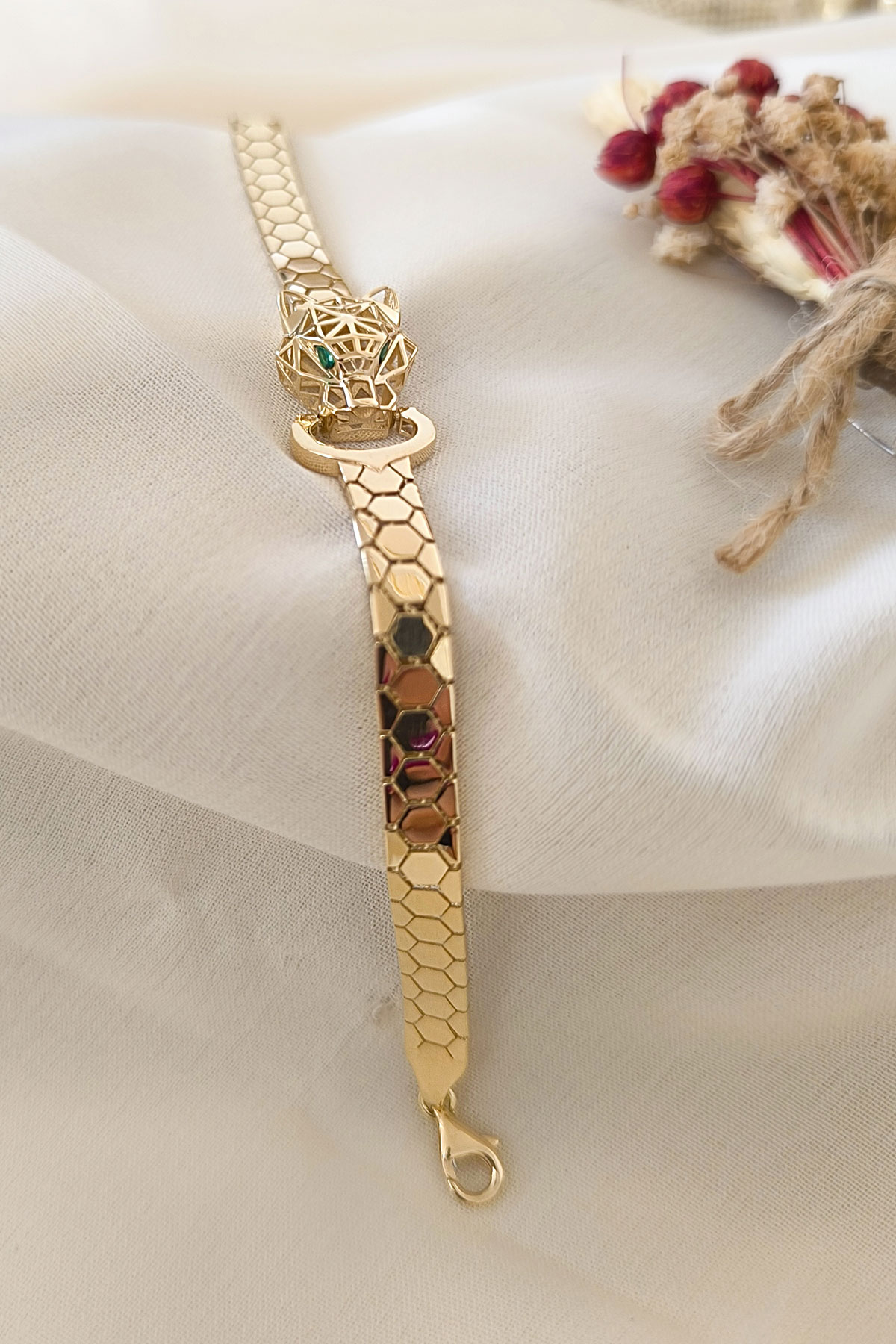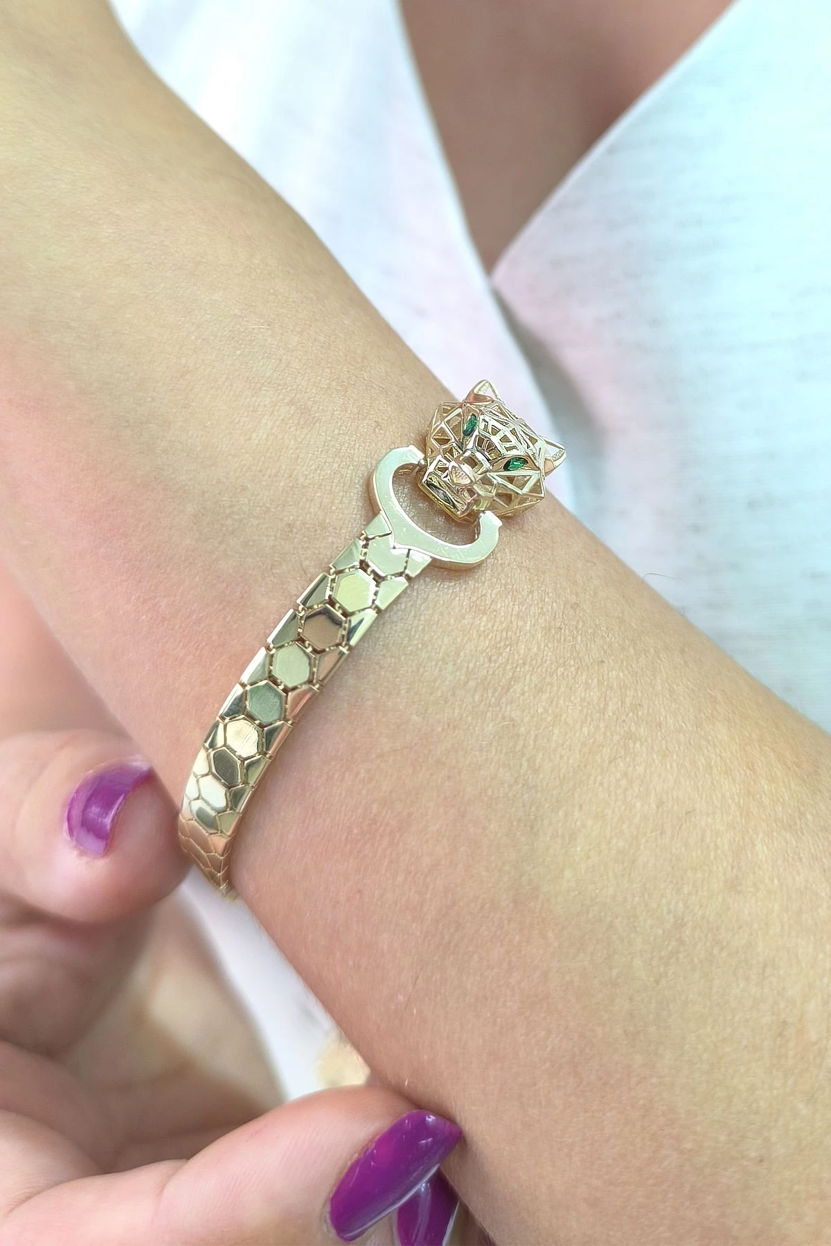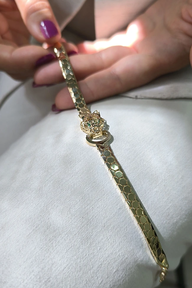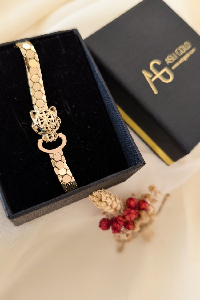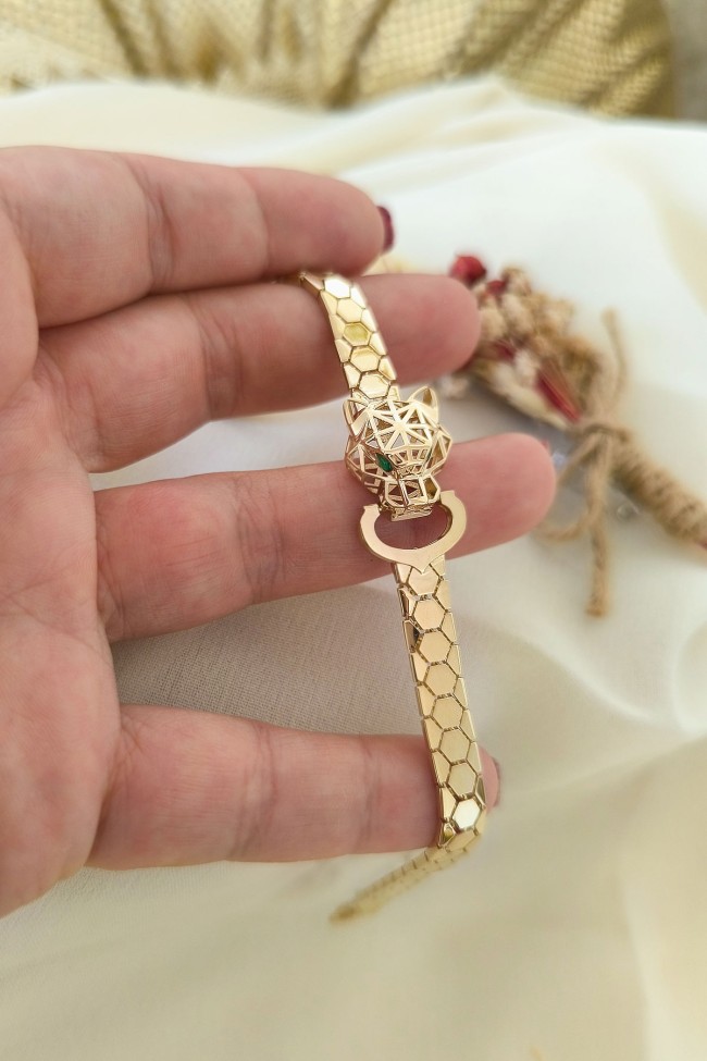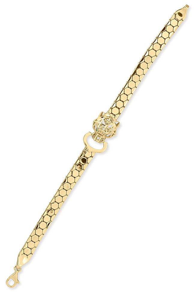 14 Ayar şık ve gösterişli petek tasarım ışıl ışıl 6 mm genişliğinde, 9.50 gram ağırlığında altın füzyon panter bileklik.