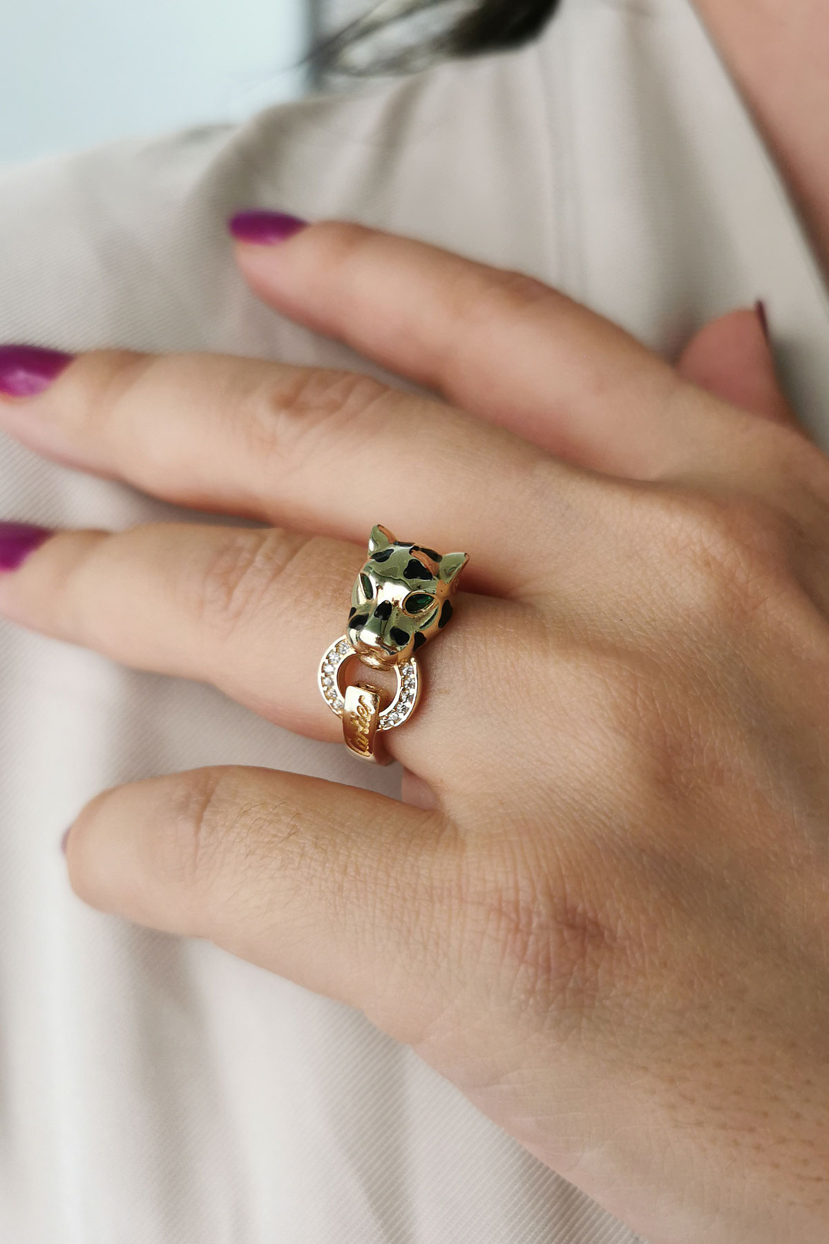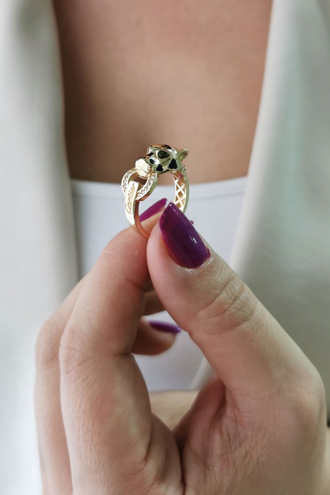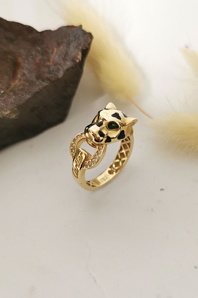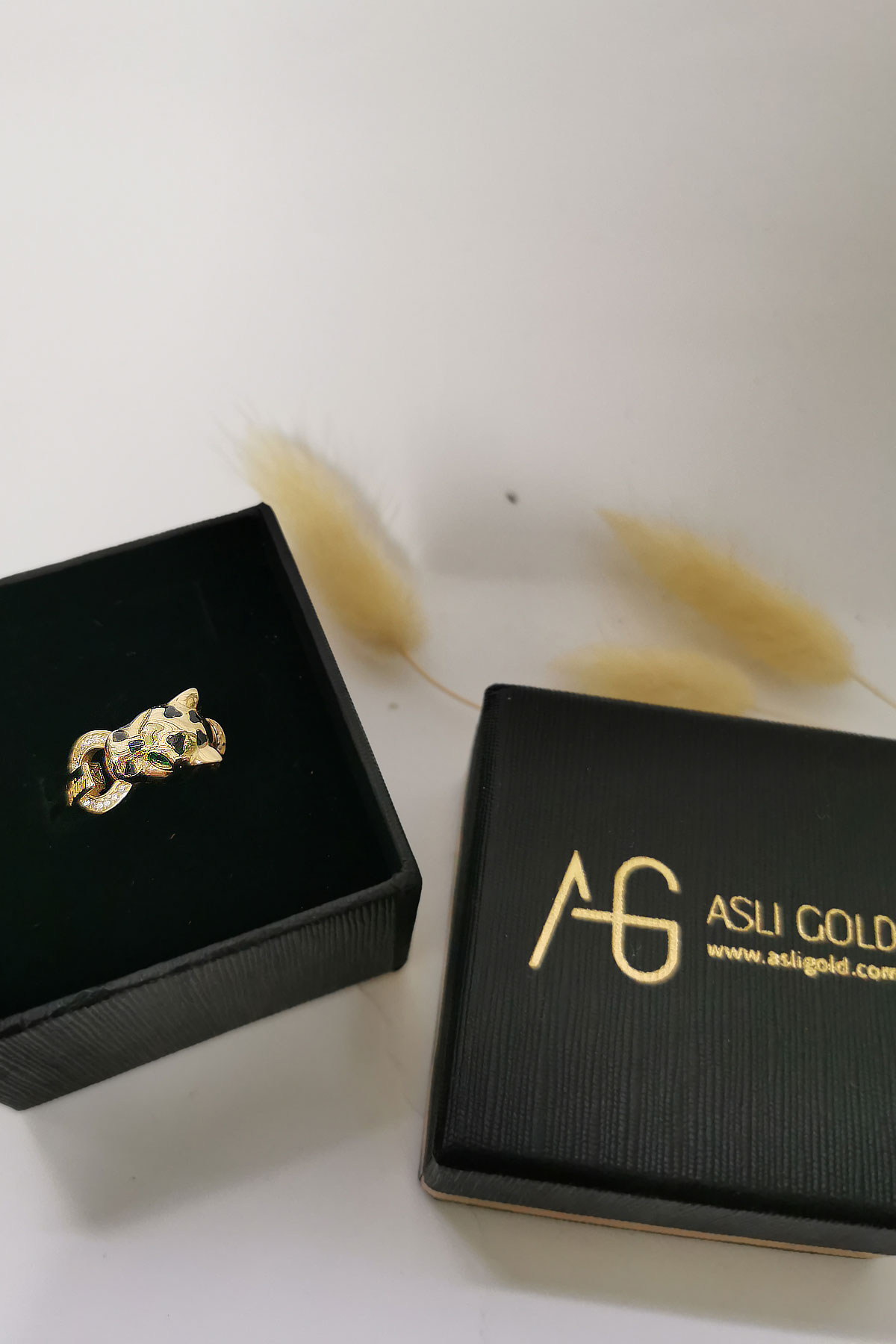 4.30 gram 14 ayar panter model siyah mine detaylarıyla oldukça farklı ve şık tasarım altın yüzük.