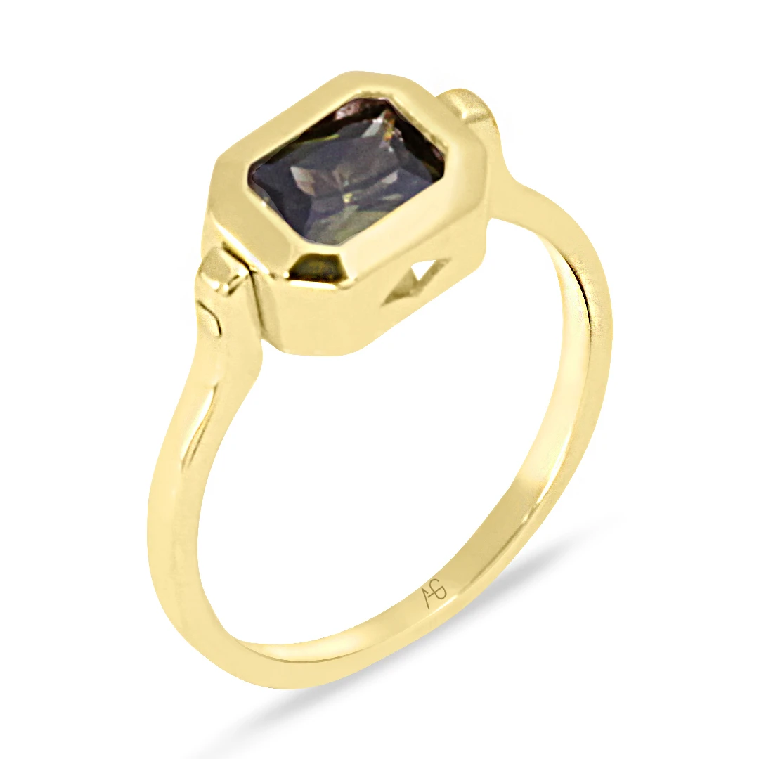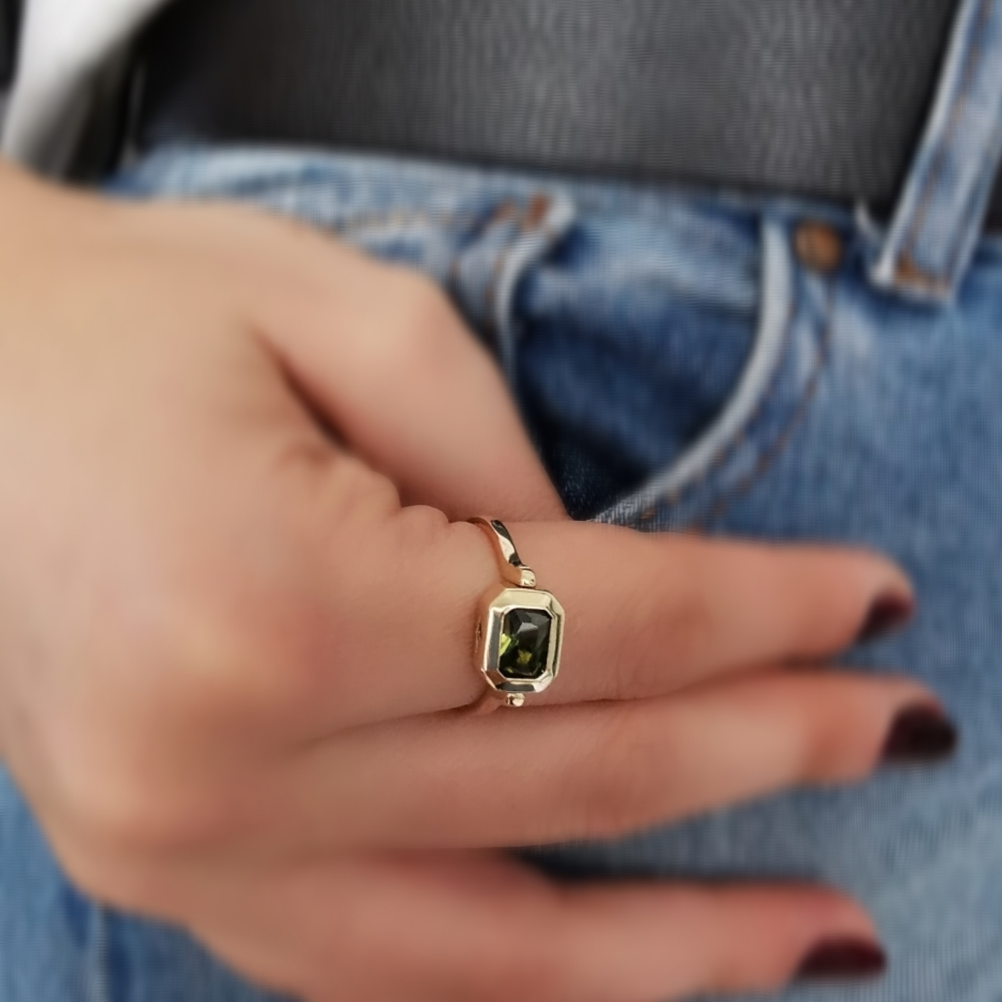 Taş Yuvası Döner 14 Ayar Sarı Altın Peridot Baget Taşlı Spor Yüzük.