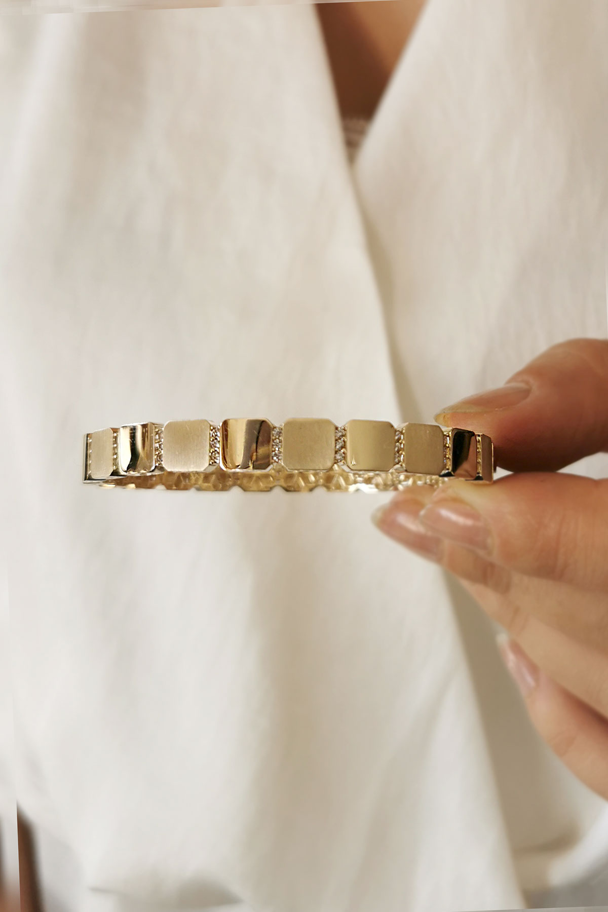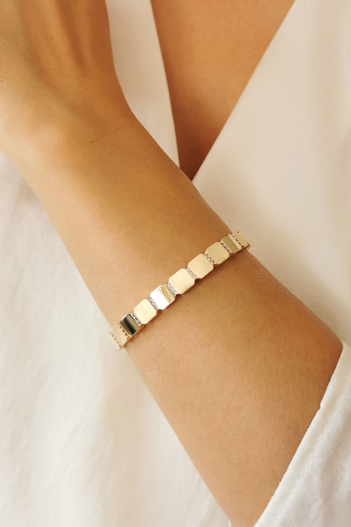 12.30 Gram Ağırlığında Modern Spor Bir Tarzı Olan Günlük Kullanıma Uygun 14 Ayar Altın 6.8 Mm Genişliğinde Altın Füzyon Petek Bilezik.