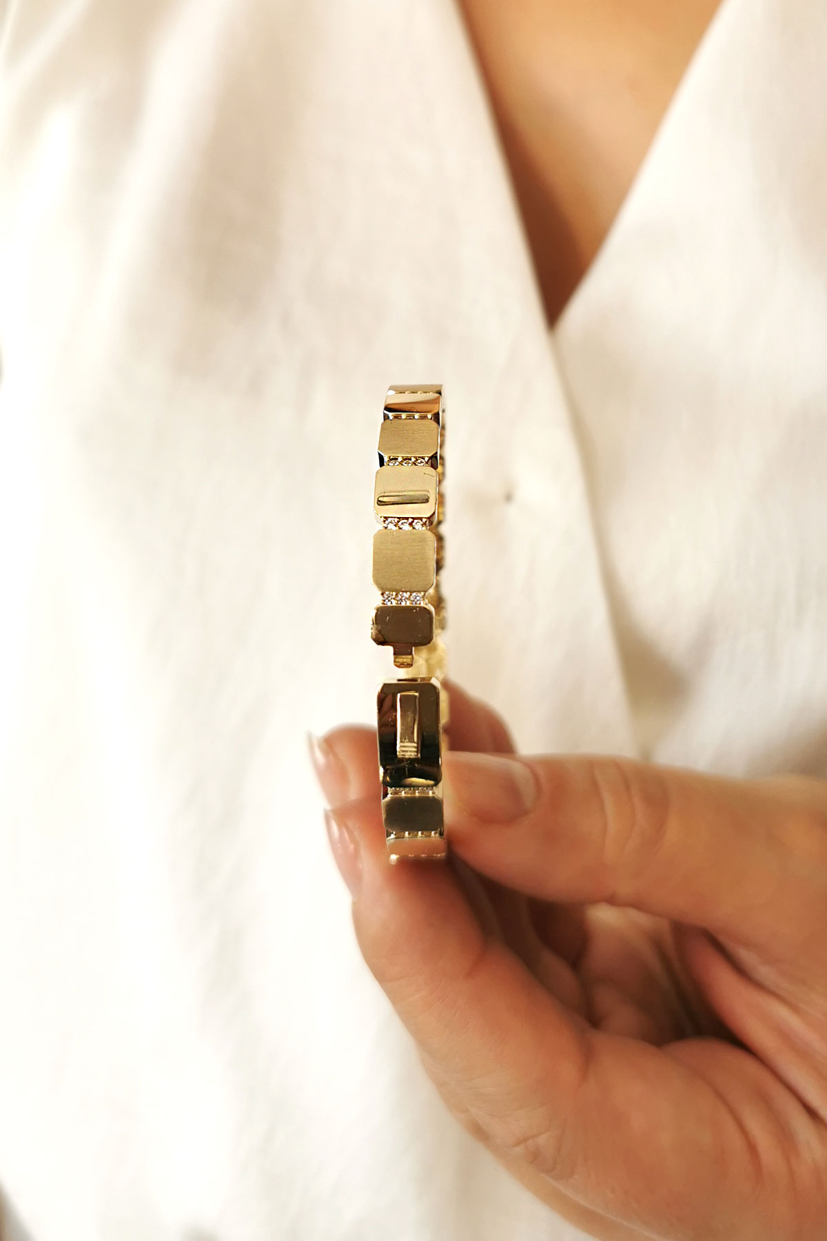 Dilediğiniz farklı bilezik yada bilekliklerinizle bir arada kullanabileceğiniz tüm gün gözleri kaliteli duruşu ile üzerine toplayacak modern ve kullanışlı bir model.