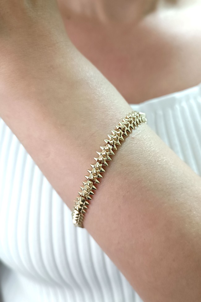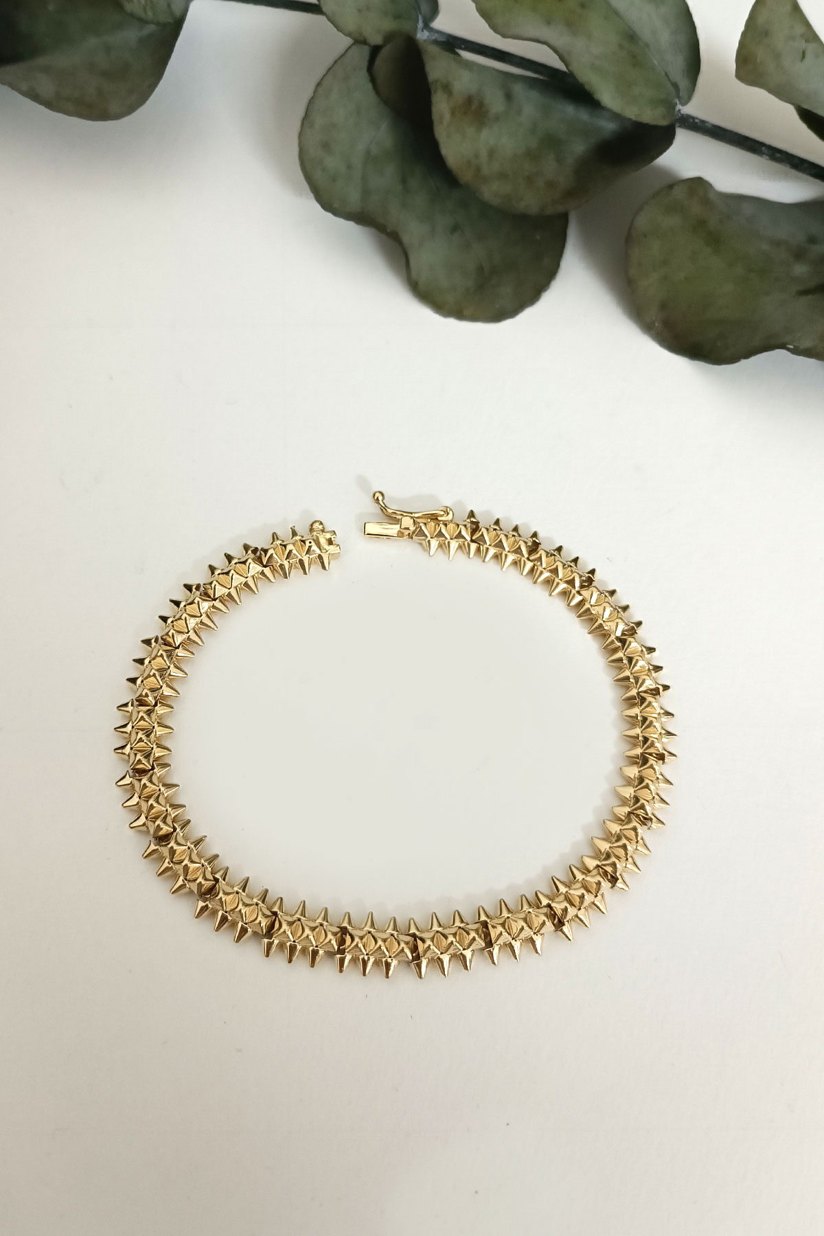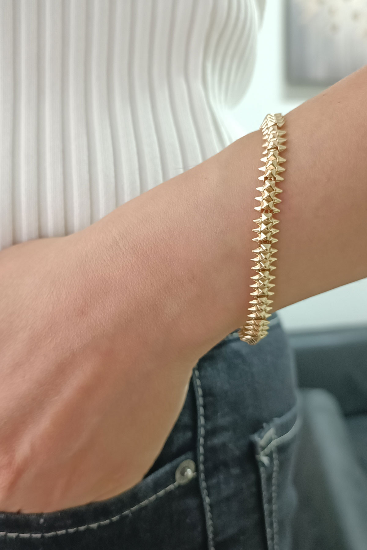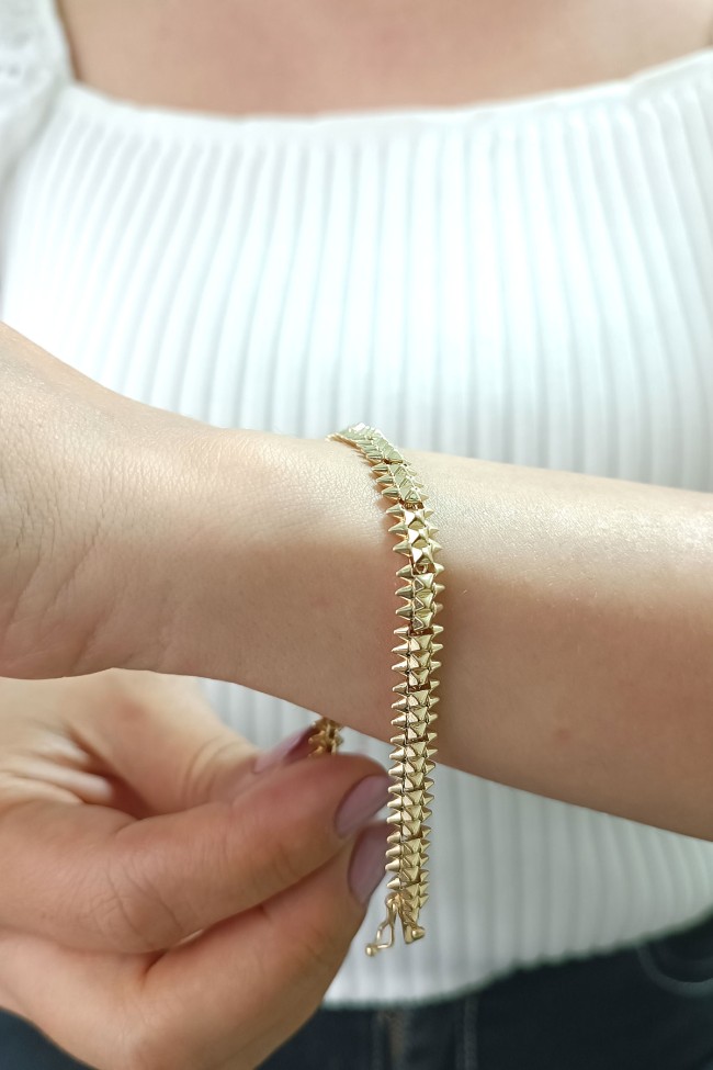 14 Ayar şık ve modern tasarım günlük kullanıma uygun taşsız ışıl ışıl özel piramit tasarımıyla iddialı bir model 10.70 gram ağırlığında altın unisex bileklik.