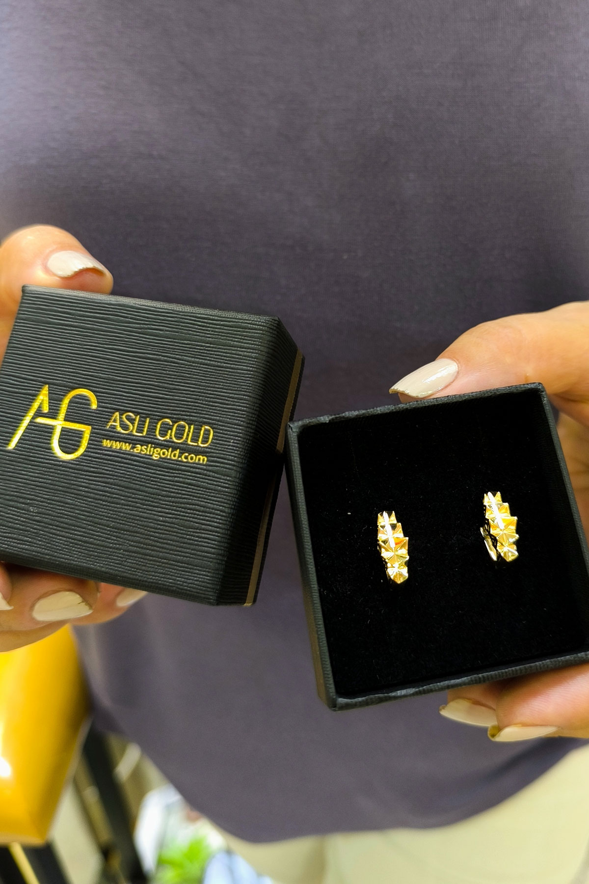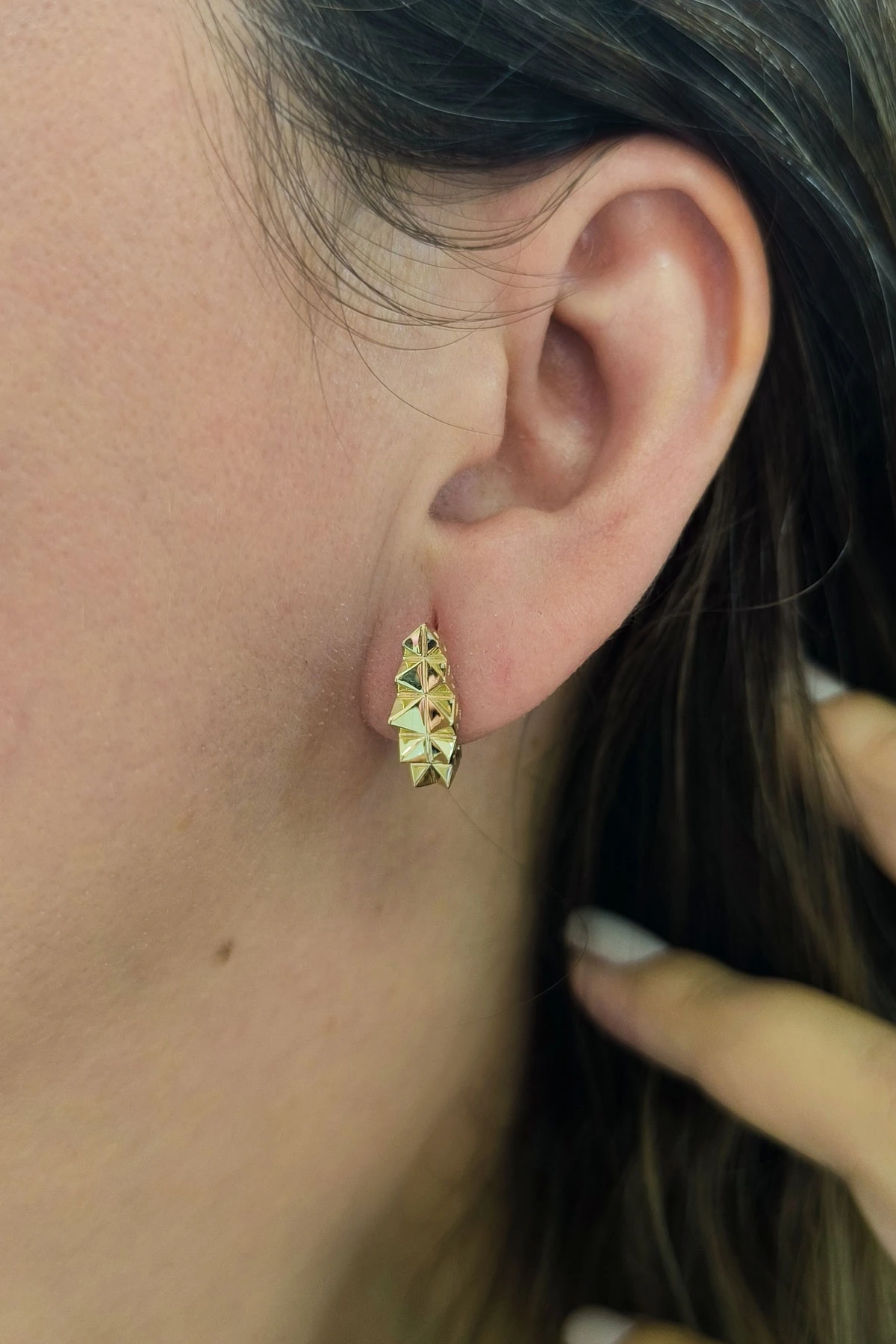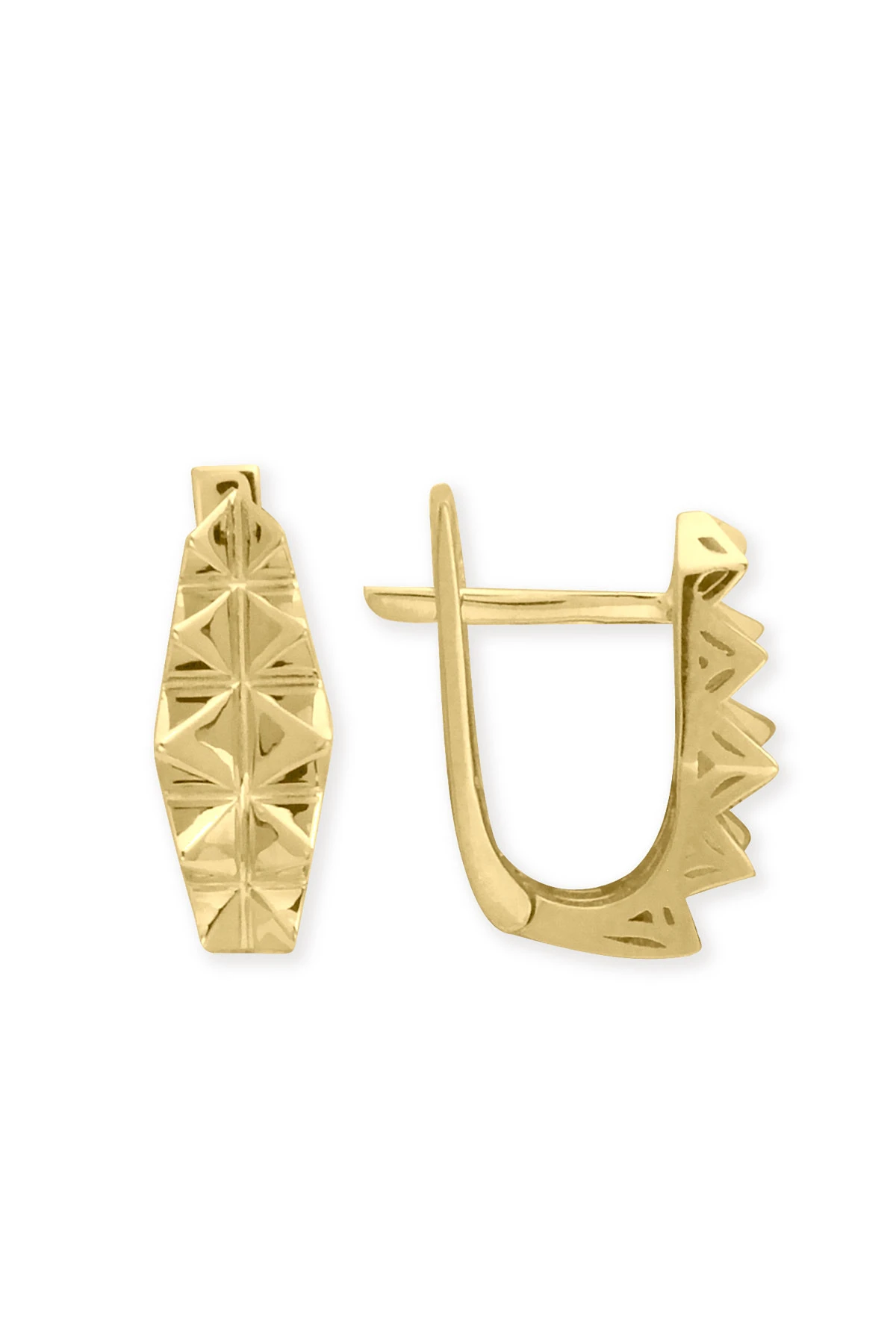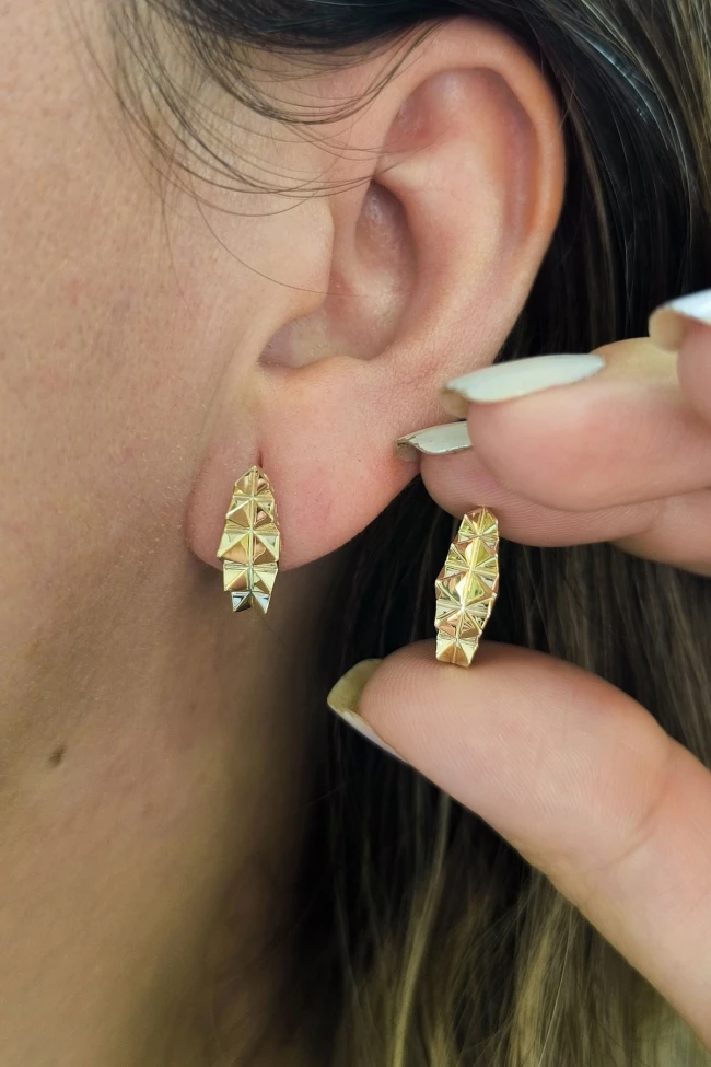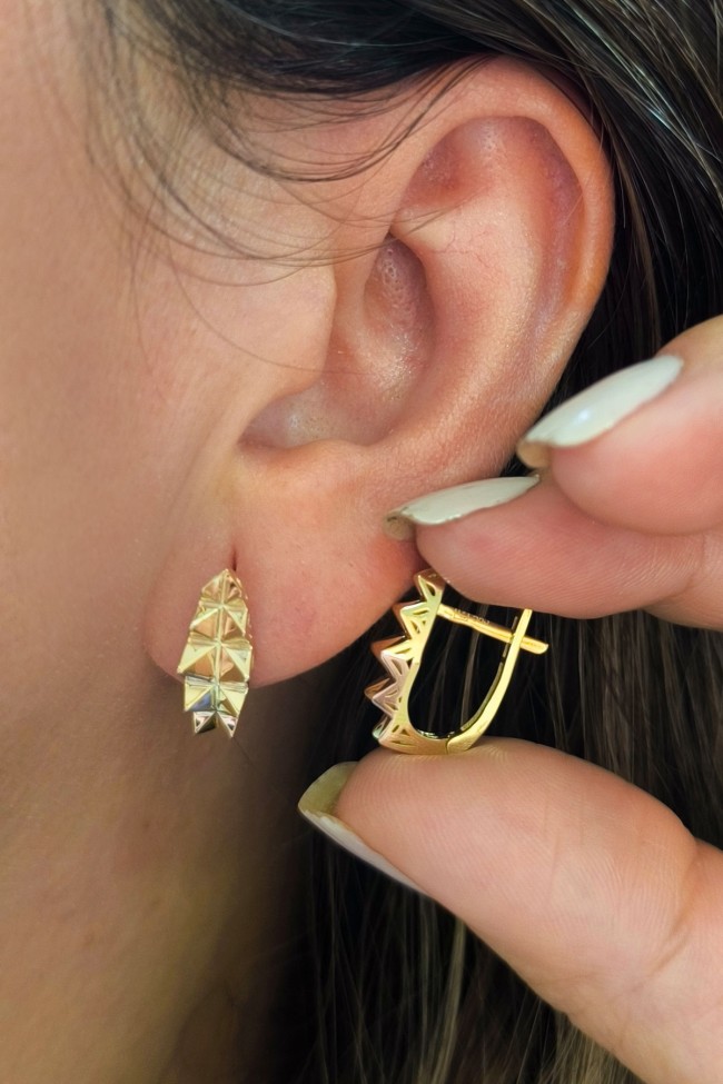 14 Ayar şık ve modern tasarım günlük kullanıma uygun taşsız ışıl ışıl özel piramit tasarımıyla zarif bir model 2.80 gram ağırlığında altın küpe.
