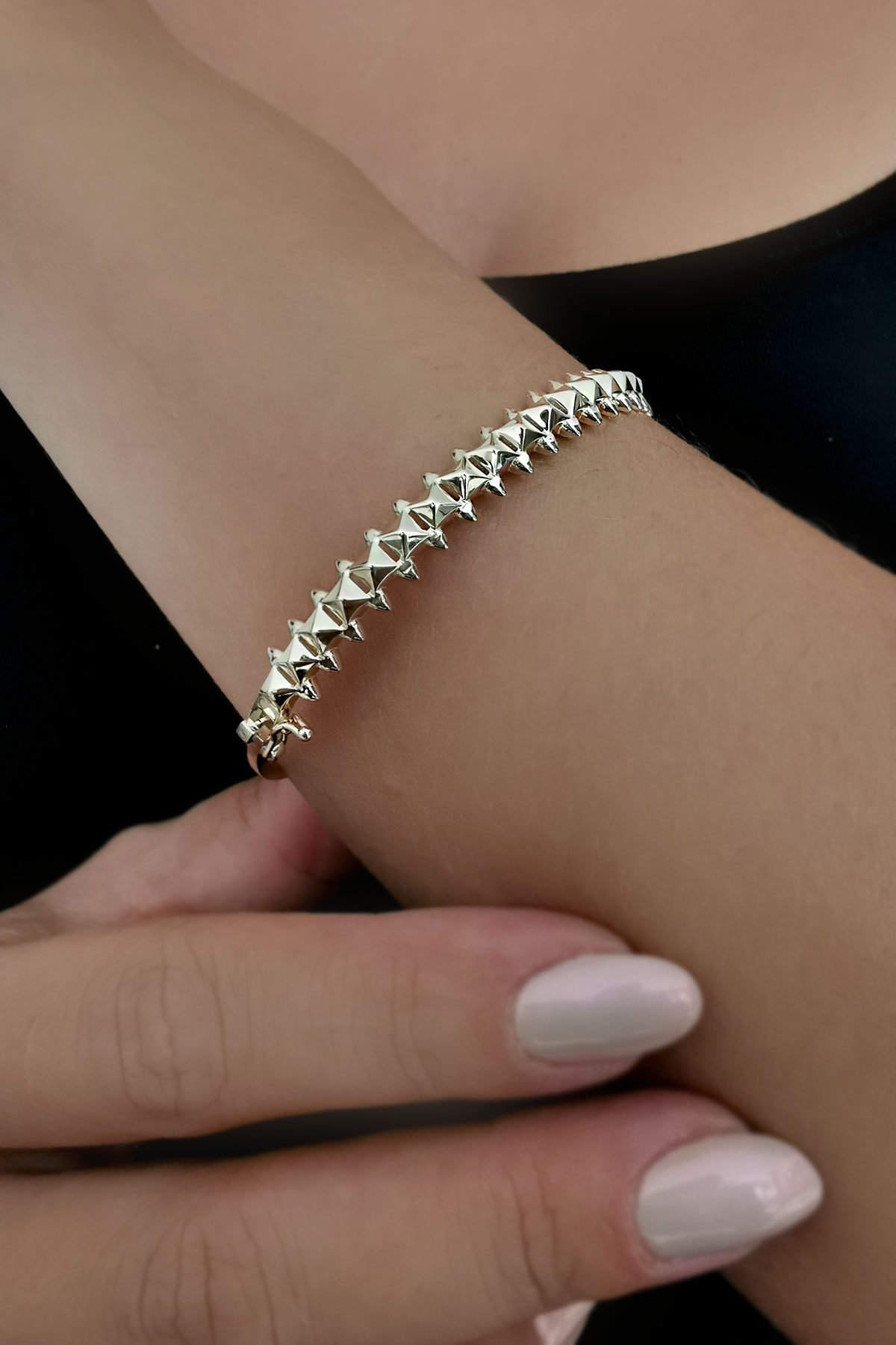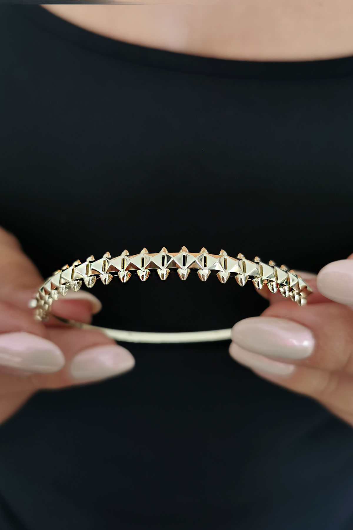 6.80 Gram Ağırlığında 14 Ayar Şık Ve Modern Tasarımıyla Farklı Bir Havaya Sahip Piramit Model Tasarım Taşsız Altın Bilezik.