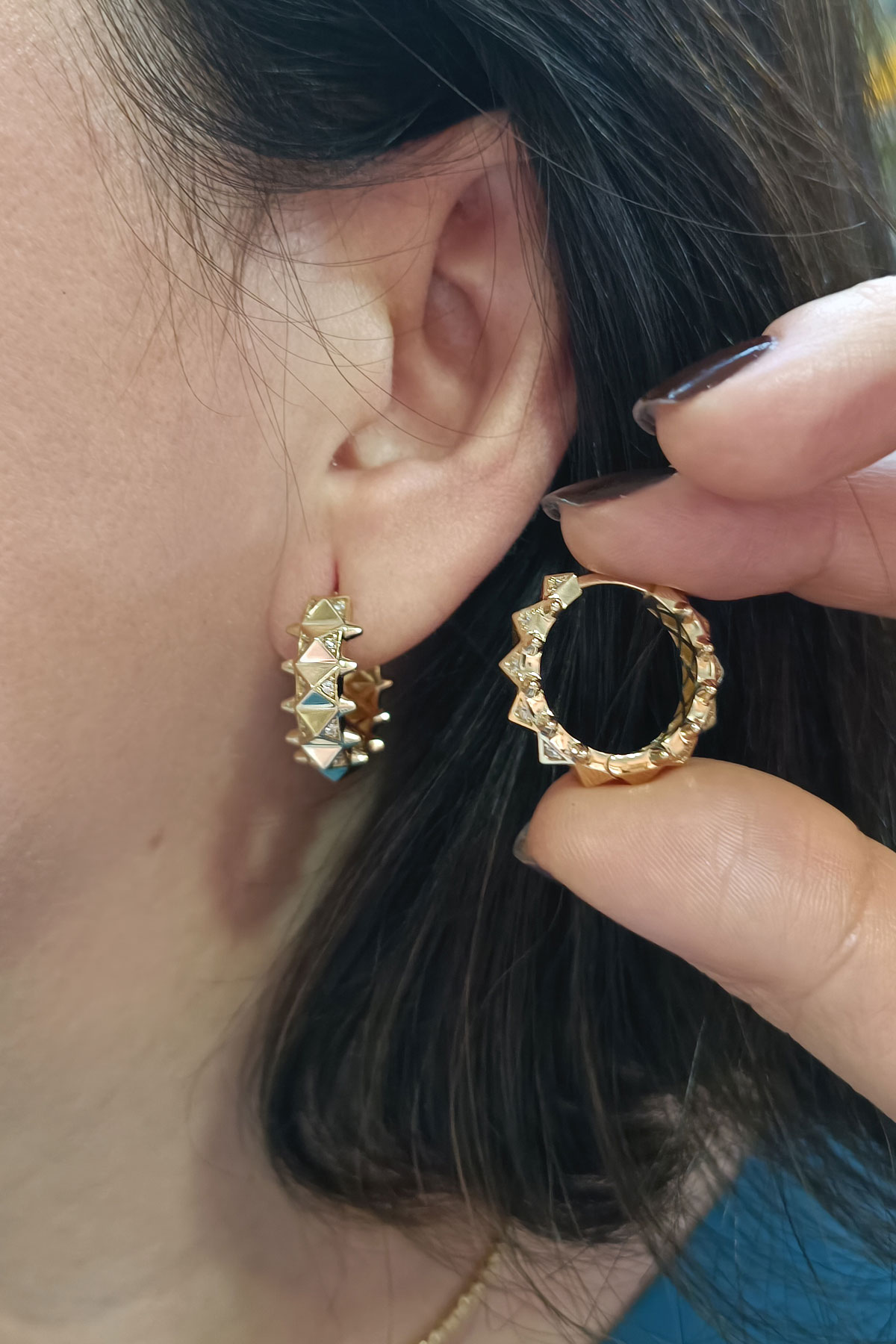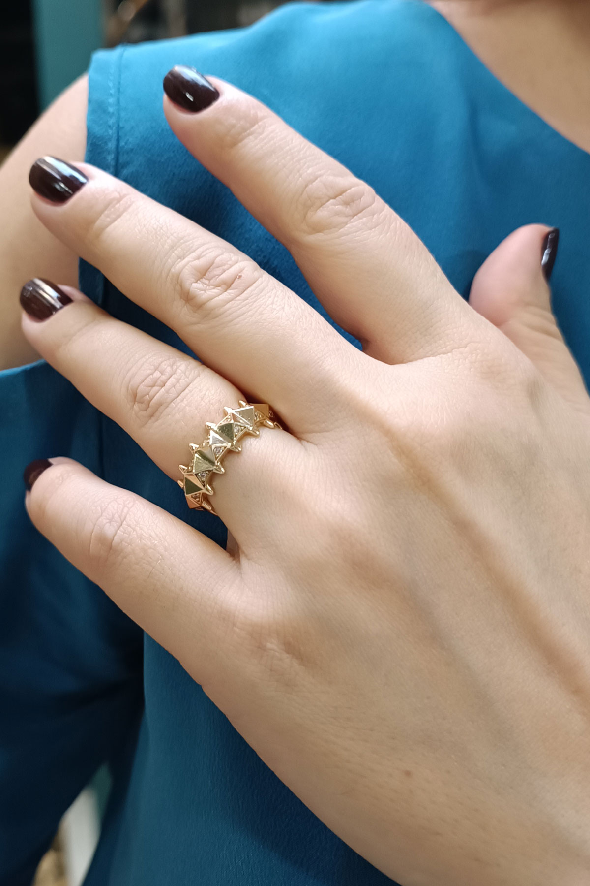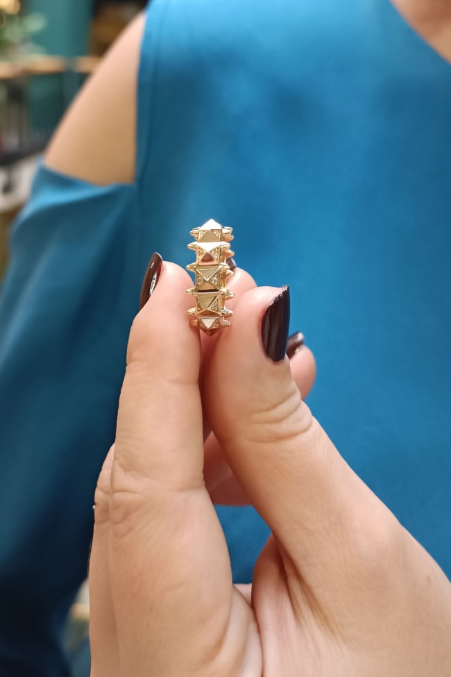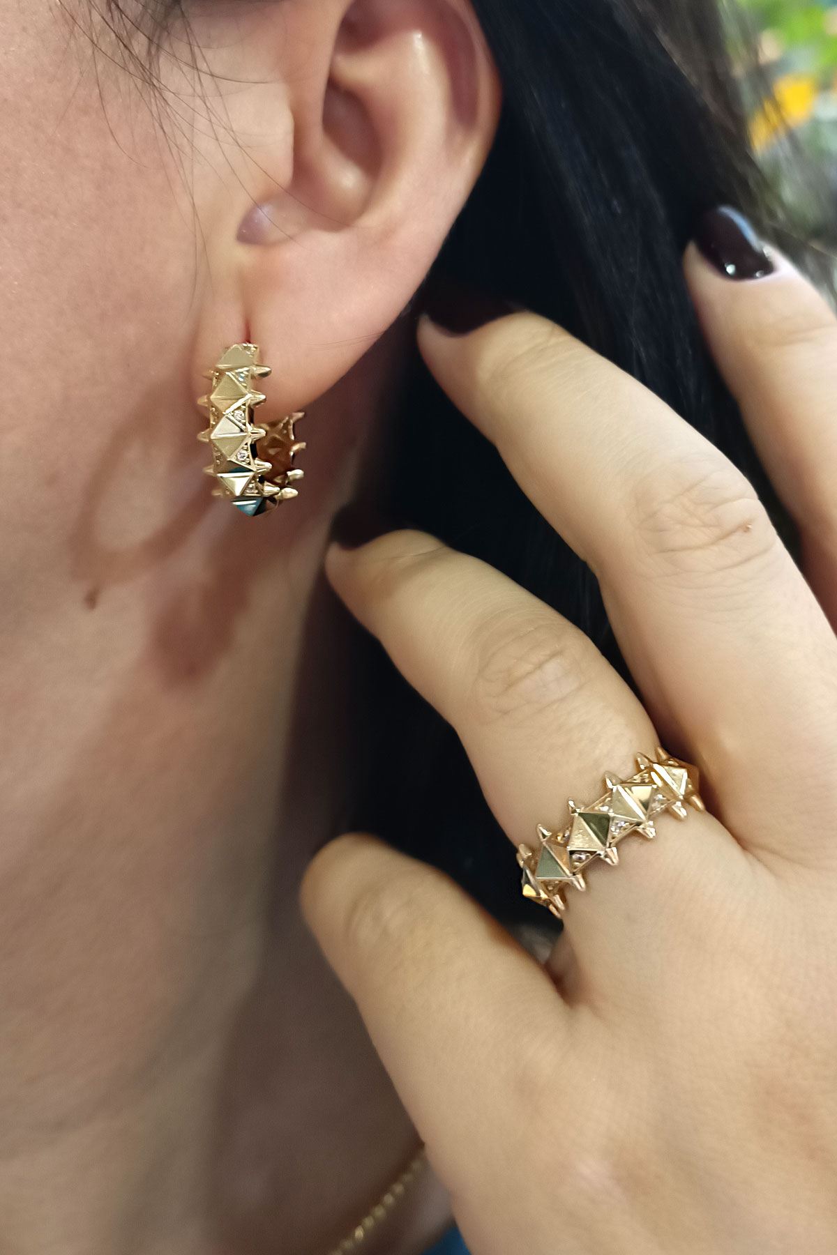 11.50 Gram Ağırlığında 14 Ayar Şık Ve Modern Tasarımıyla Farklı Bir Havaya Sahip Piramit Model Tasarım Taşsız Altın Yüzük Küpe Takım.