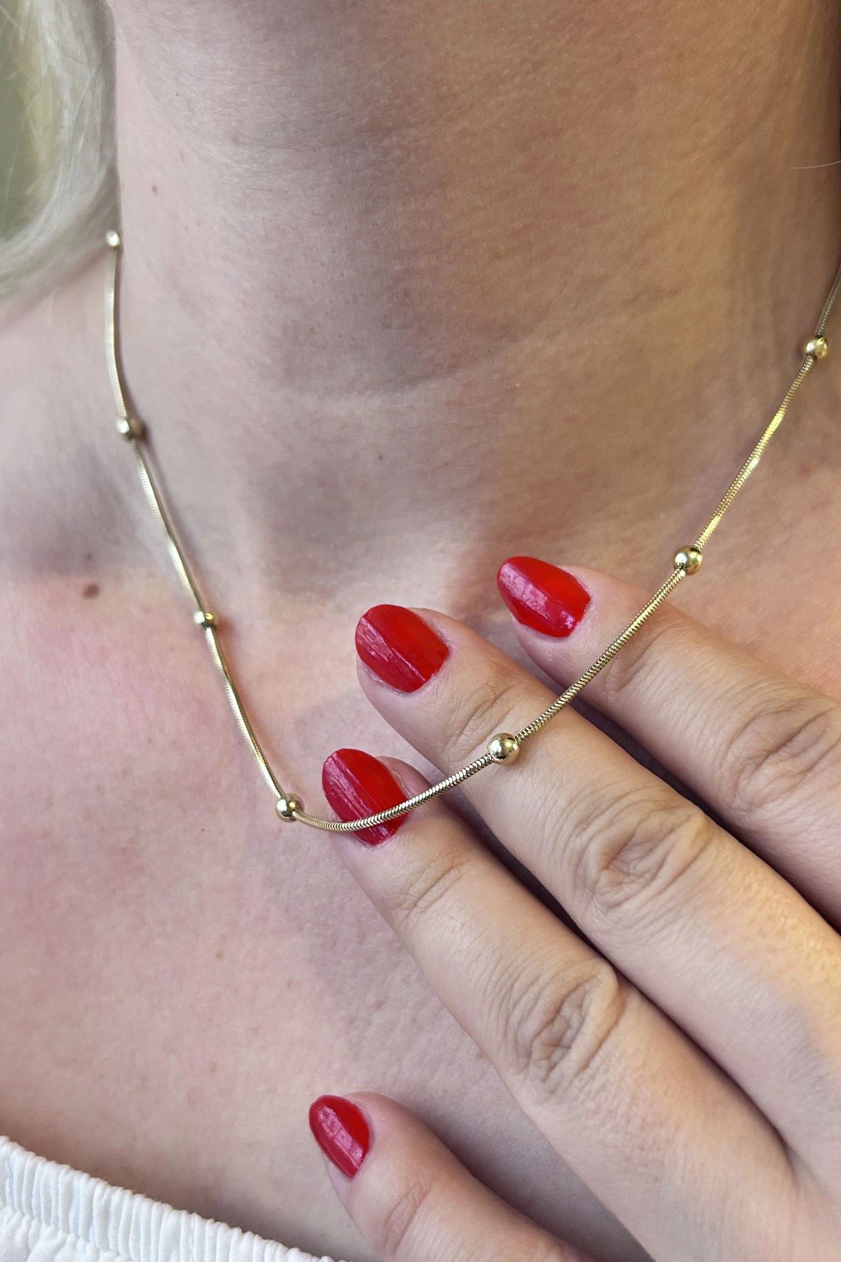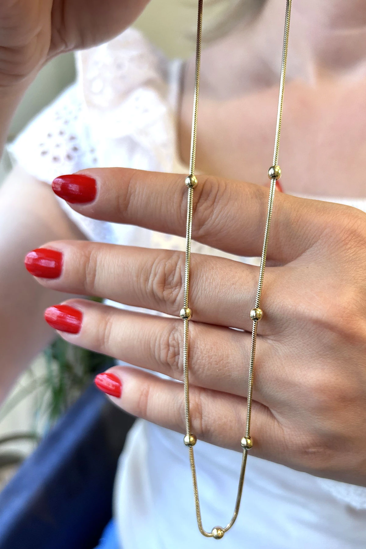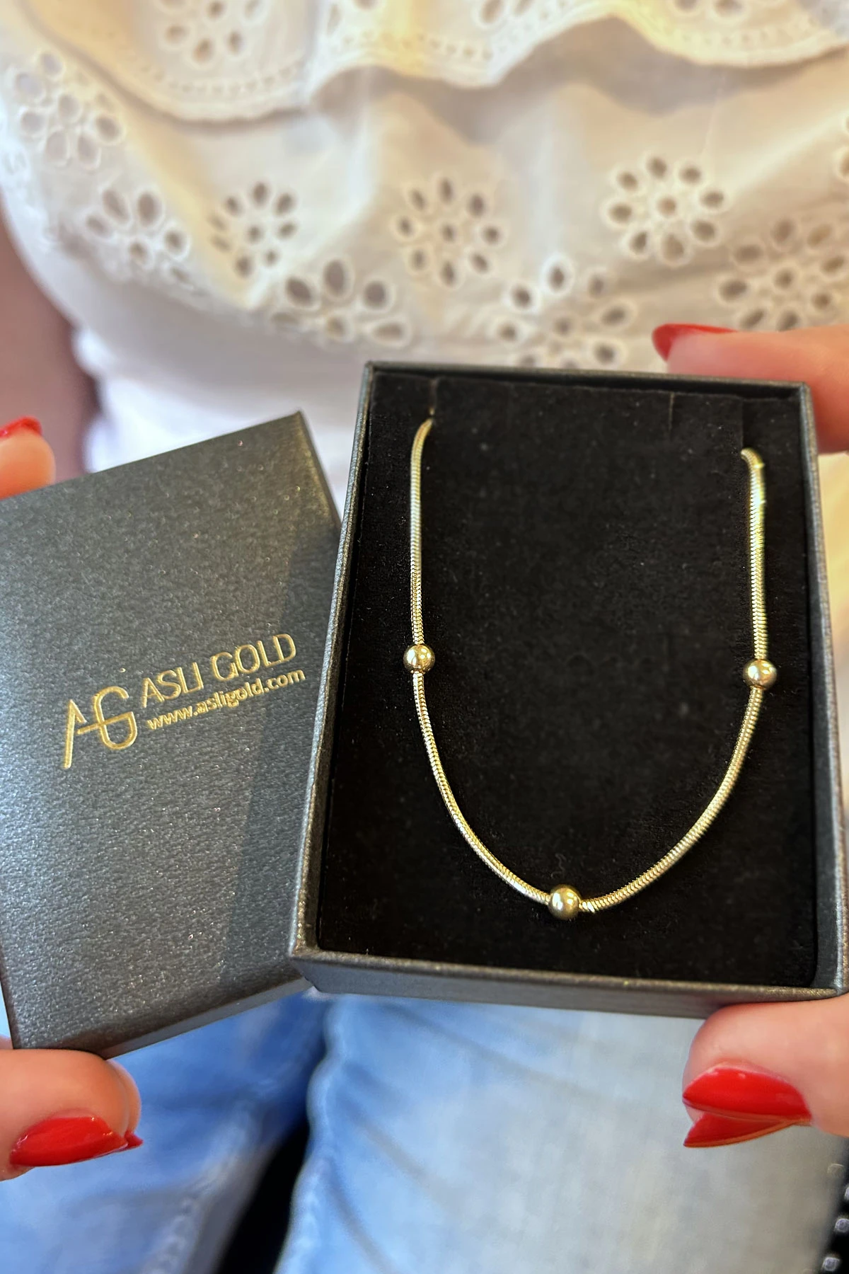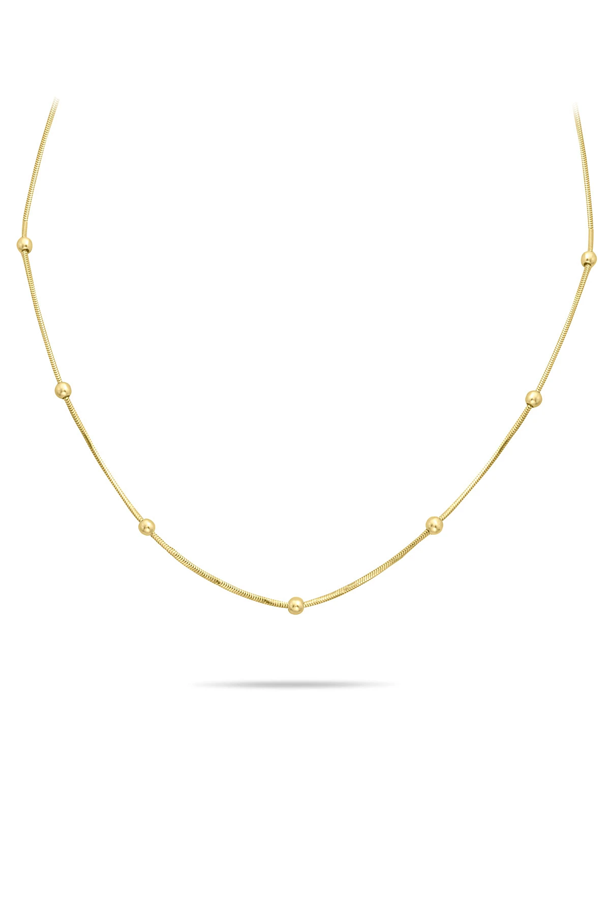 14 Ayar taşzız ışıl ışıl ve top detaylı tasarımı ile zarif duruşa sahip günlük kullanıma uygun 5.10 gram ağırlığında 45 Cm uzunluğunda piton zincirli altın kolye.