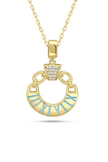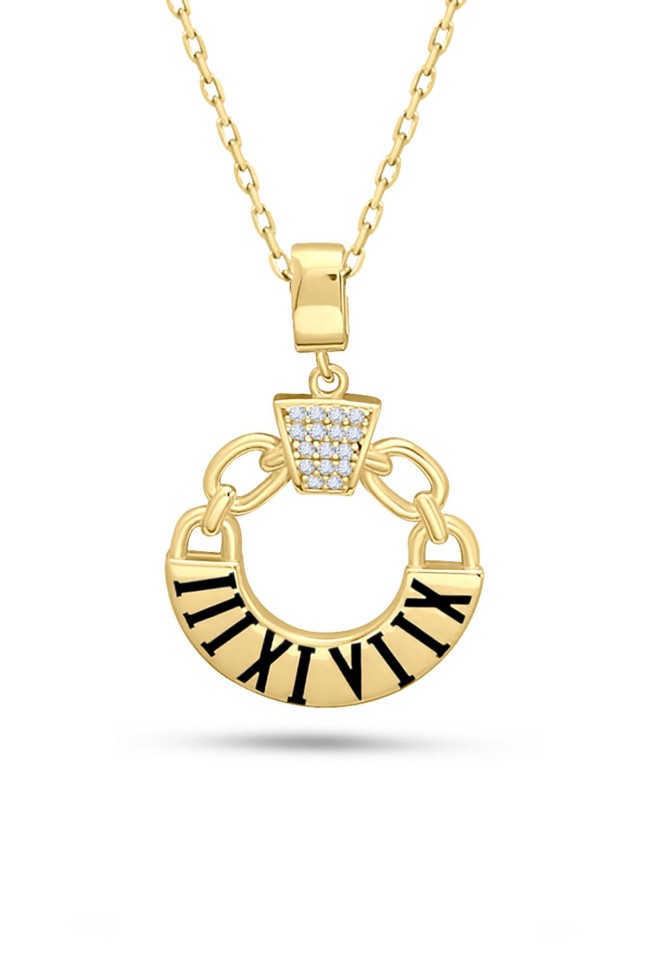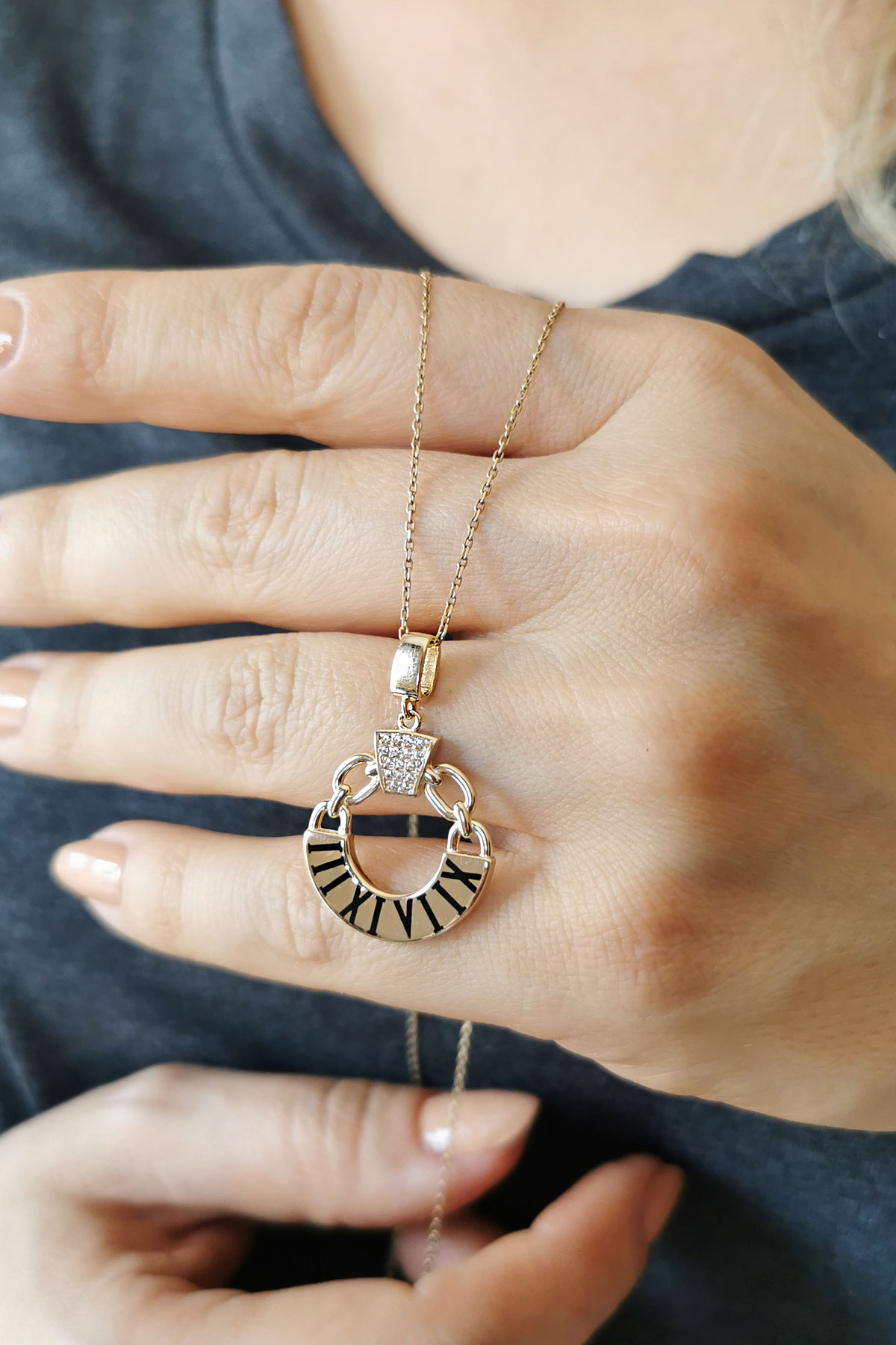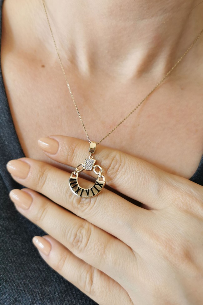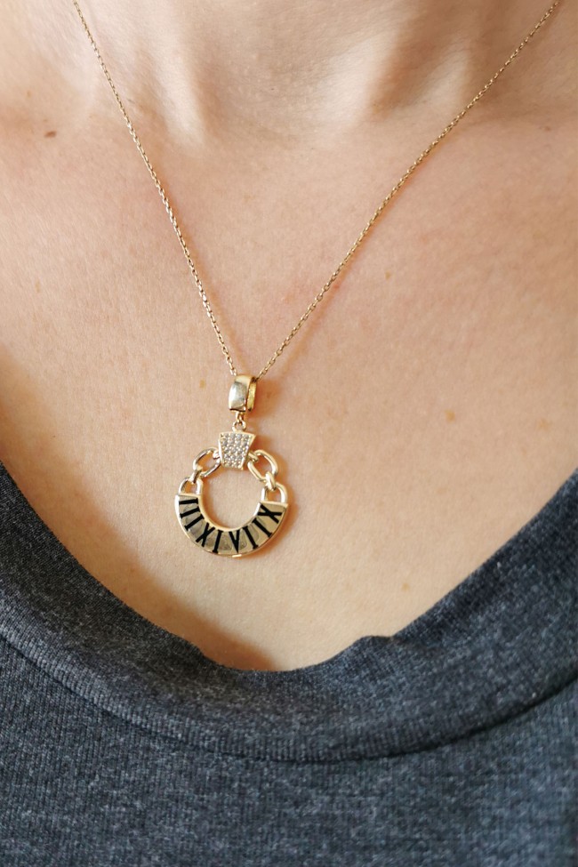 4.60 gr. 3 cm boyutunda siyah mine roma rakamlı model 14 ayar altın tasarım kolye.