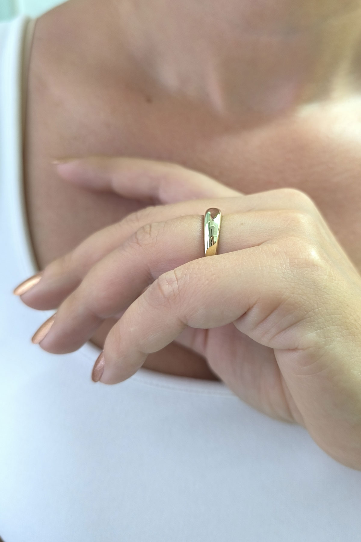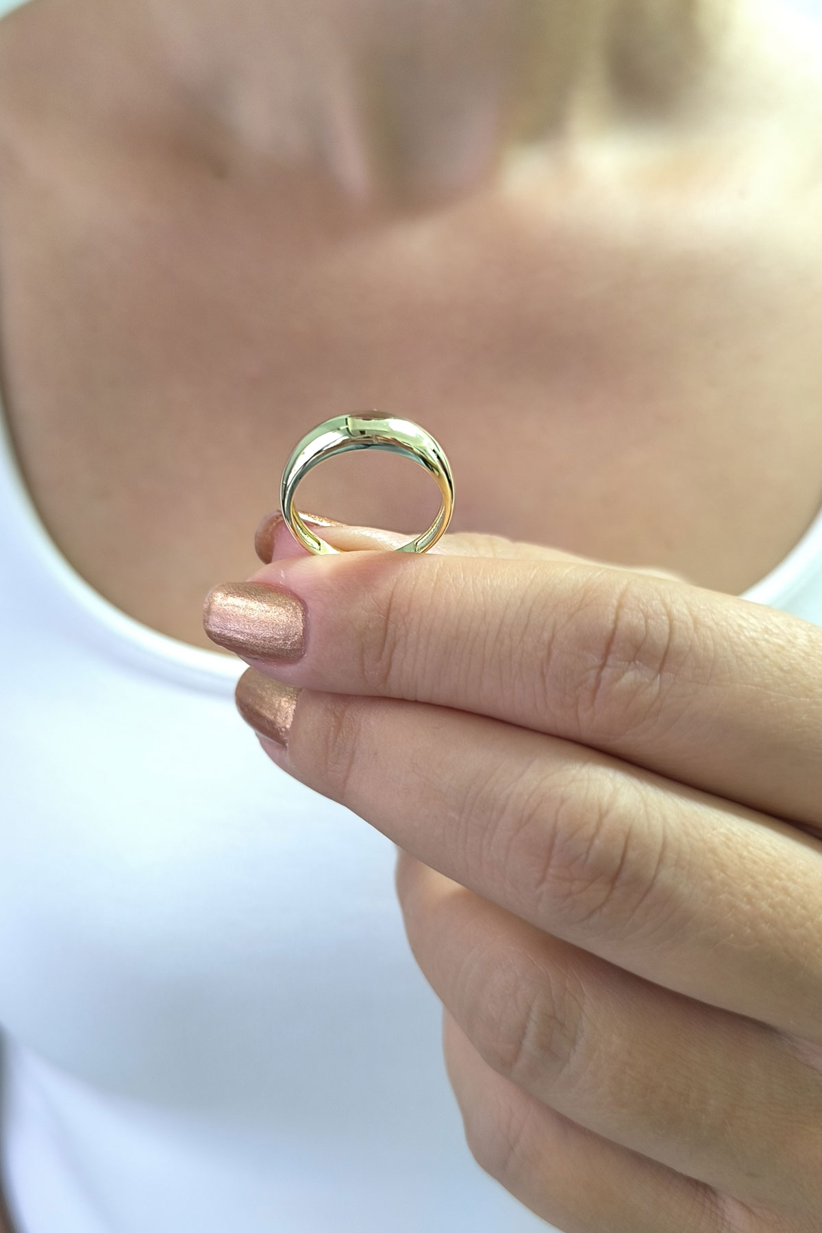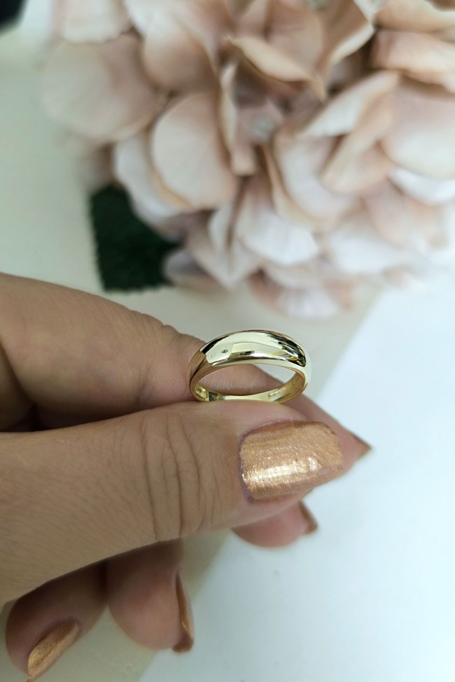 14 ayar sarı altın taşsız tasarımıyla günlük kullanıma uygun parmağınızda stilinize hava katacak 2.30 gram ağırlığında sade bombe yüzük.