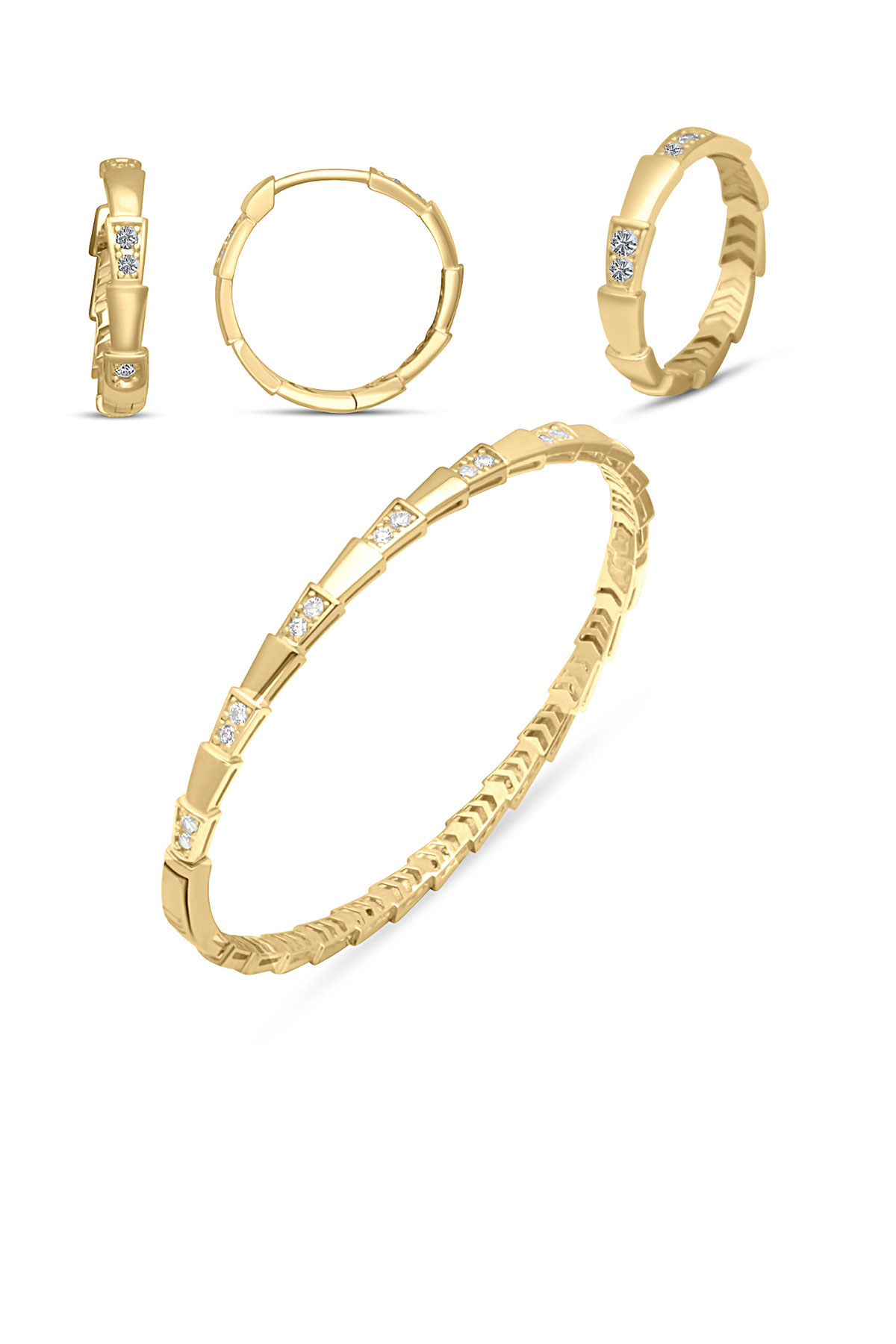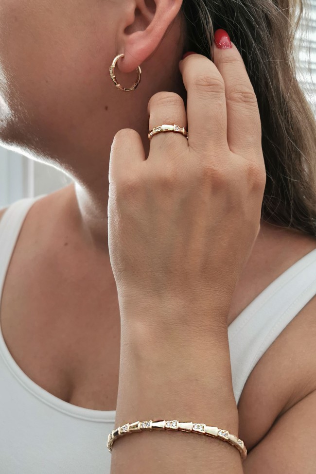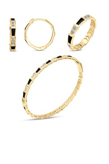 14.30 Gram Ağırlığında 14 Ayar Taş Detaylı Sade Ve Modern Tasarımıyla Farklı Bir Havaya Sahip  Altın Küpe, Yüzük, Bilezik Takım.