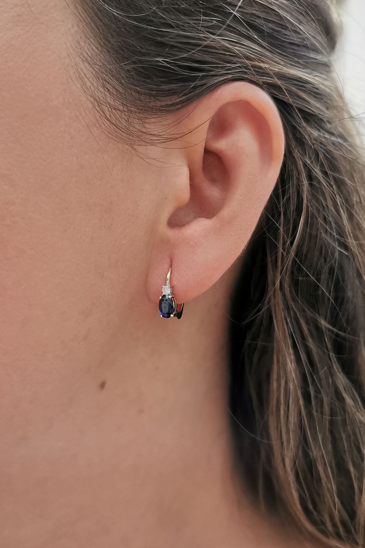 2.70 Gram Modern ve Minimal Zarif Tasarım 14 Ayar Altın Oval Zirkon Safir Taşlı Kadın Günlük Küpe.
