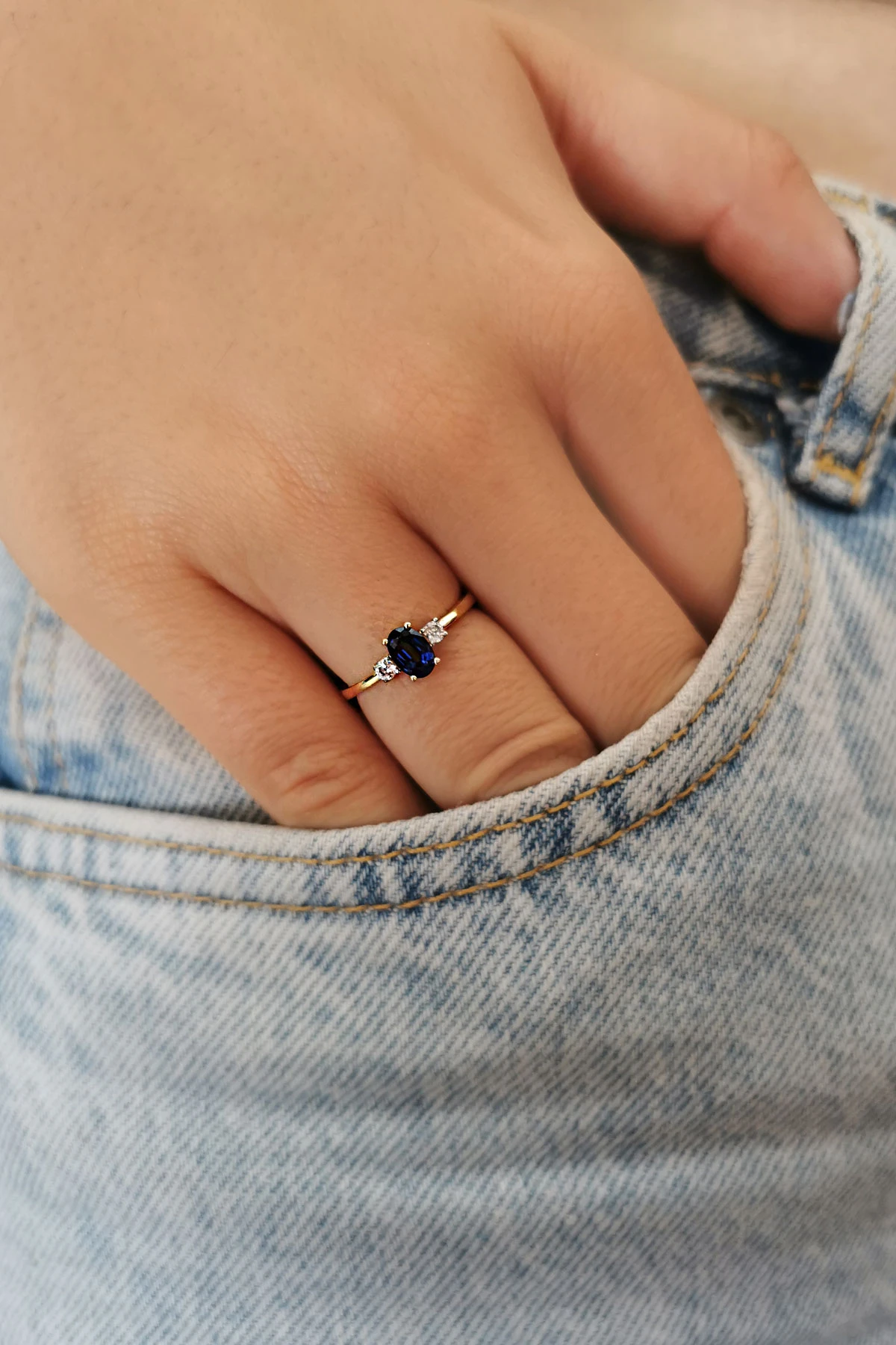 Dilerseniz Serçe Parmak Yüzüğü Olarakta Kullanabileceğiniz 1.40 Gram Modern ve Şık Tasarım 14 Ayar Altın Zirkon Safir Taşlı Kadın Günlük Yüzük.
