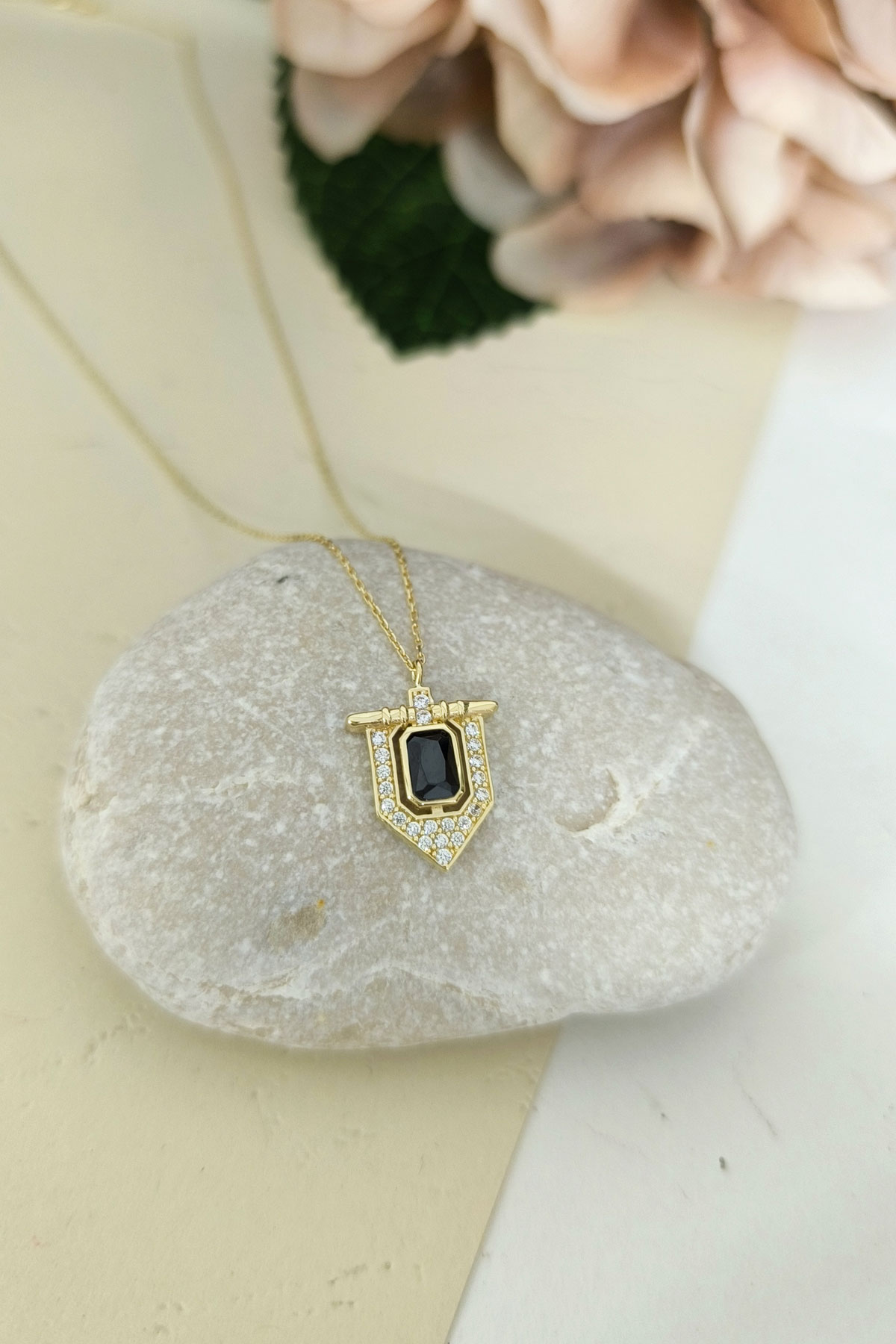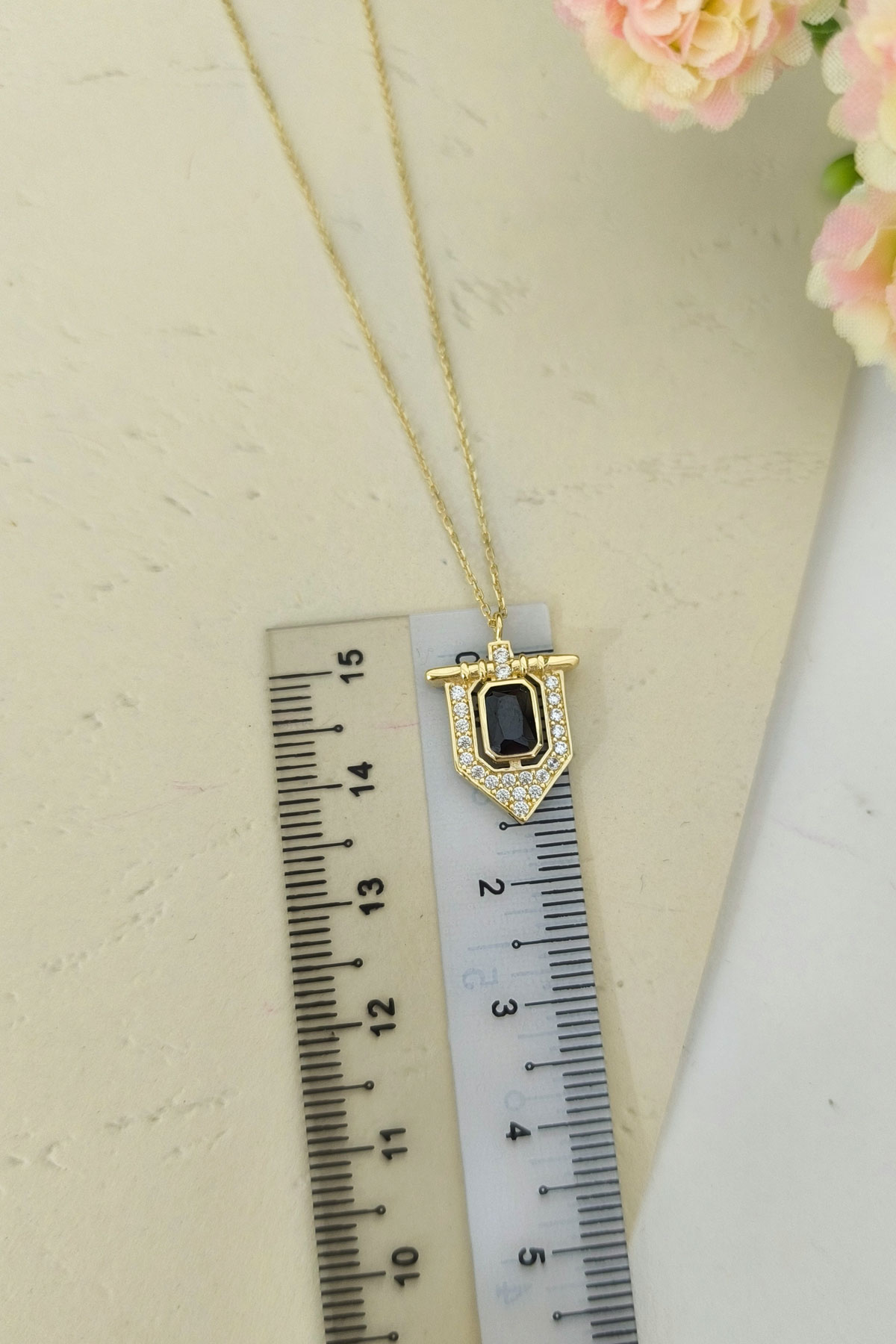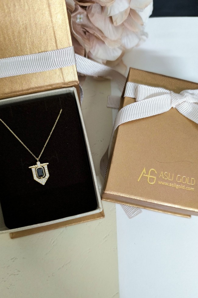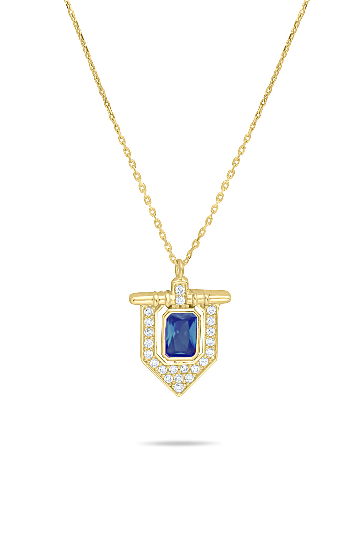45 Cm zincirli 2.60 gr. 2 cm boyutunda zirkon safir taş detaylı otantik model 14 ayar altın kolye.