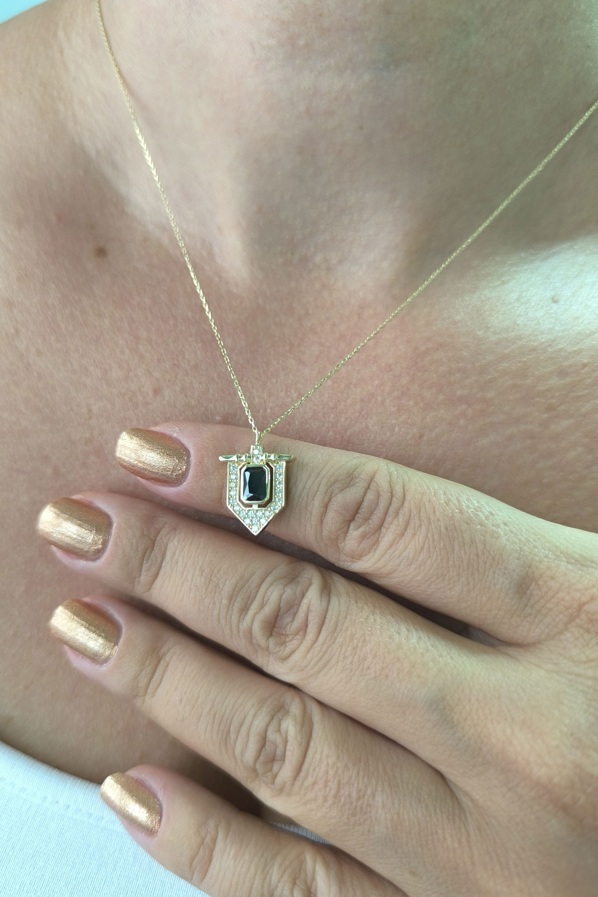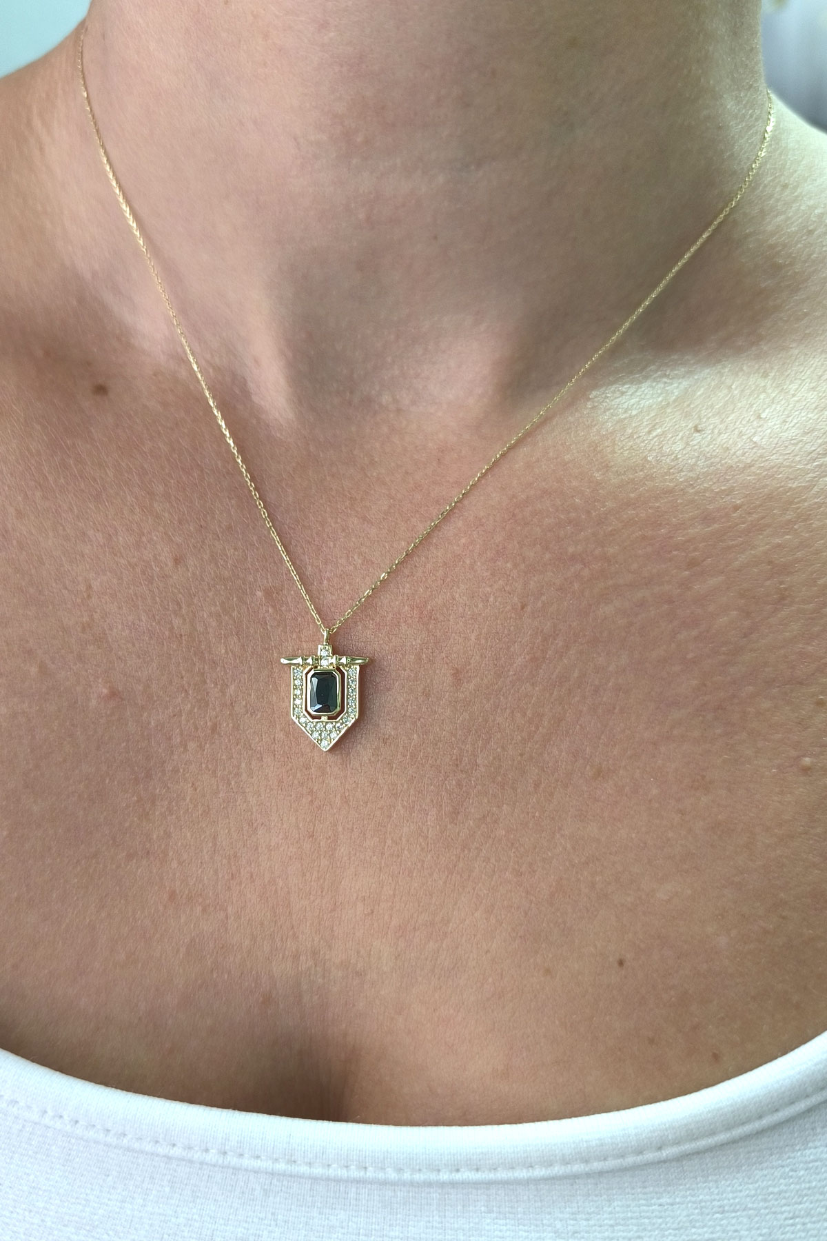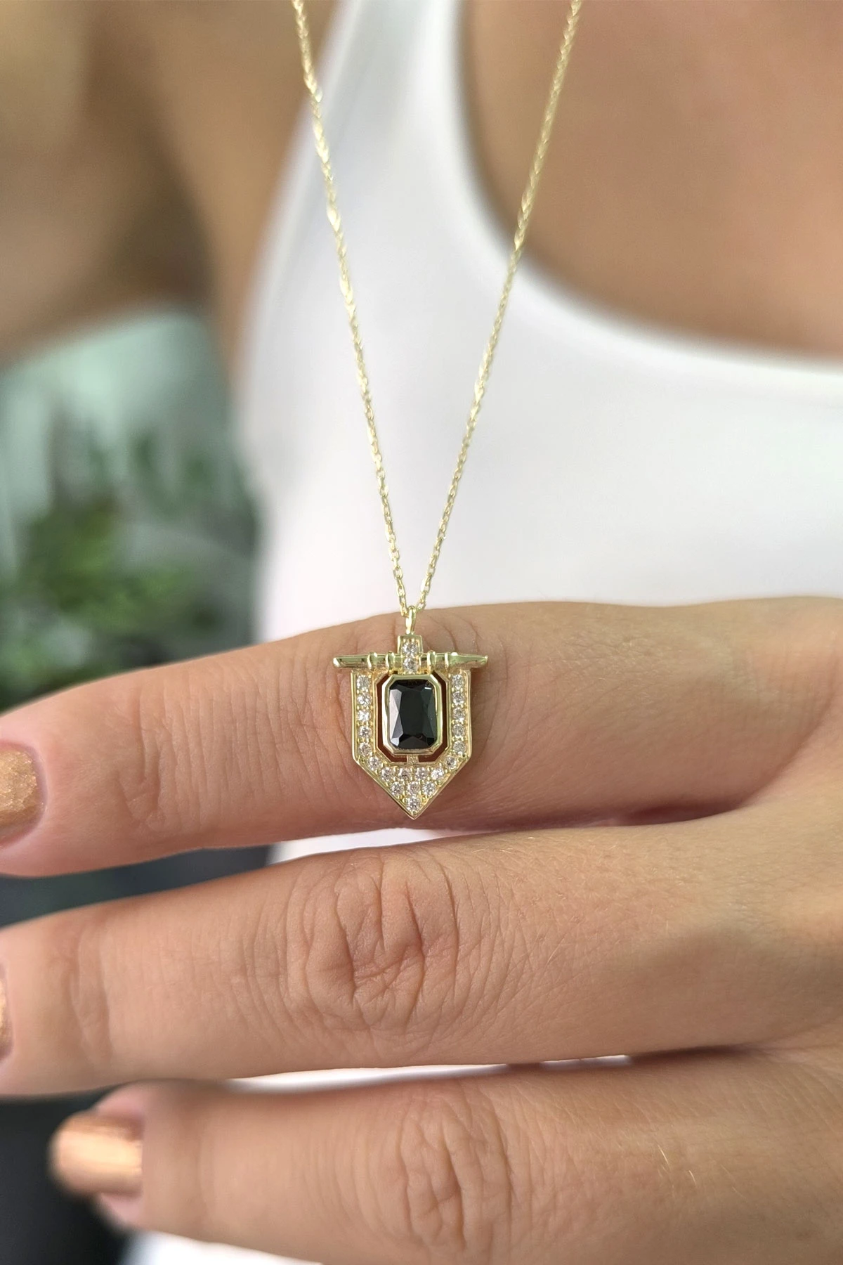 45 Cm zincirli 2.60 gr. 2 cm boyutunda zirkon safir taş detaylı otantik model 14 ayar altın kolye.