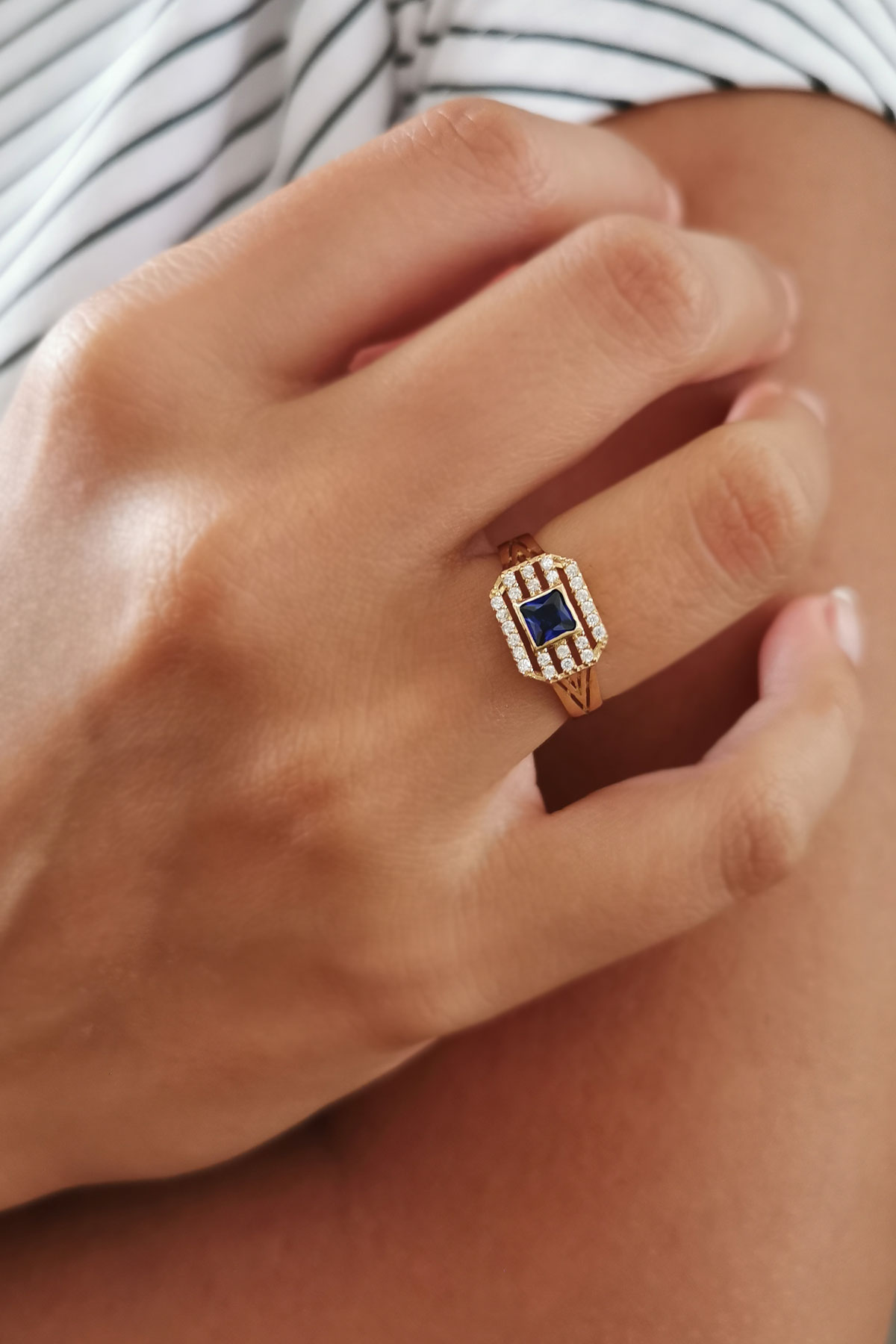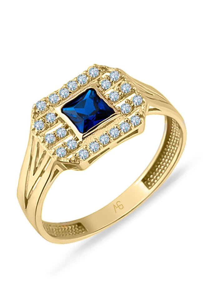 1.65 Gram Ağırlığında Otantik Bir Tarza Sahip Günlük Kullanıma Uygun Zirkon Safir Taşlı 14 Ayar Altın Tasarım Yüzük.