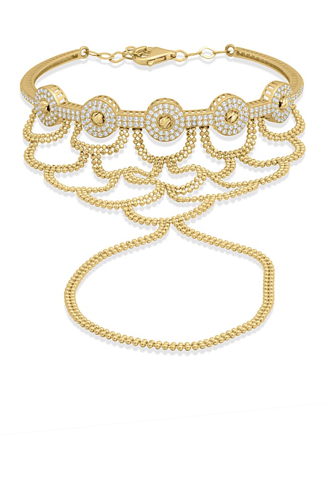14 Ayar ışıl ışıl taş detaylı şık tasarımı ile gösterişli ve şahane bir duruşa sahip günlük kullanıma uygun 14.60 gram ağırlığında altın şahmeran bilezik.