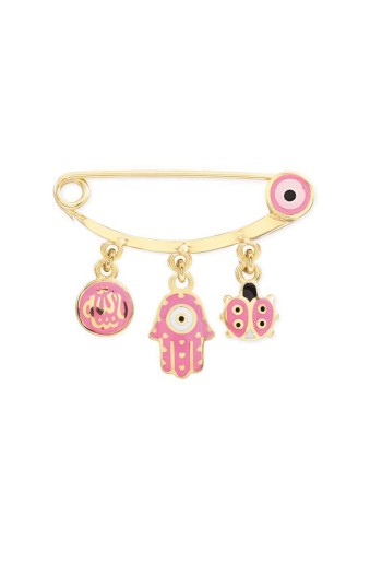3 Cm boyunda isterseniz seçime bağlı olarak isim yazılı yada isimsiz satın alabileceğiniz 14 ayar 2.50 gr ağırlığında altın pembe nazar detaylı uğur böcekli çocuk iğnesi.