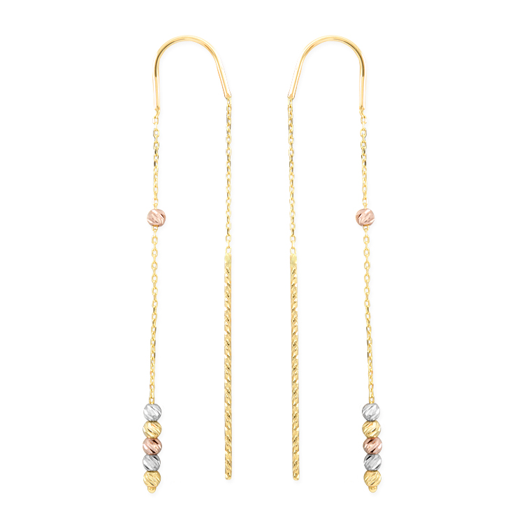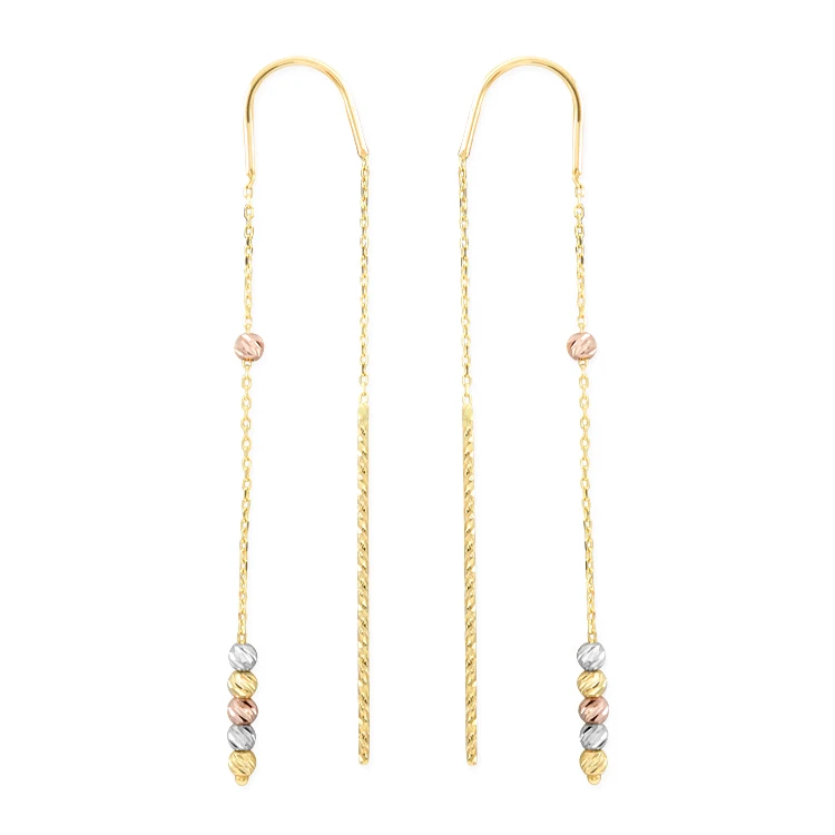 6 Cm boyunda günlük kullanıma uygun minimal sallantılı tasarımı ile her zaman kulağınızda kolyelerinize kombin olarak kullanabileceğiniz 14 ayar 1.50 gr ağırlığında altın dorika küpe.