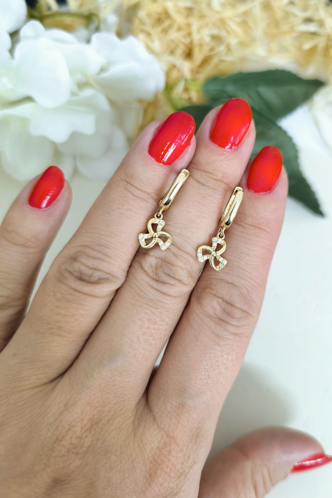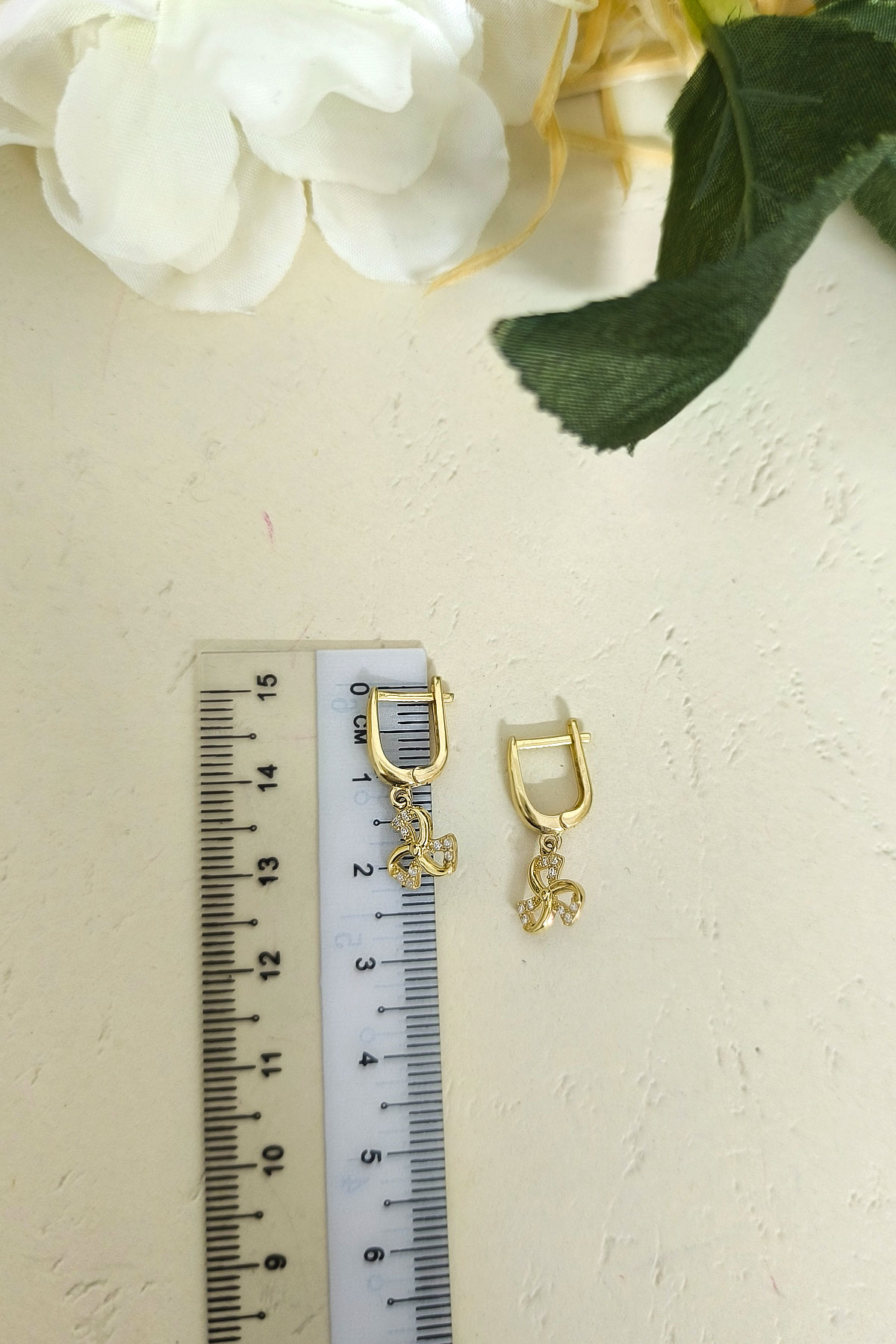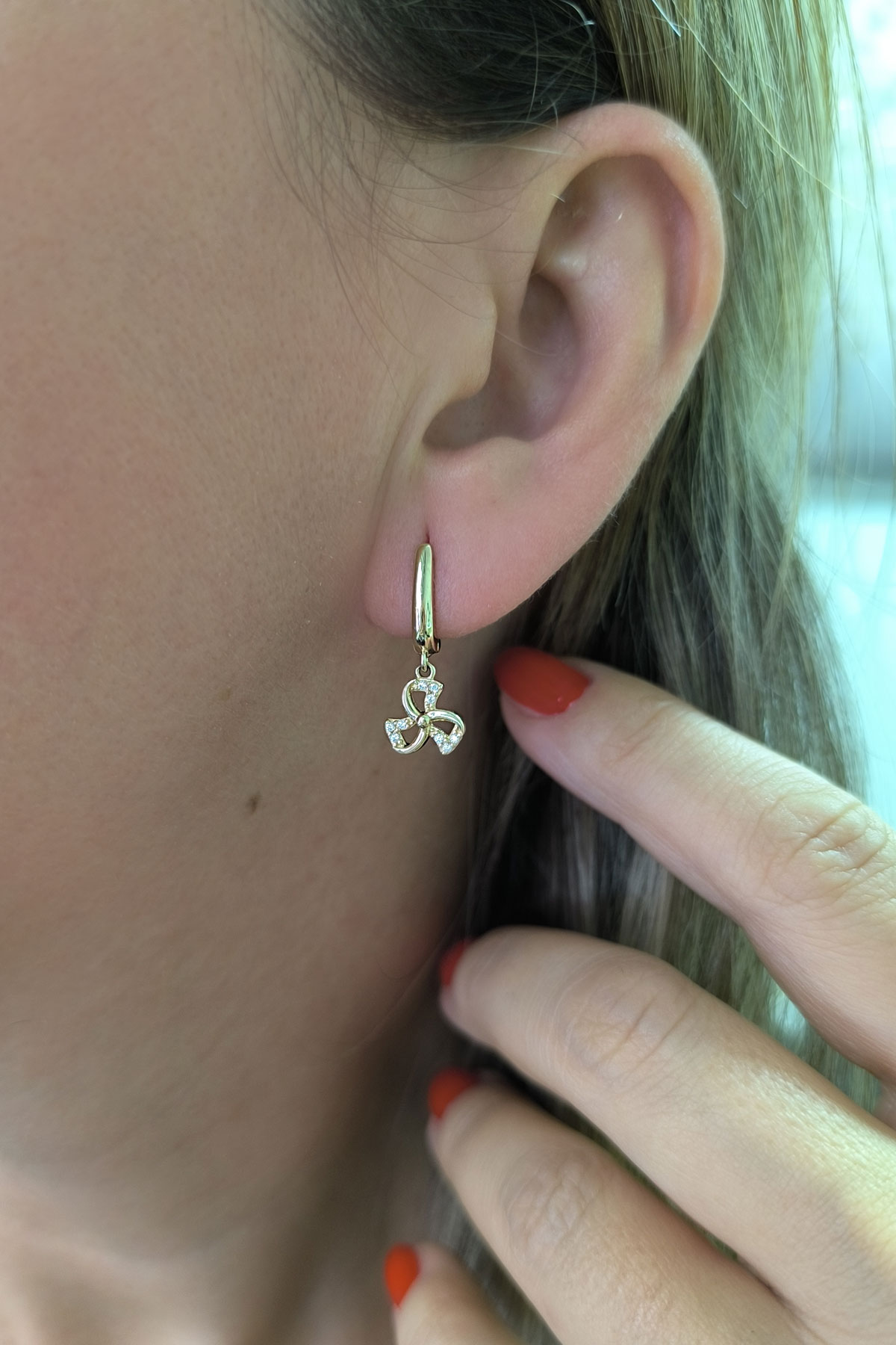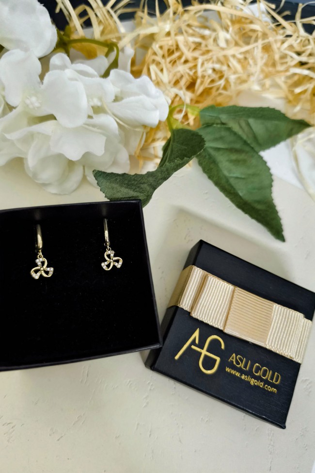 2.60 Gram Ağırlığında 2.2 Cm Şans Model Sallantılı Model Zirkon Taşlı Günlük, Modern Ve Şık Bir Duruşa Sahip 14 Ayar Altın Charm Küpe.