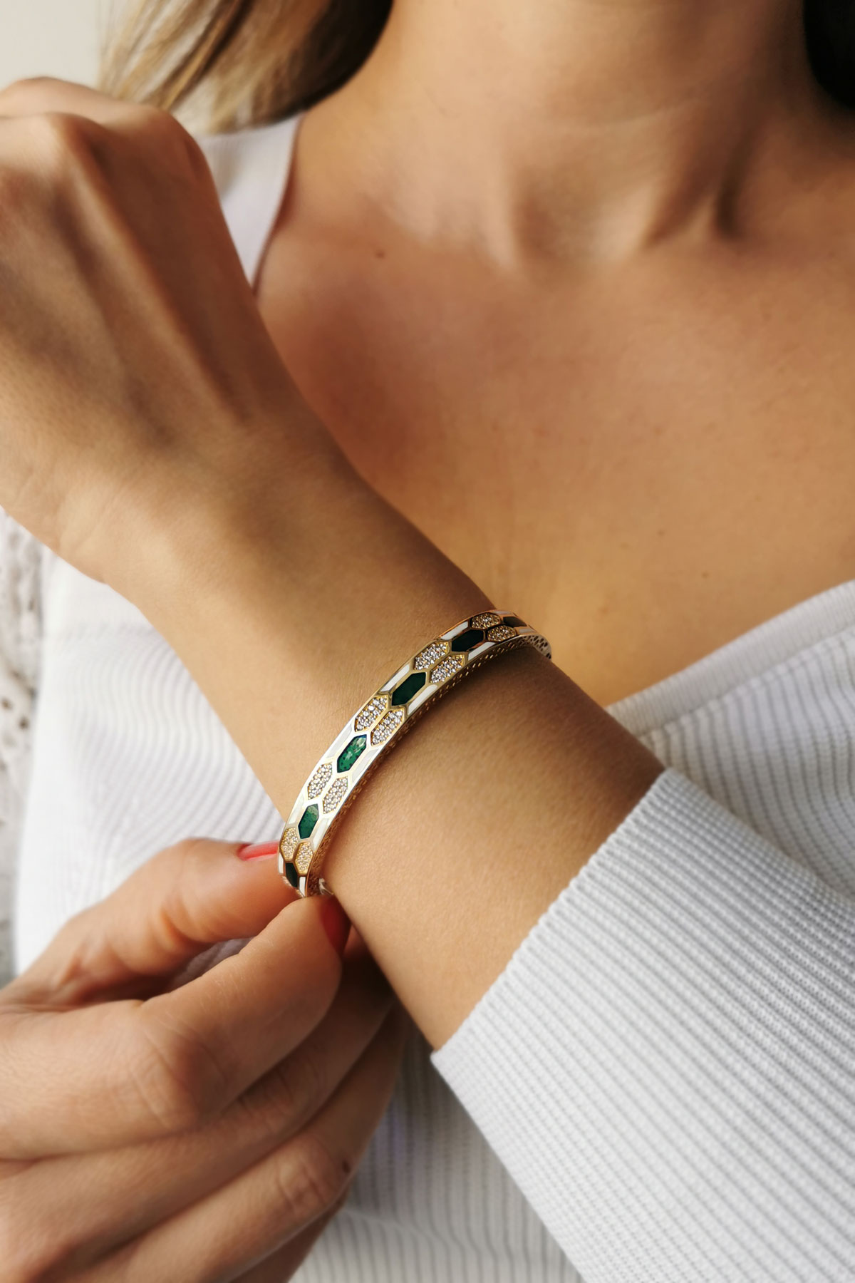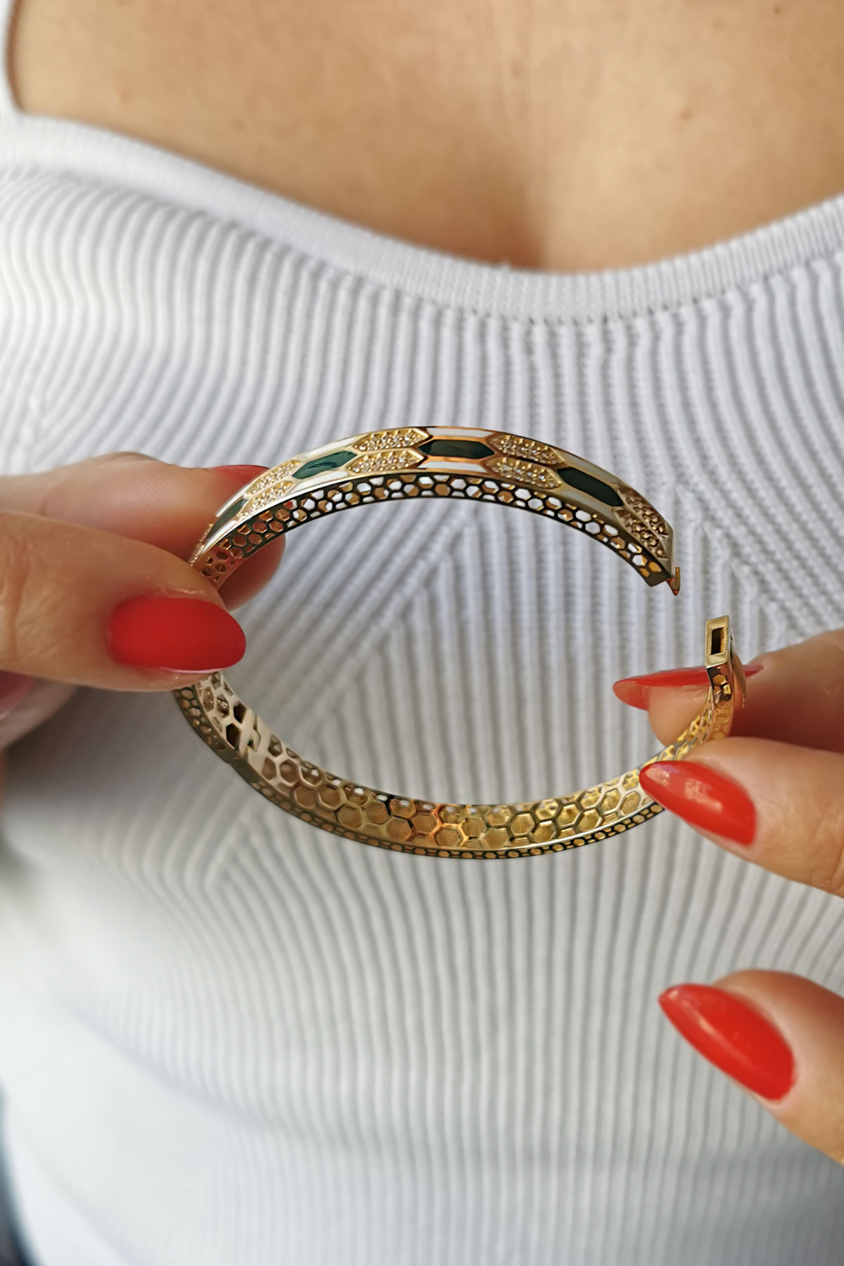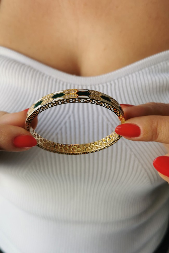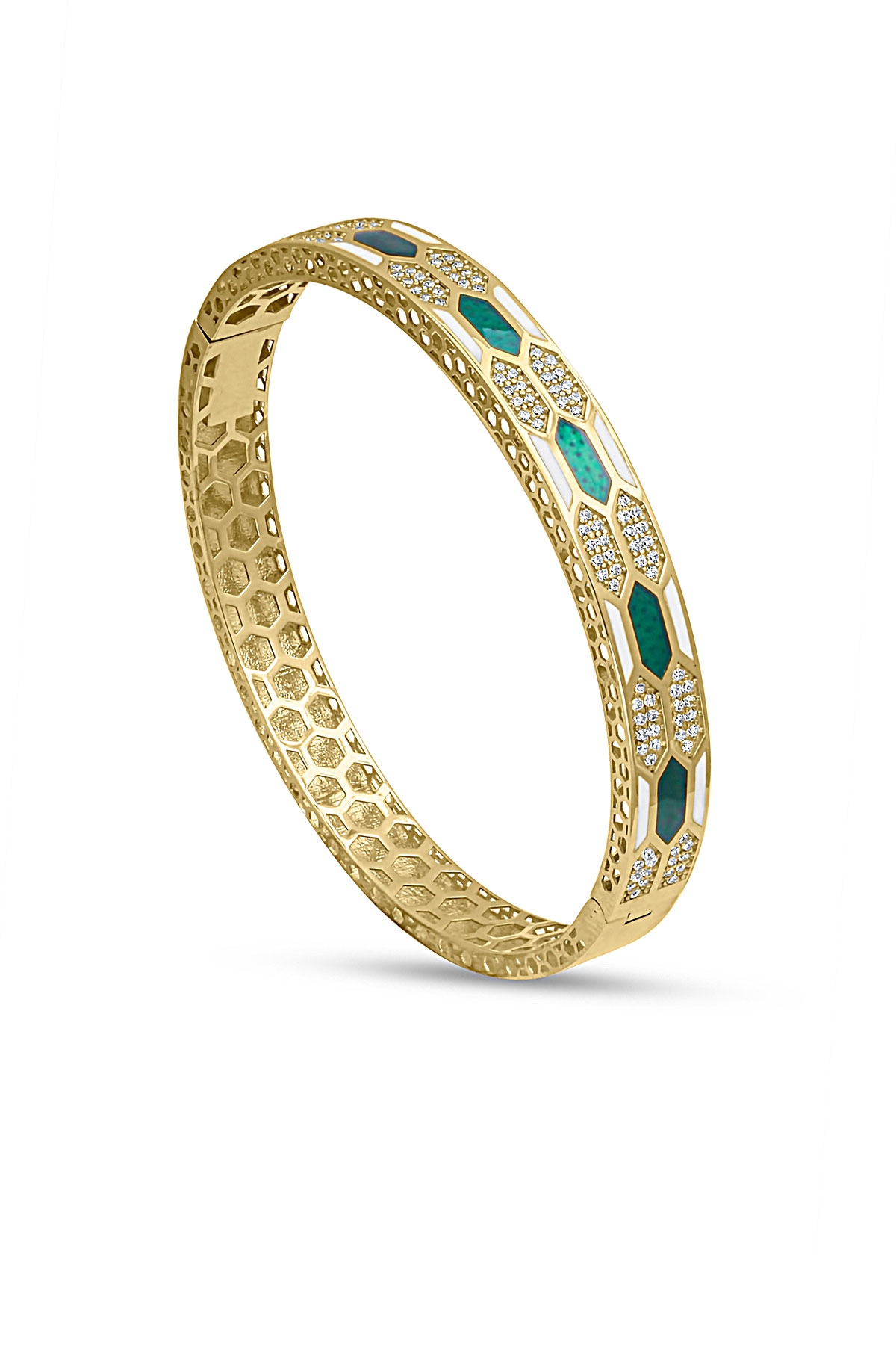 13.00 Gram Ağırlığında 7.2 Mm Genişliğinde 14 Ayar Füzyon Model Üzeri Mine Ve Sedef İşi El İşçiliği İle Özel Olarak Üretilen Kelepçe Bilezik.