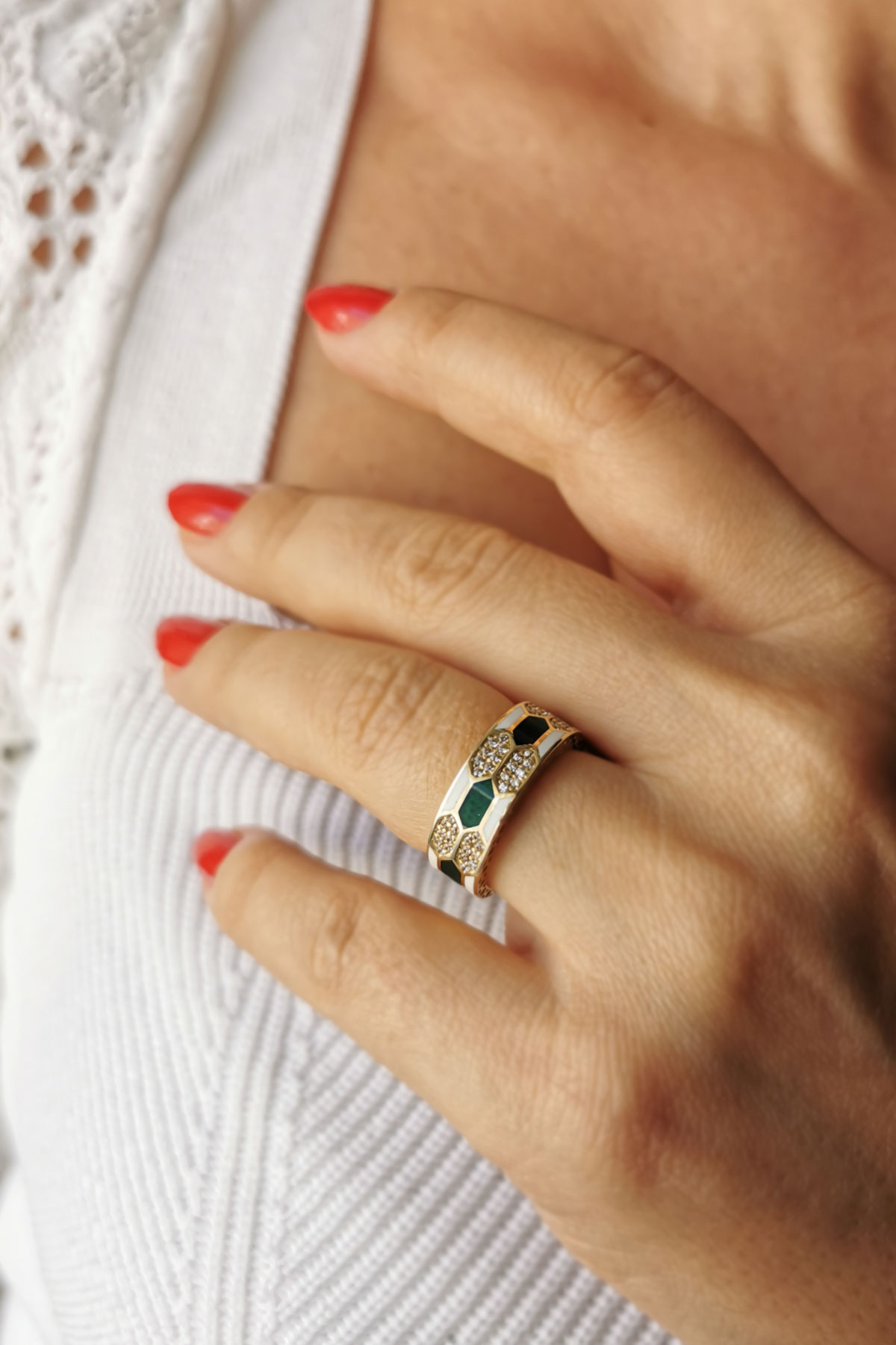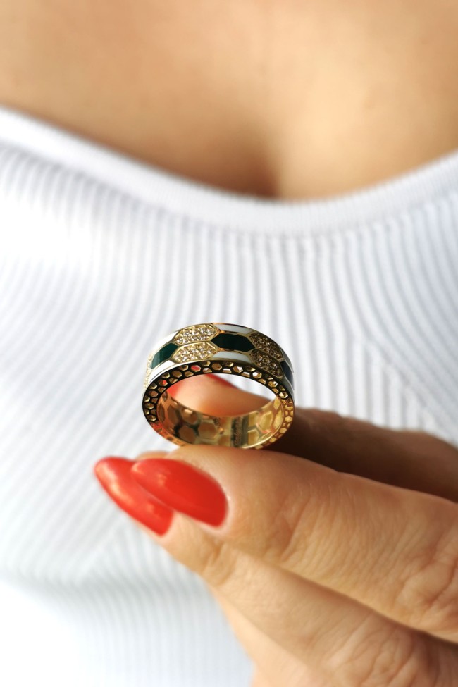 4.20 Gram Ağırlığında 14 Ayar Füzyon Model Üzeri Mine Ve Sedef İşi El İşçiliği İle Özel Olarak Üretilen Yüzük.