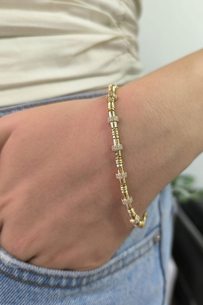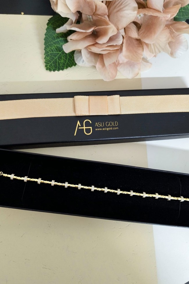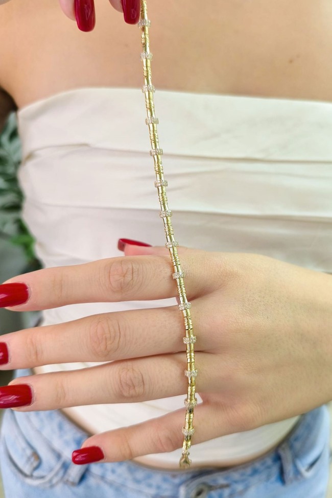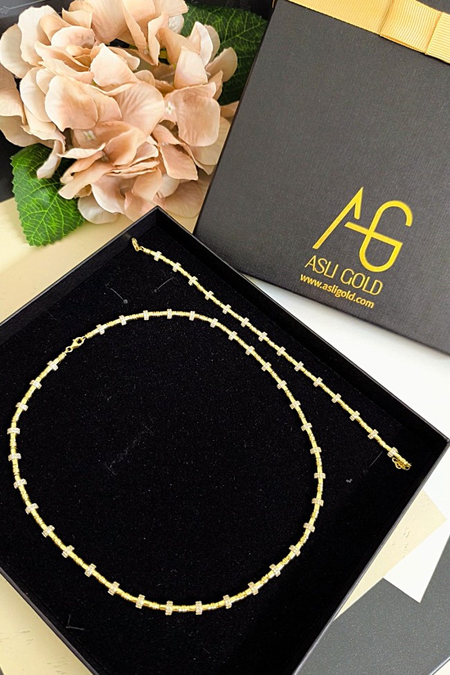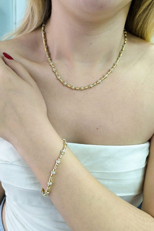 14 Ayar şık ve modern tasarım günlük kullanıma uygun taşlı ışıl ışıl özel trend tasarım 38.40 gram ağırlığında altın Serenay gerdanlık bileklik seti.