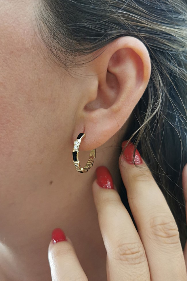 14 Ayar spor ve havalı tasarım günlük kullanıma uygun az taşlı model  4.90 gram ağırlığında altın mineli halka küpe.