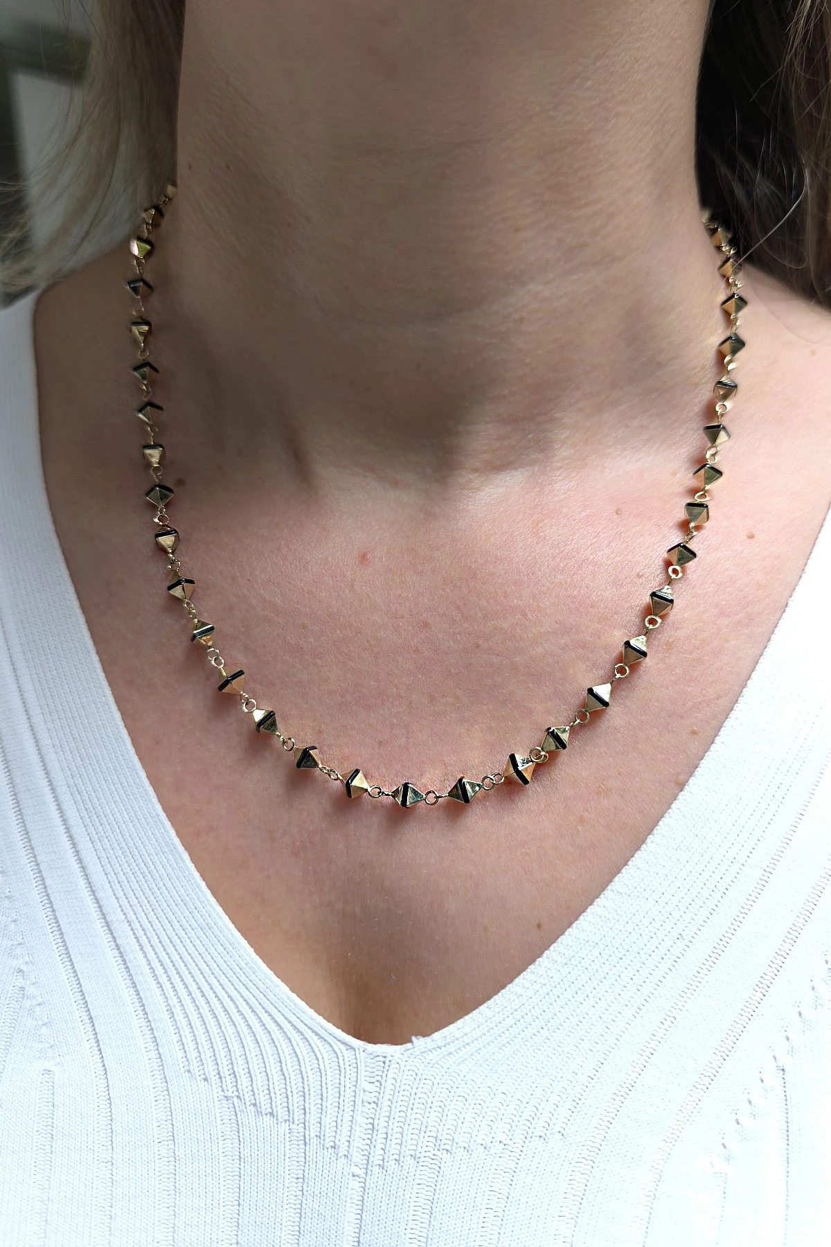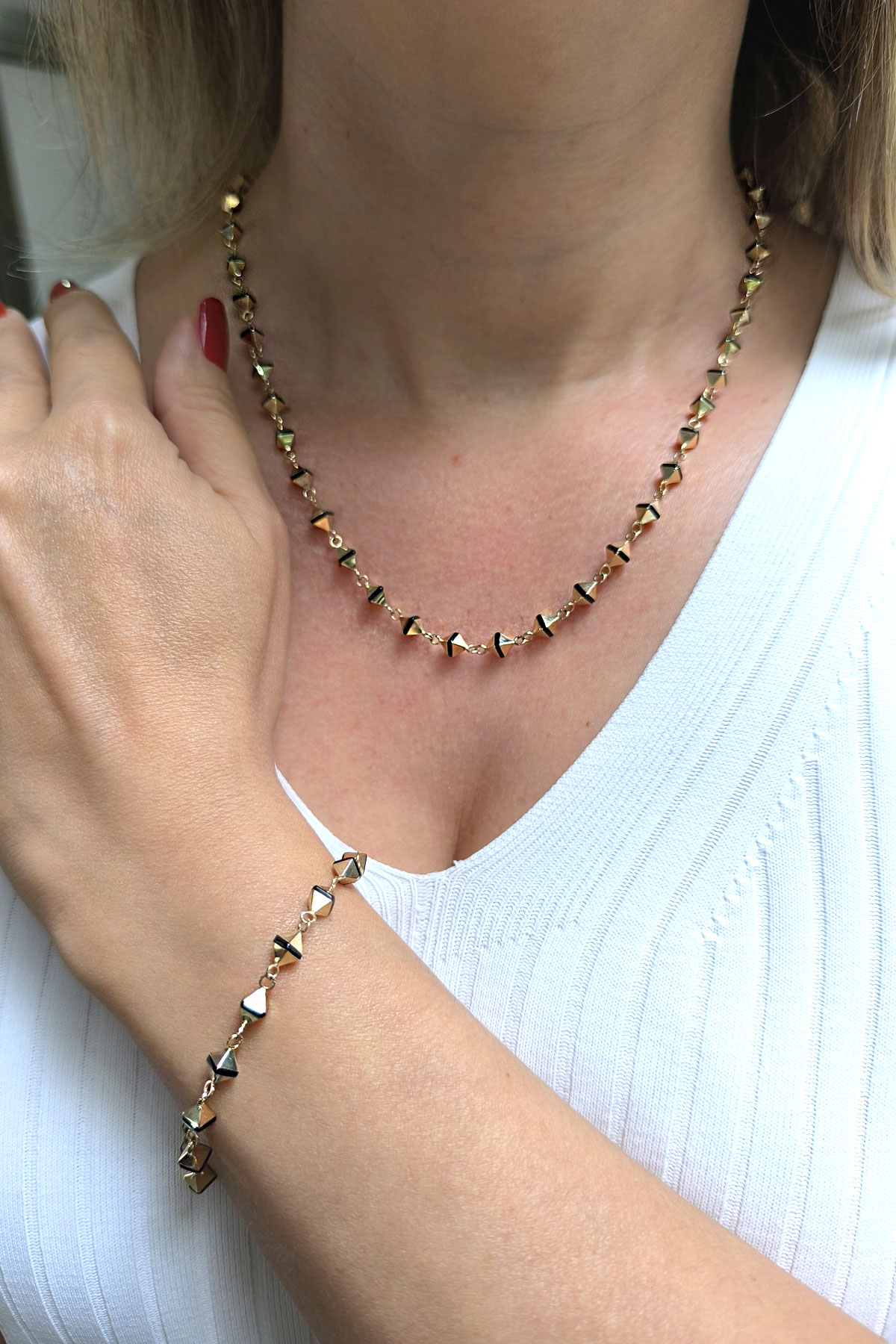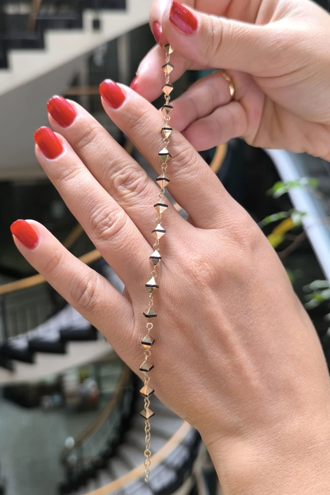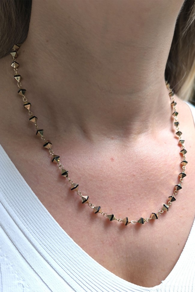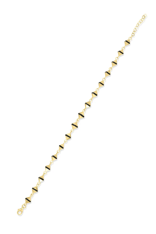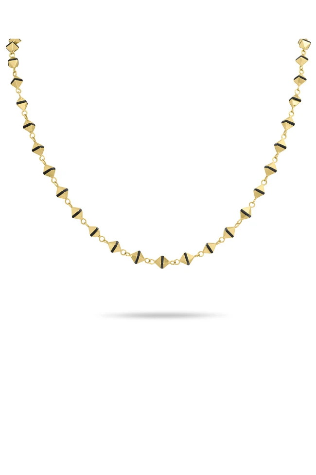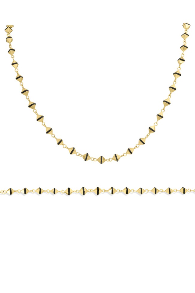 Spor tarz 19+2 Cm Boyunda Bileklik, 50+2 Cm Boyunda Kolyesi Olan Model 17.95 Gr. Ağırlığında 14 Ayar Altın, Piramit Tasarım, Siyah Mineli Unisex Bileklik Kolye Set.