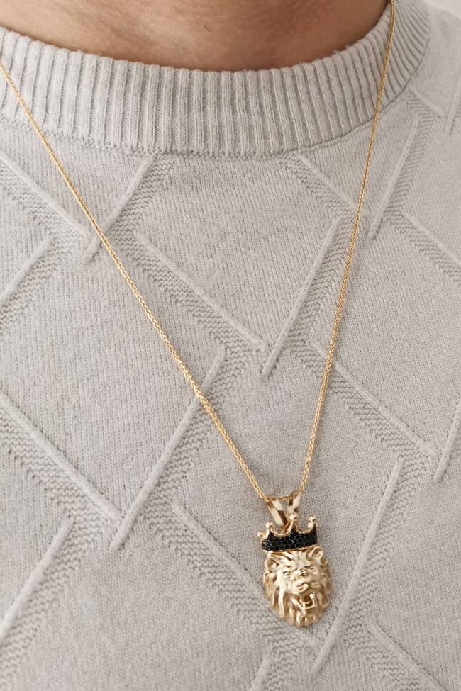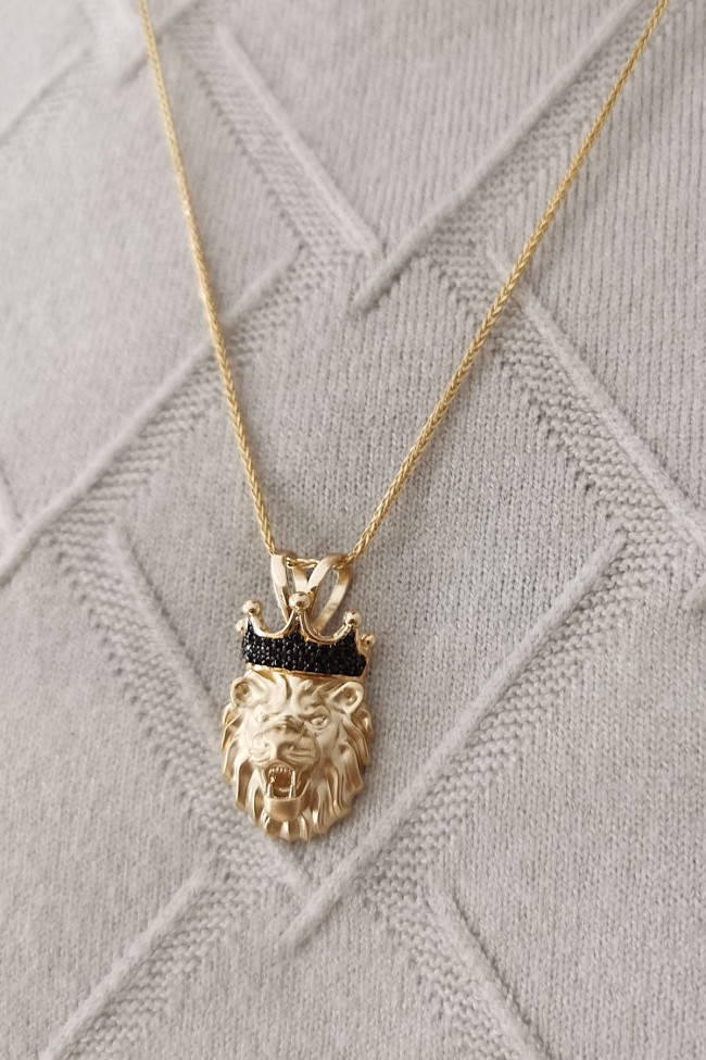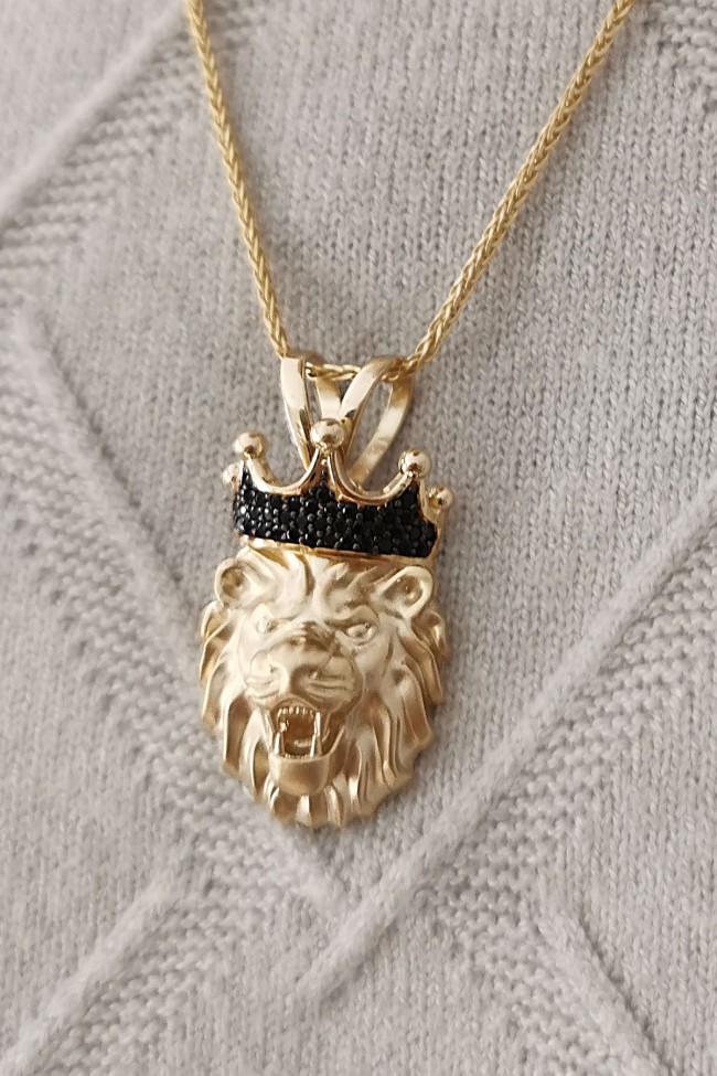 Modern Şehirli Tarz 60 Cm Boyunda Spiga Zinciri İle Oldukça Şık Bir Modele Sahip 9.30 Gr. Ağırlığında 14 Ayar Altın Aslan Erkek Kolye.