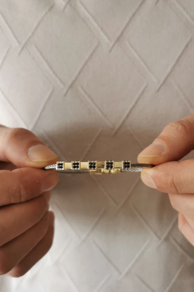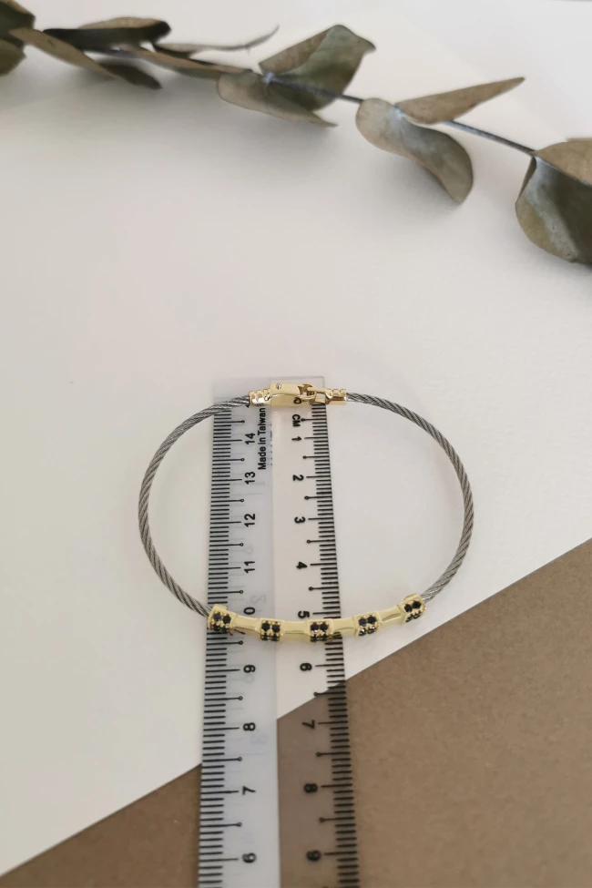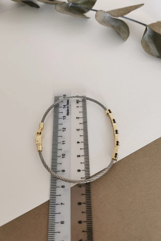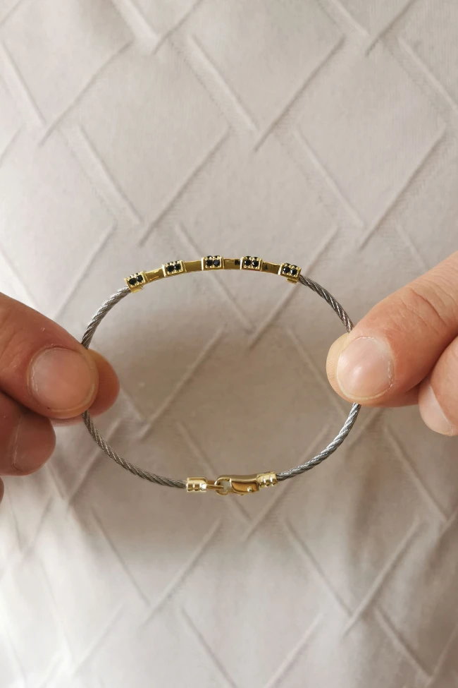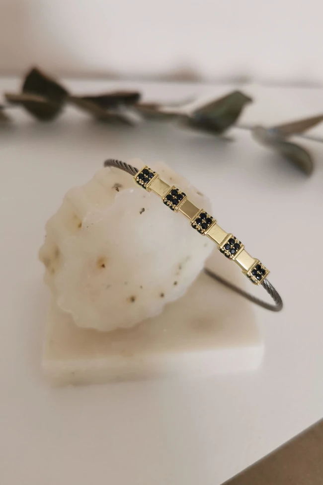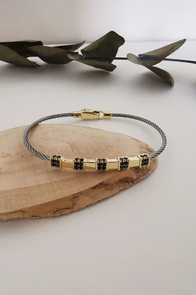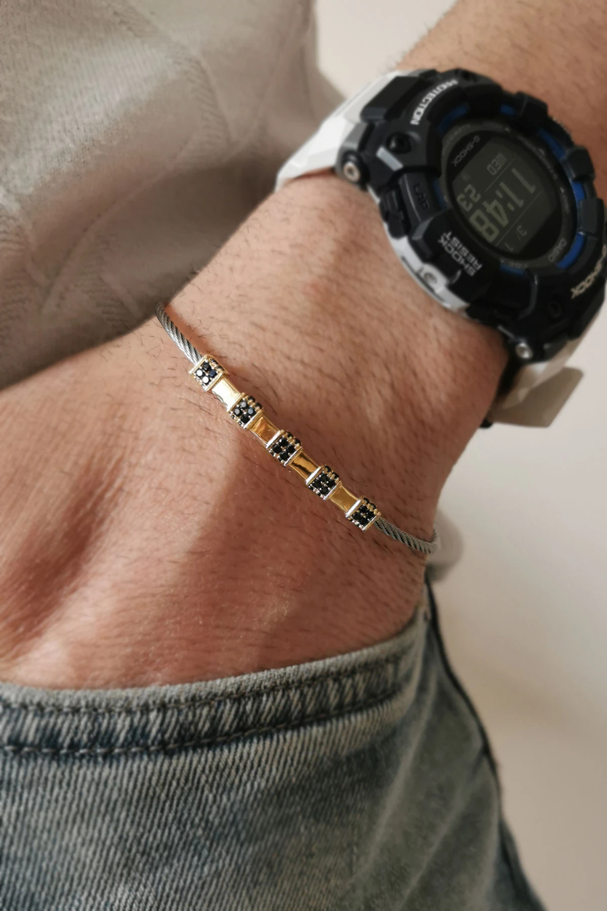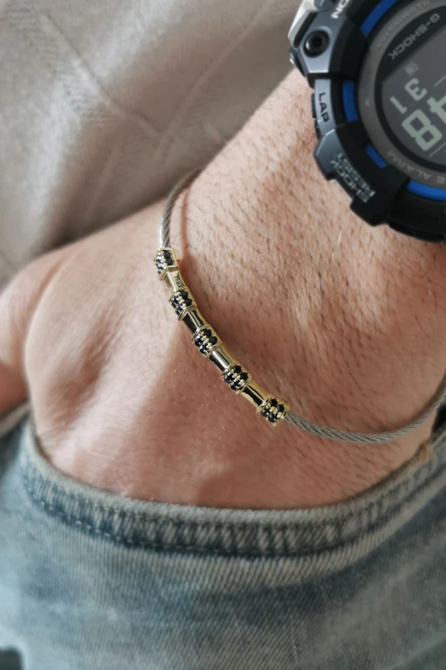 14 Ayar siyah taş detaylı spor ve şık tasarımı ile modern duruşa sahip günlük kullanıma uygun 5.70 gram ağırlığında tarz model altın çelik erkek bilekliği.