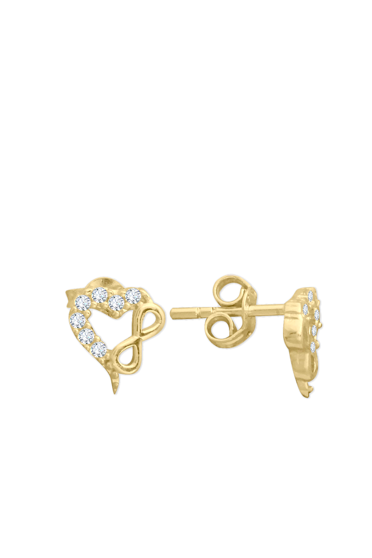 1 Cm boyunda zirkon taşlı minimal ışıl ışıl 14 ayar 1.25 gr ağırlığında altın kalp detaylı sonsuzluk model vidalı küpe.