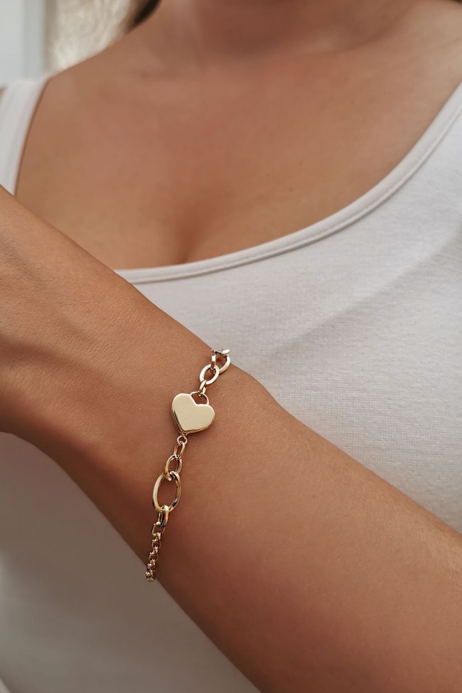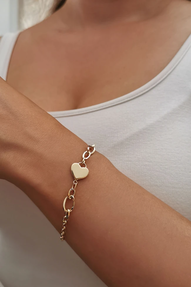 14 Ayar şık ve spor duruşa sahip günlük kullanıma uygun 3.25 gram ağırlığında 20 Cm boyunda altın kalp bileklik.