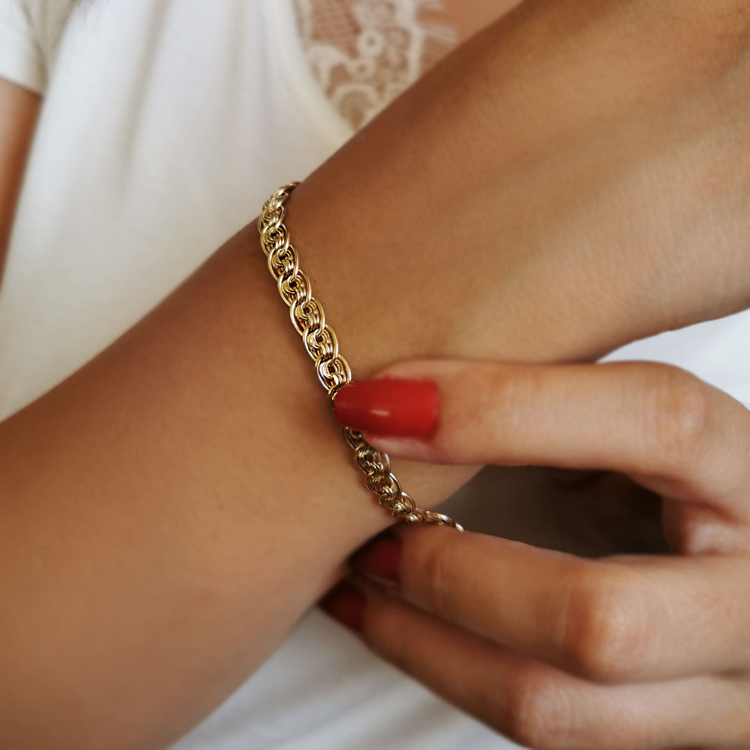 20 Cm boyunda hem spor hem fantazi hafif tasarımı ile günlük olarak da kullanabileceğiniz 14 ayar 4.00 gr ağırlığında 14 ayar altın taşsız kadın bileklik. *Ürünlerimiz faturalıdır güvenle satın alabilirsiniz, özel hediye kutusunda ücretsiz kargo ile gönderilecektir.