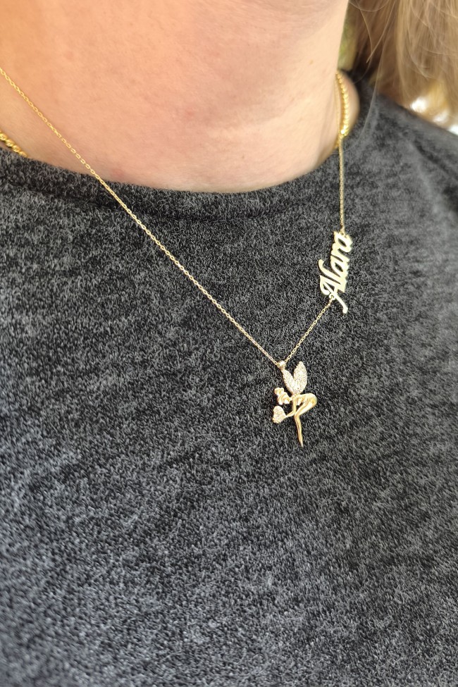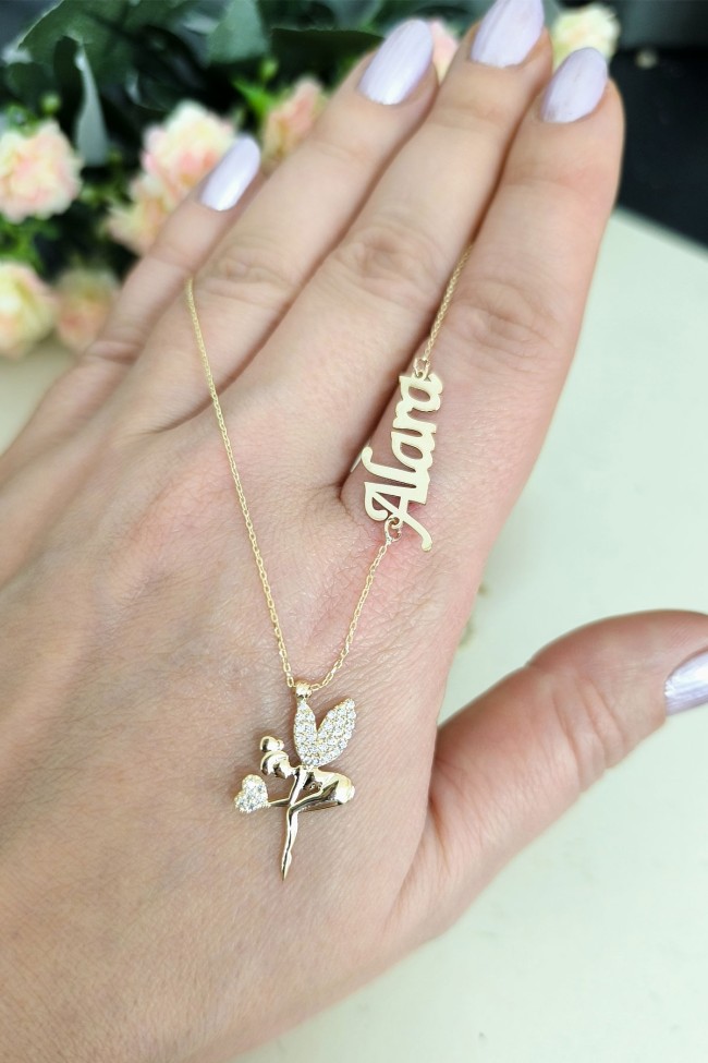 2.3 Cm Boyunda Kendinden 45 Cm Zincirli 14 Ayar Zirkon Taşlı Minimal Tasarıma Sahip Işıl Işıl Günlük Kullanıma Uygun 3.10 Gr. Ağırlığında Altın Su Perisi İsimli Kolye.