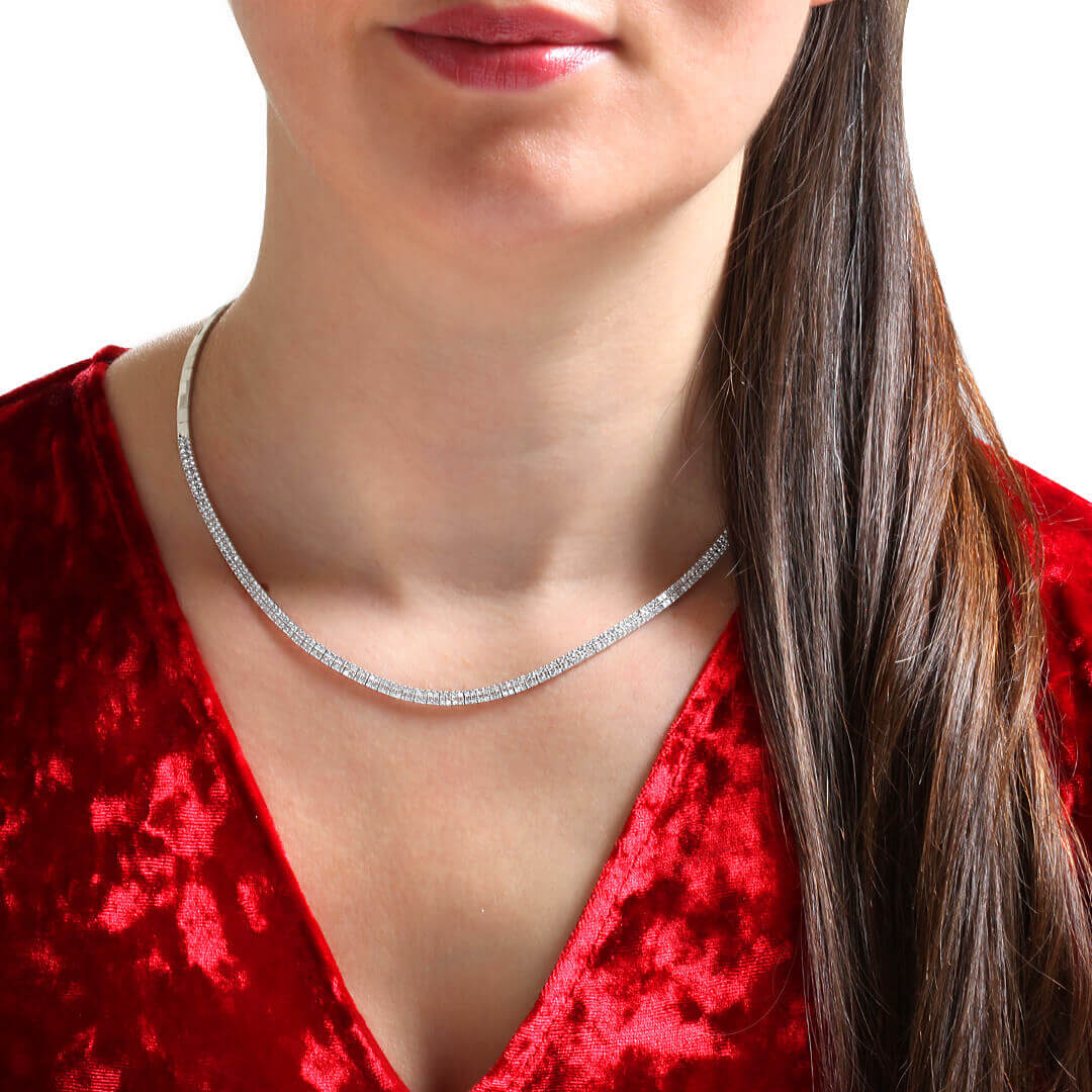 14 Ayar Beyaz Altın 14.80 Gr. Ağırlığında Su Yolu Taşlı Gerdanlık.