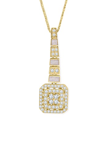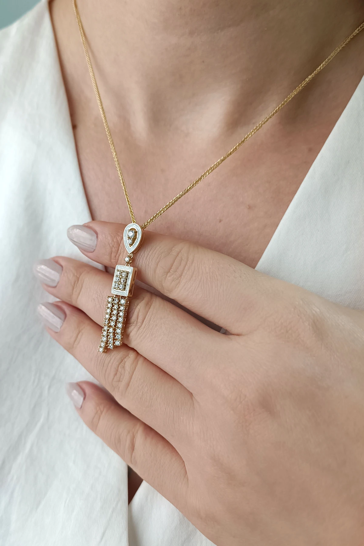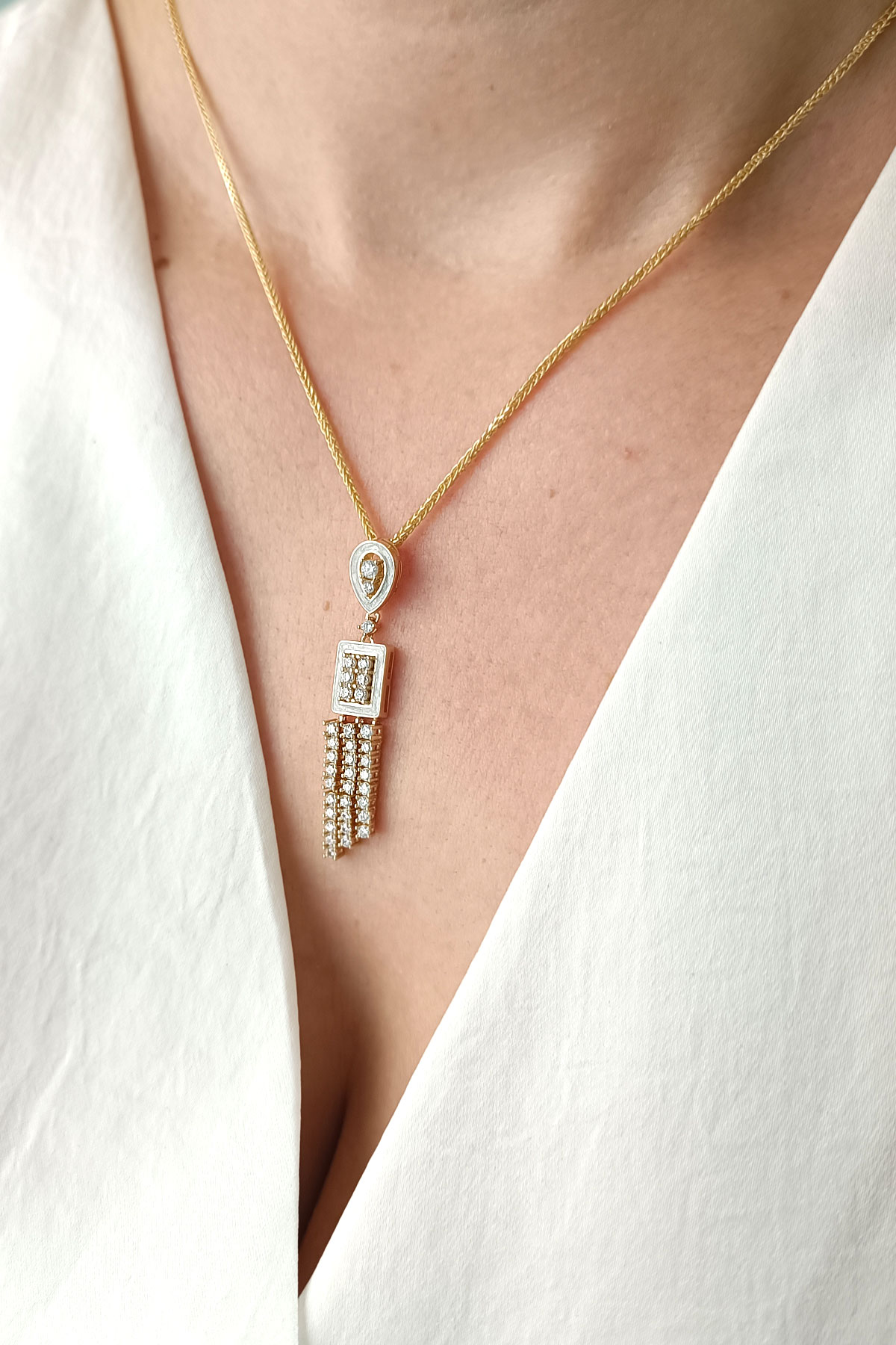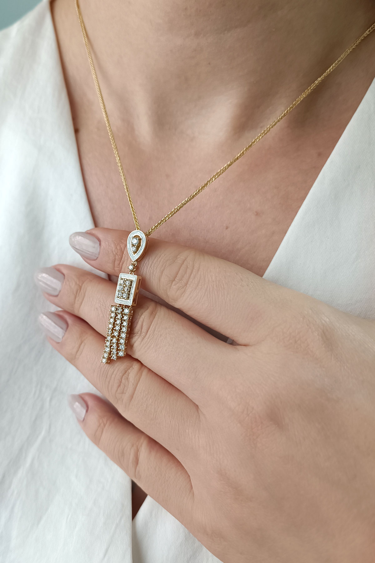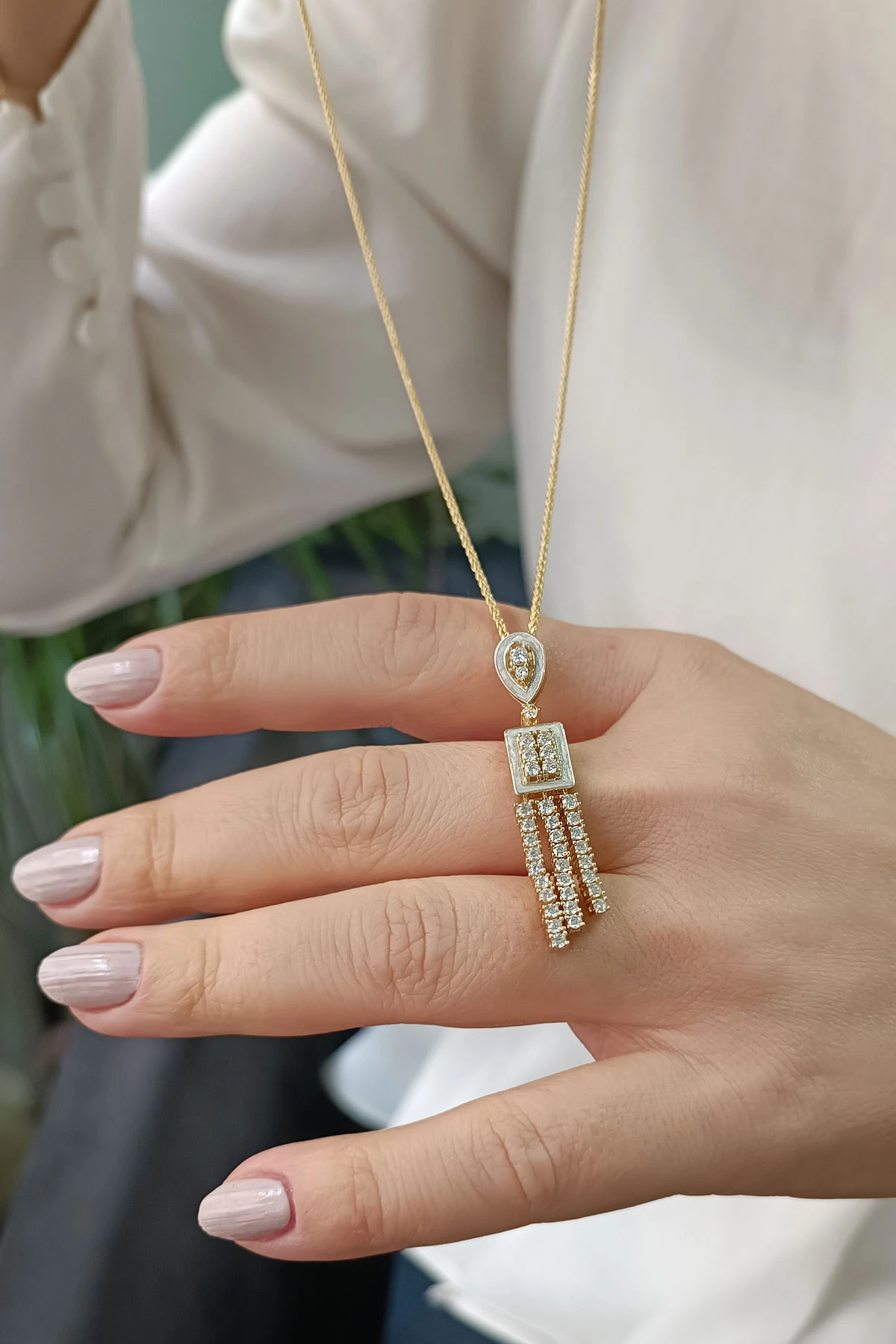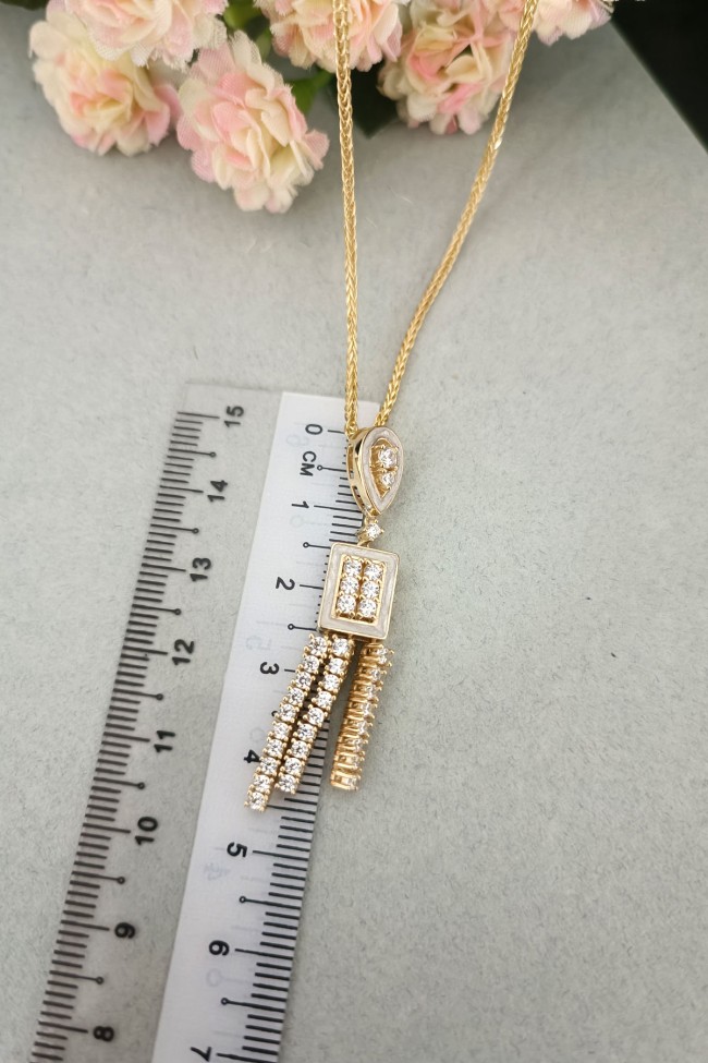 Zirkon taş detaylı model ışıl ışıl 14 ayar 6.10 gr ağırlığında 45 cm boyunda spiga zinciriyle harika bir duruşa sahip modern tasarım altın sedef beyaz mineli su yolu kolye.