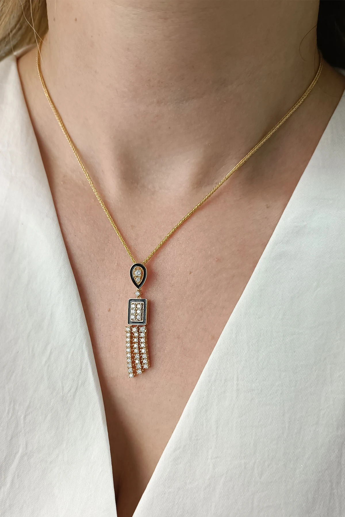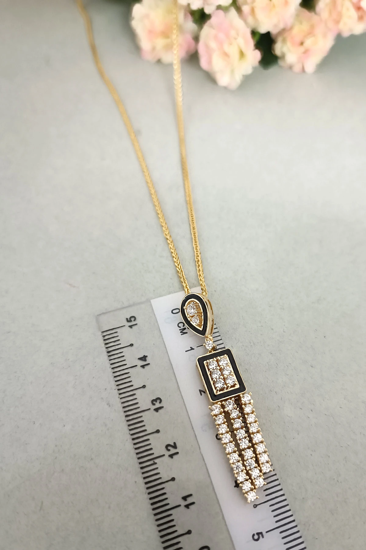 Zirkon taş detaylı model ışıl ışıl 14 ayar 4.50 gr ağırlığında harika bir duruşa sahip modern tasarım altın siyah mineli su yolu kolye ucu.