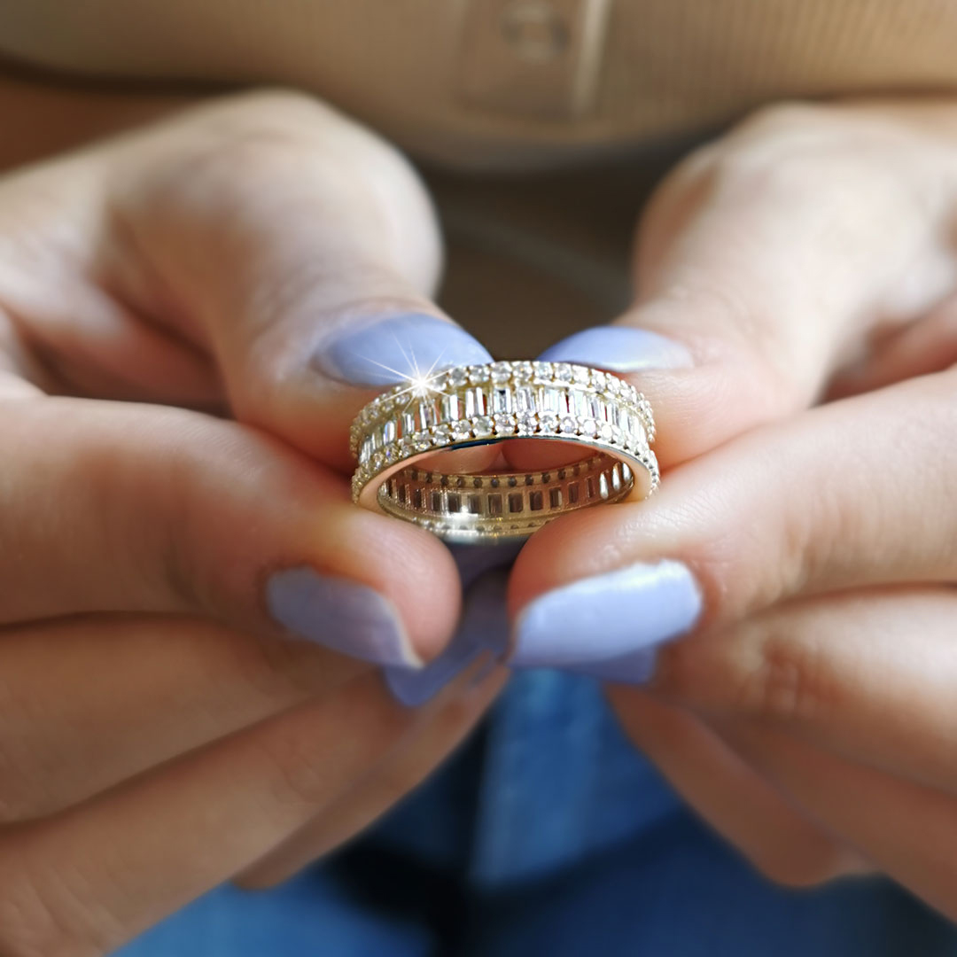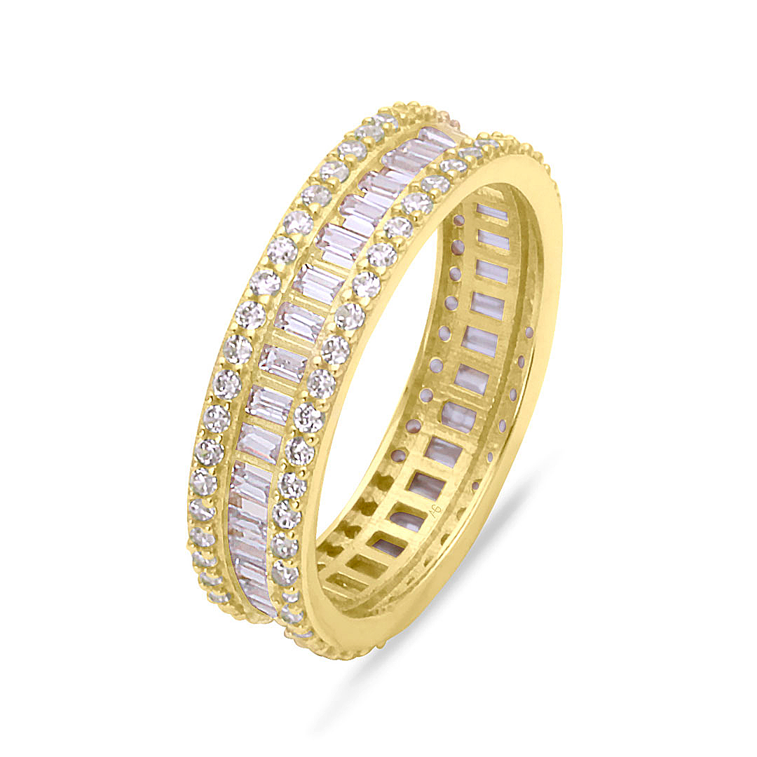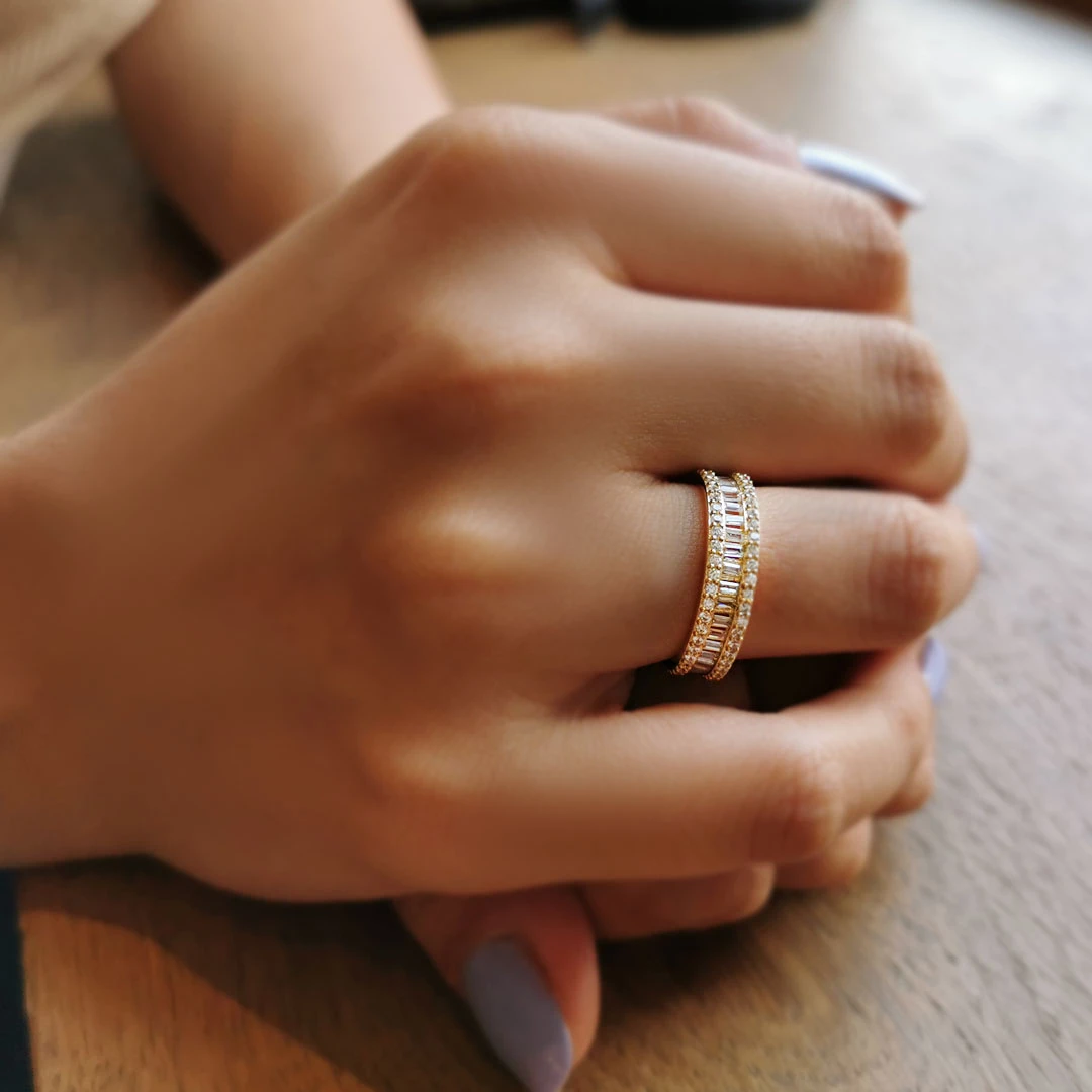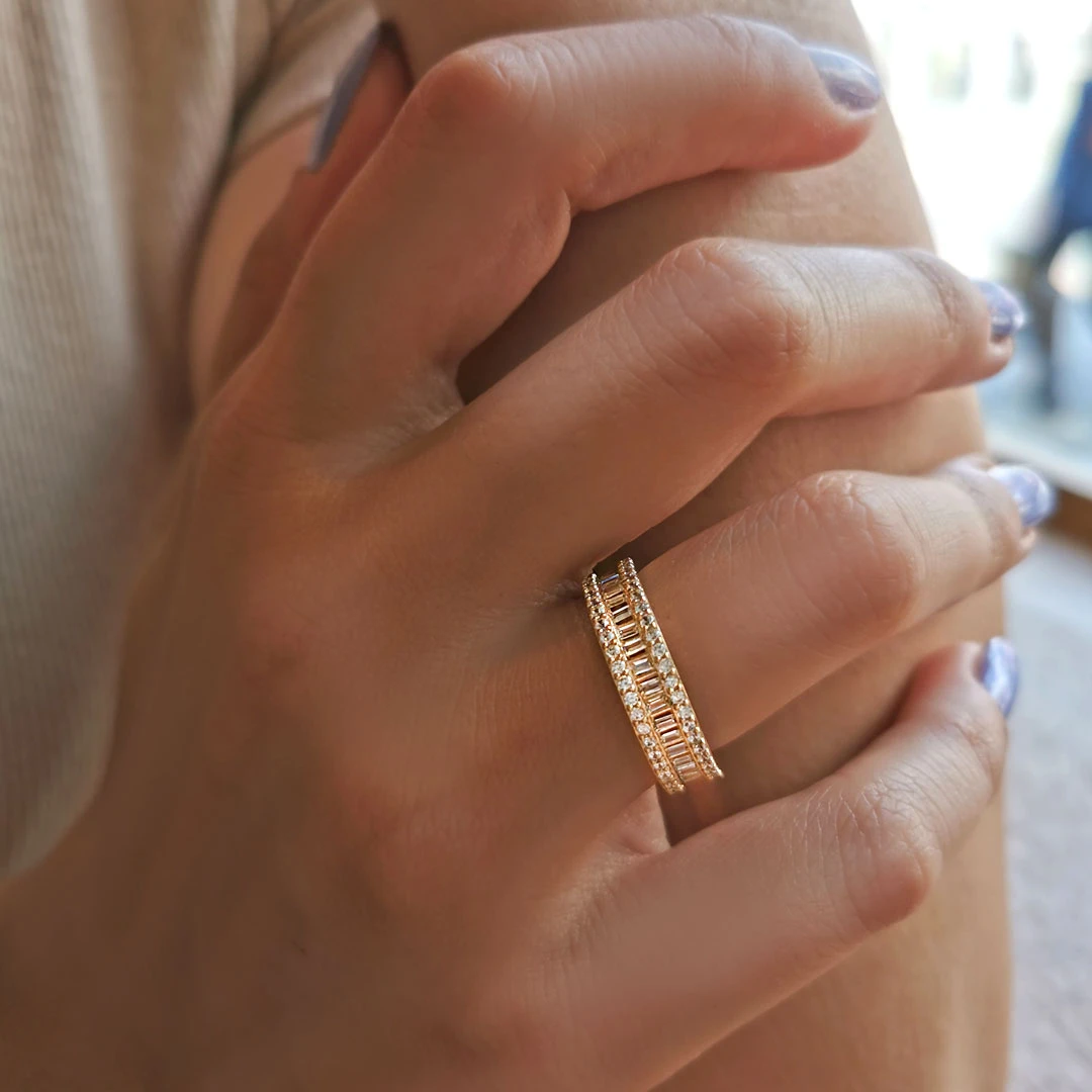 3.00 Gram Ağırlığında Baget Taş Detaylı Tamtur Şık Tasarımıyla Her Tarzdaki Kadının Zevkine Hitap Eden, Hoş Bir Duruşa Sahip 14 Ayar Altın Zirkon Taşlı Kadın Yüzük.