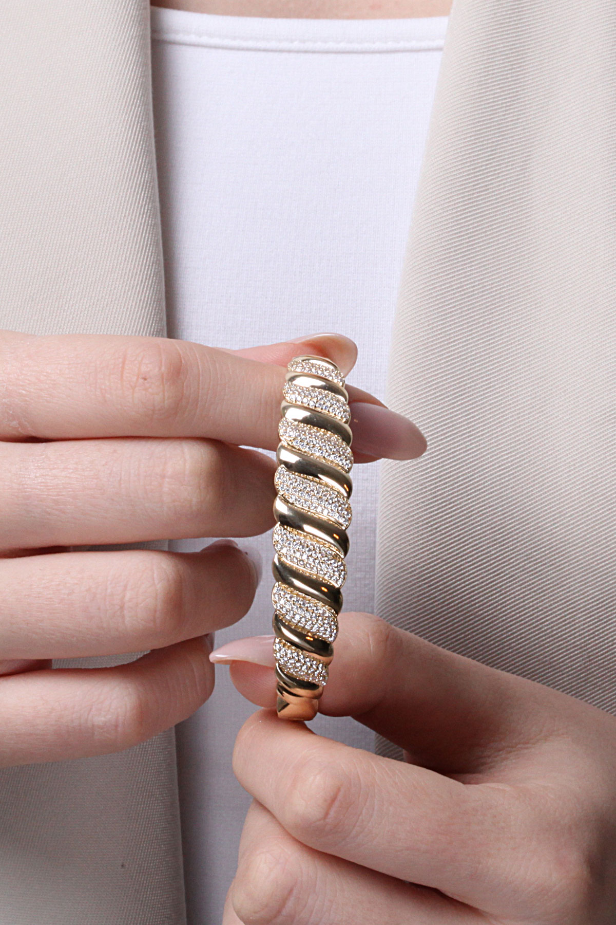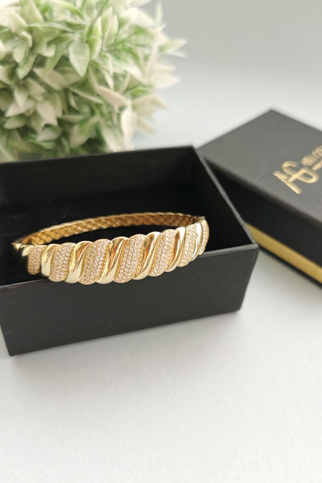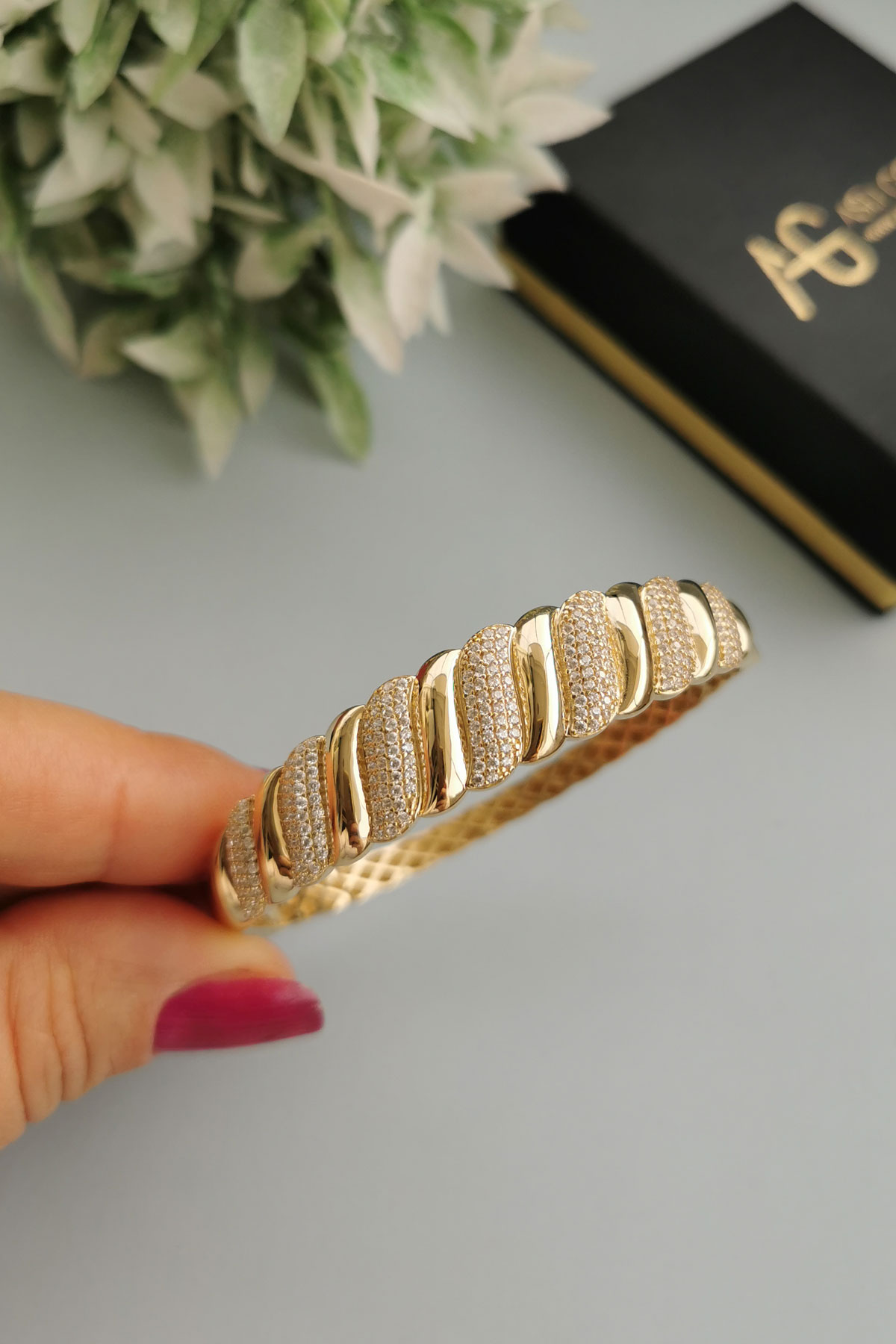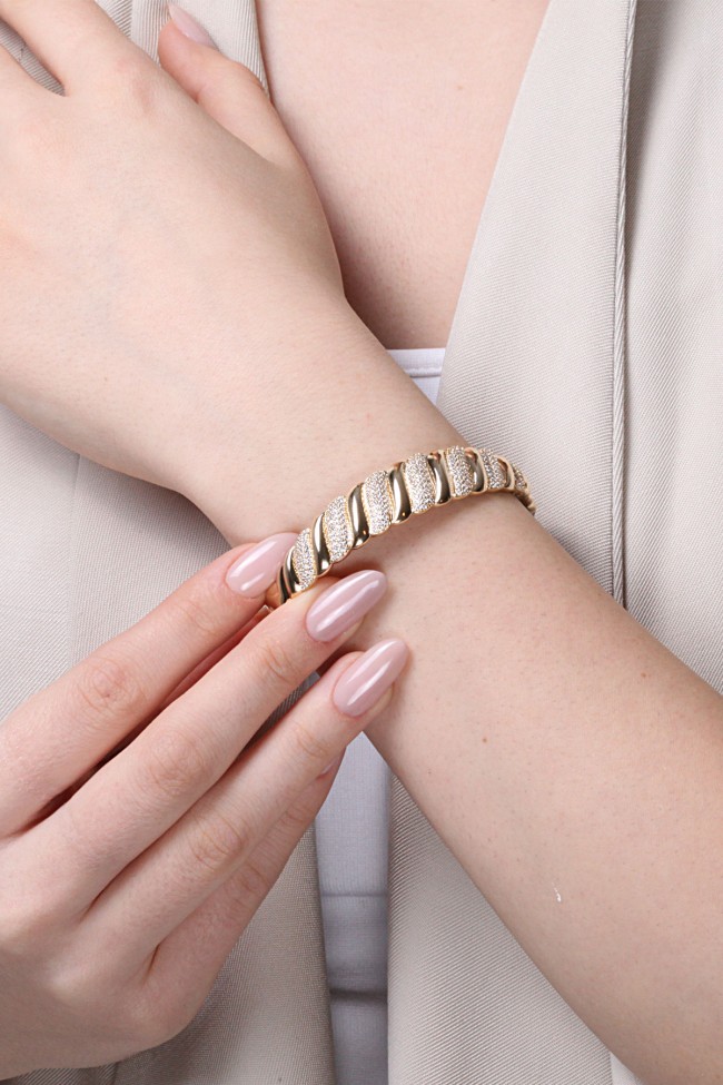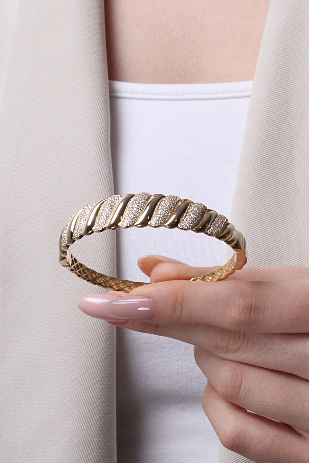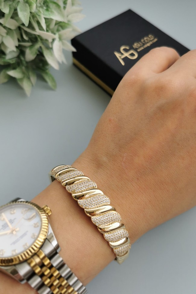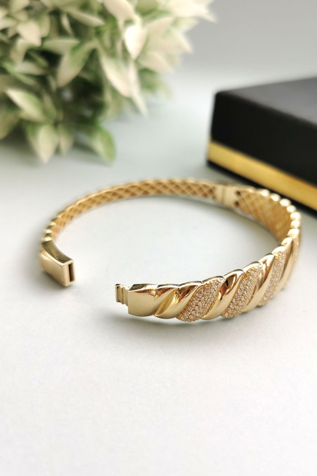 15.10 Gram Ağırlığında 14 Ayar Taş Atlamalı Midye Model Kelepçe Bilezik.