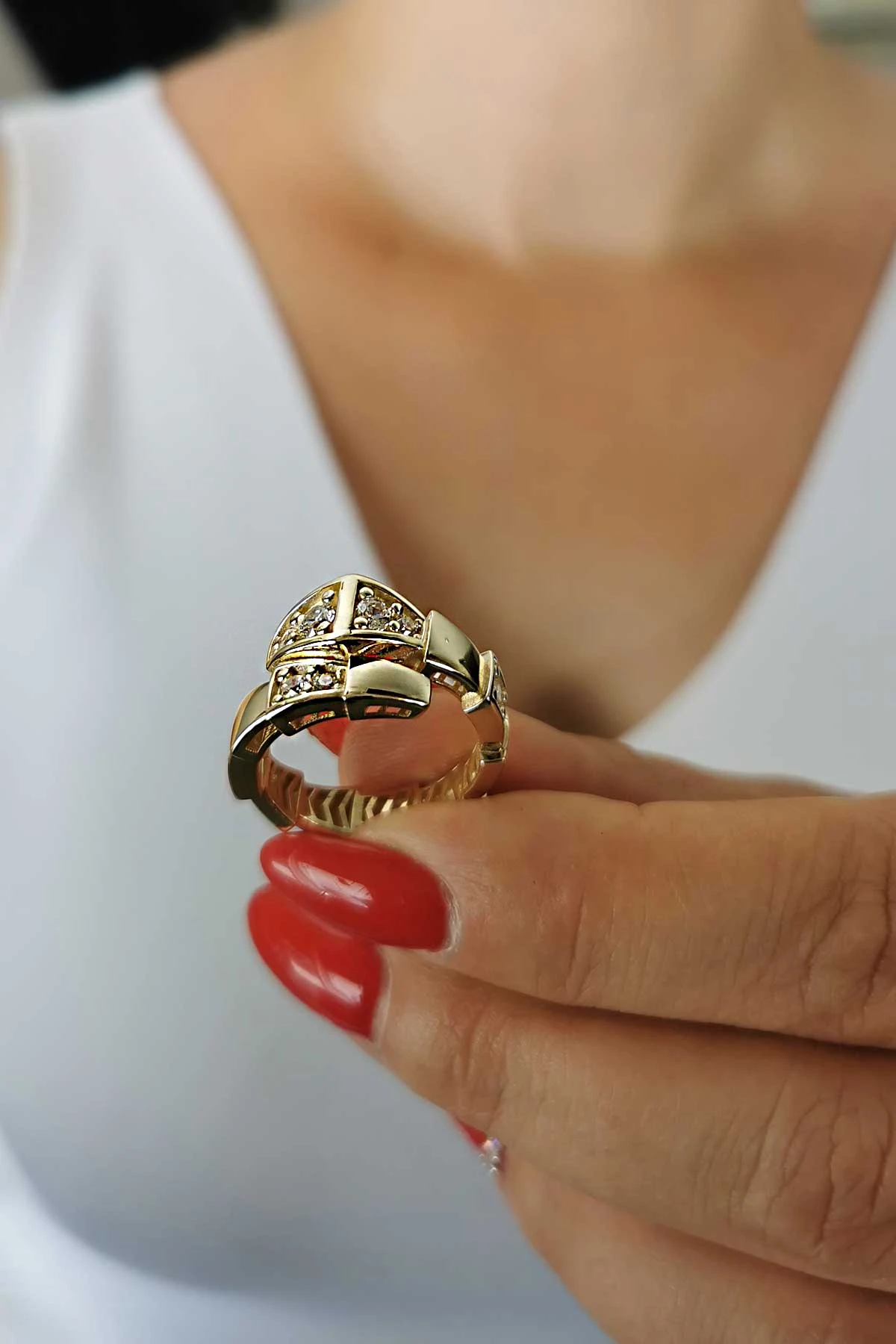 Modelin, manken fotoğrafında elde duruşunu görebilirsiniz, oldukça şık bir duruşa sahiptir. Ürüm çekimi ve gramı 15 "orta standart" ölçüye göre belirlenmiştir, 15 ölçüden yüksek ölçüde verilecek siparişlerden altın gramajı artacağından fiyat farklılıkları oluşabilmektedir. Ürün üretimden geldikten sonra çıkan fark müşteriden tahsil edilmektedir. Lütfen sipariş verirken bu duruma anlayış göstererek, göz önünde bulundurarak sipariş oluşturunuz.