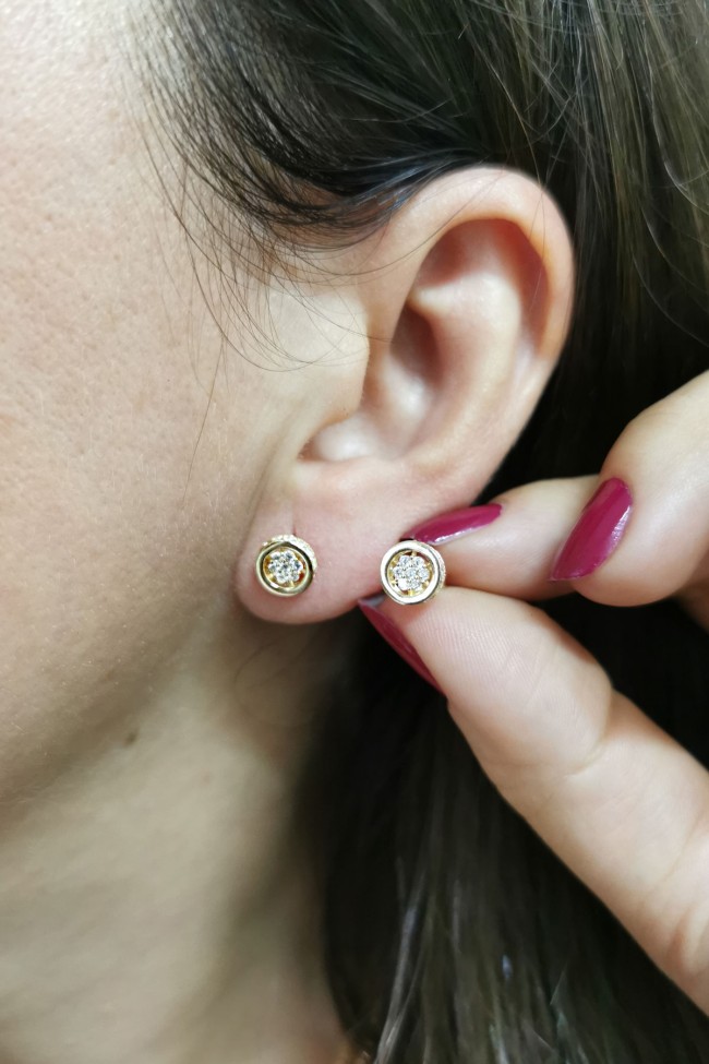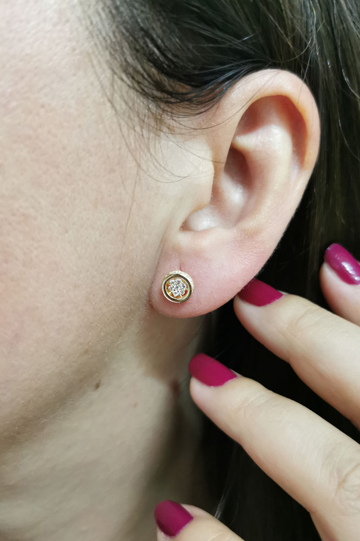 1 Cm boyunda minimal ışıl ışıl 14 ayar 1.50 gr ağırlığında altın çember zirkon taş detaylı model vidalı küpe.