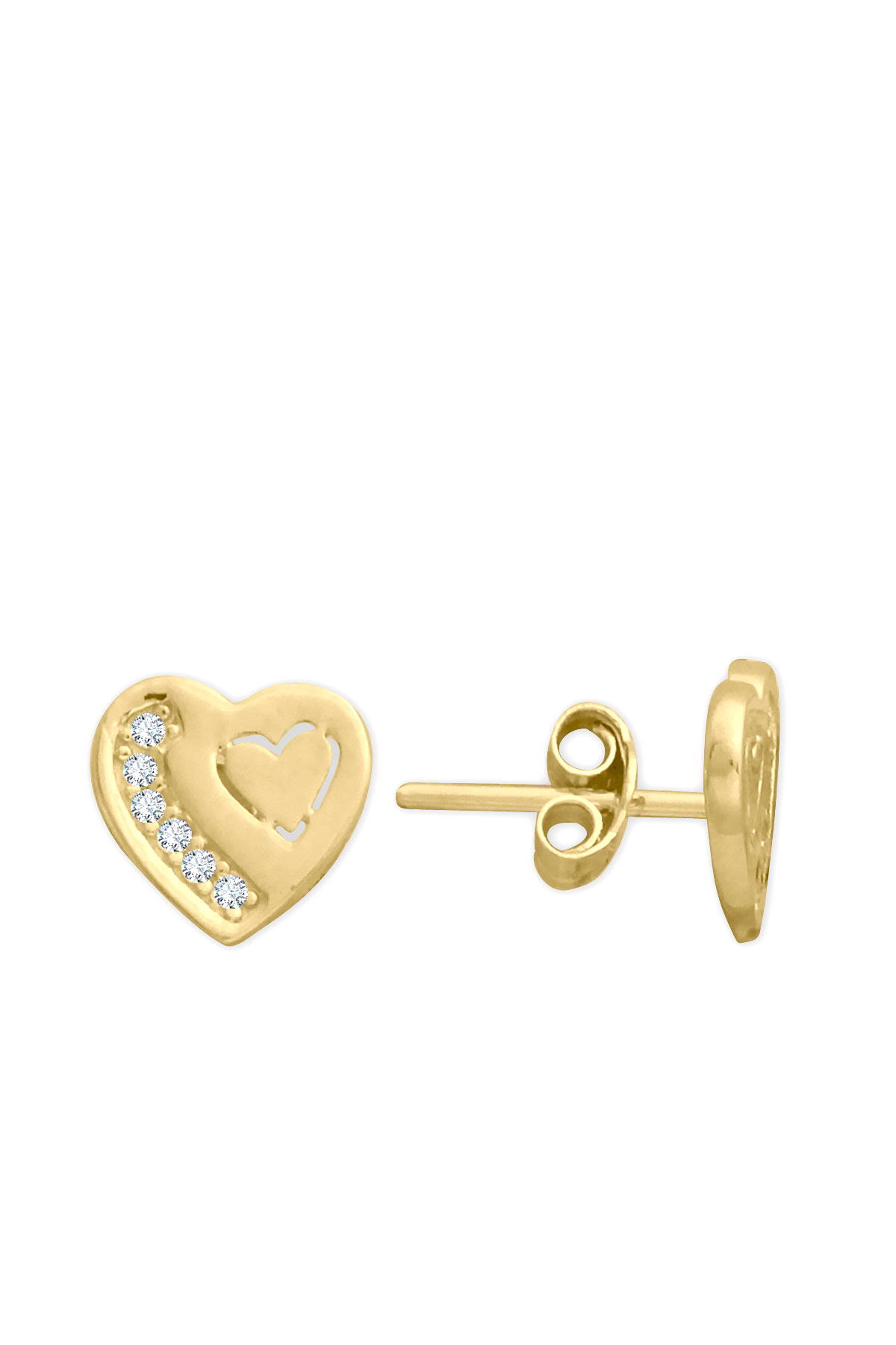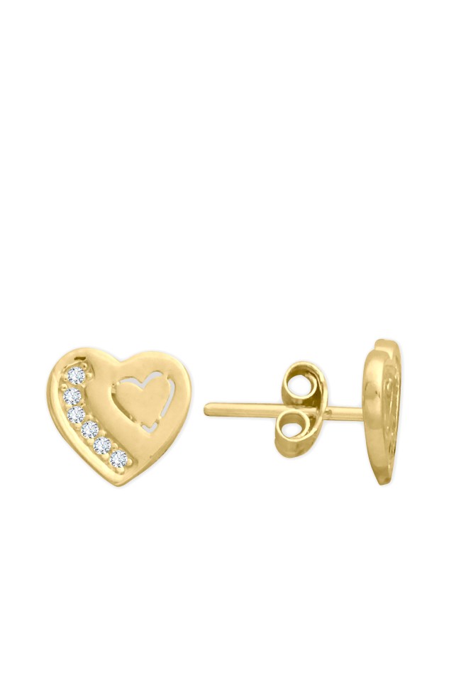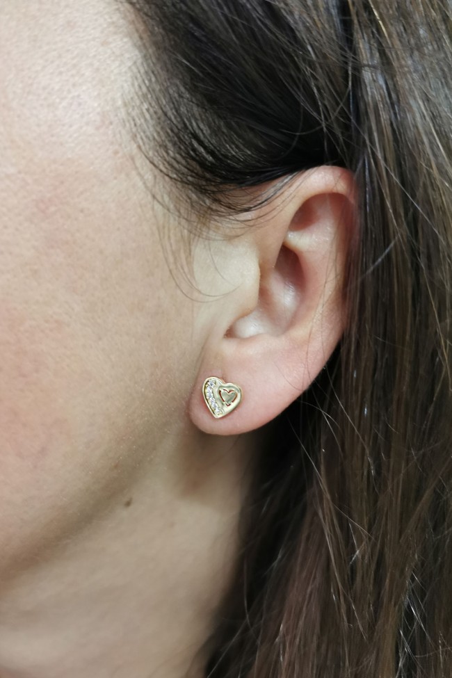 1 Cm boyunda zirkon taşlı minimal ışıl ışıl 14 ayar 1.45 gr ağırlığında altın vidalı kalp model küpe.