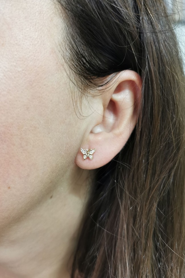 0.7 Cm boyunda zirkon taşlı minimal ışıl ışıl 14 ayar 1.25 gr ağırlığında altın vidalı çiçek model küpe.