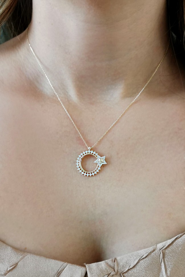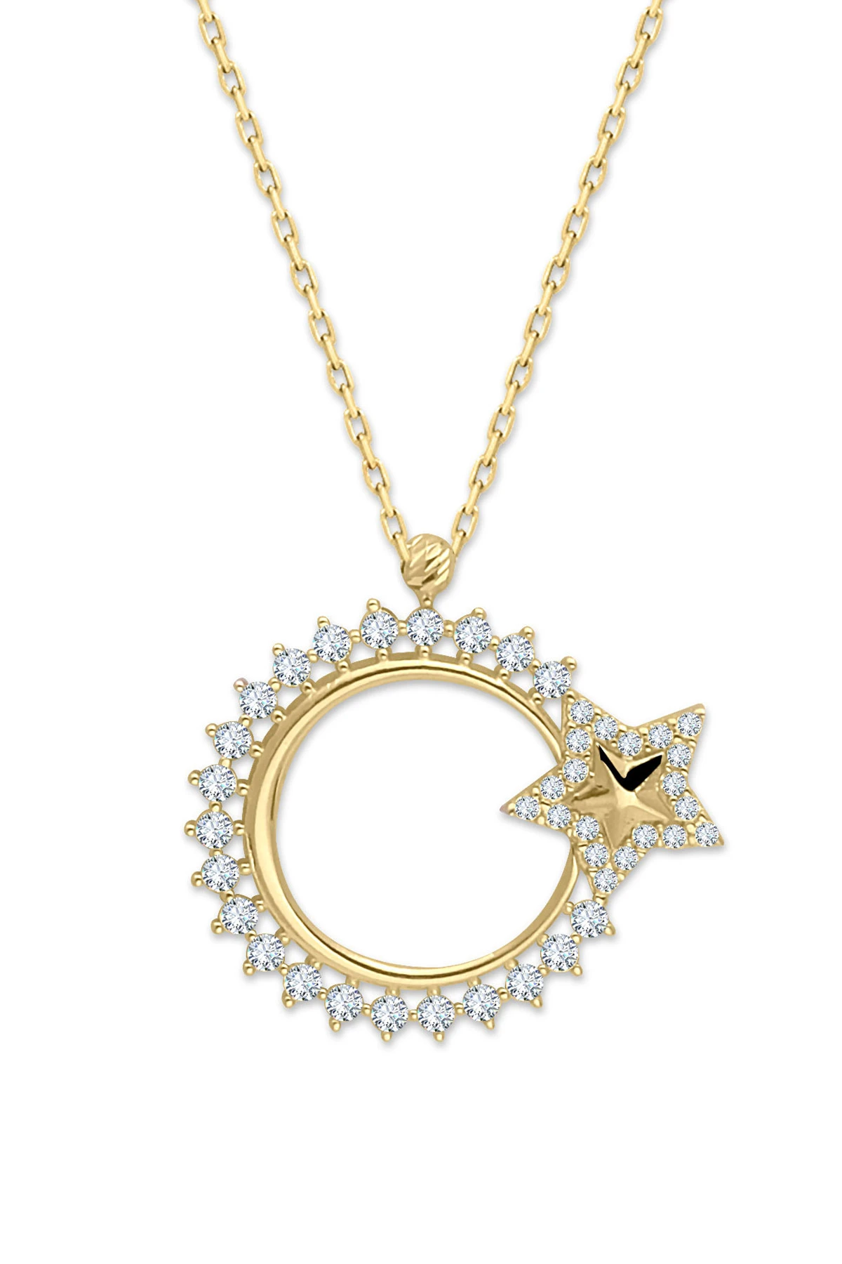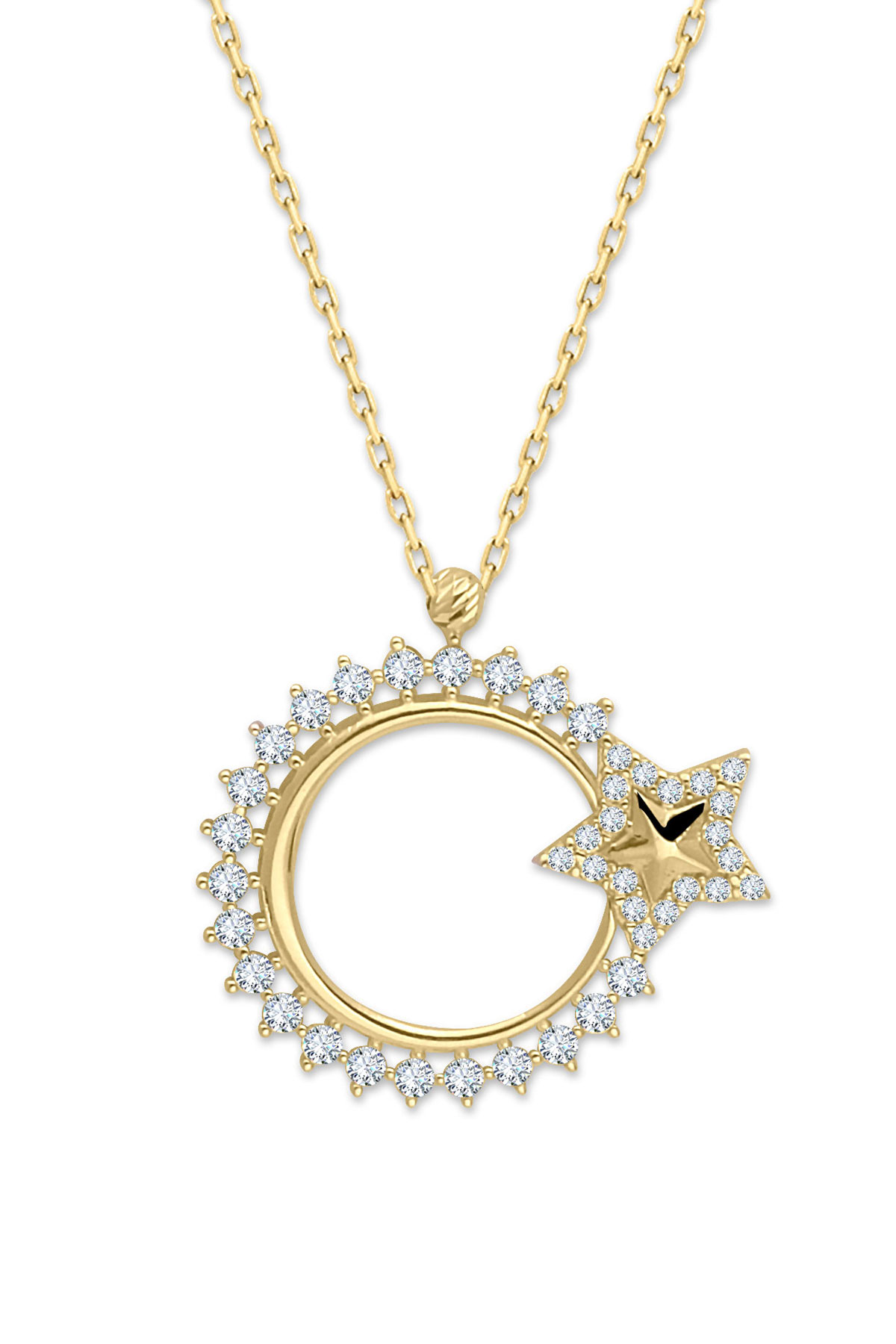 Al Bayrağımızın Şanlı Simgesi Zirkon Taşlı 2.2 Cm Boyunda Kendinden 45 Cm Zincirli 14 Ayar Işıl Işıl Günlük Kullanıma Uygun 2.20 Gr. Ağırlığında Altın Milli Gururumuz Ay Yıldız Kolye.